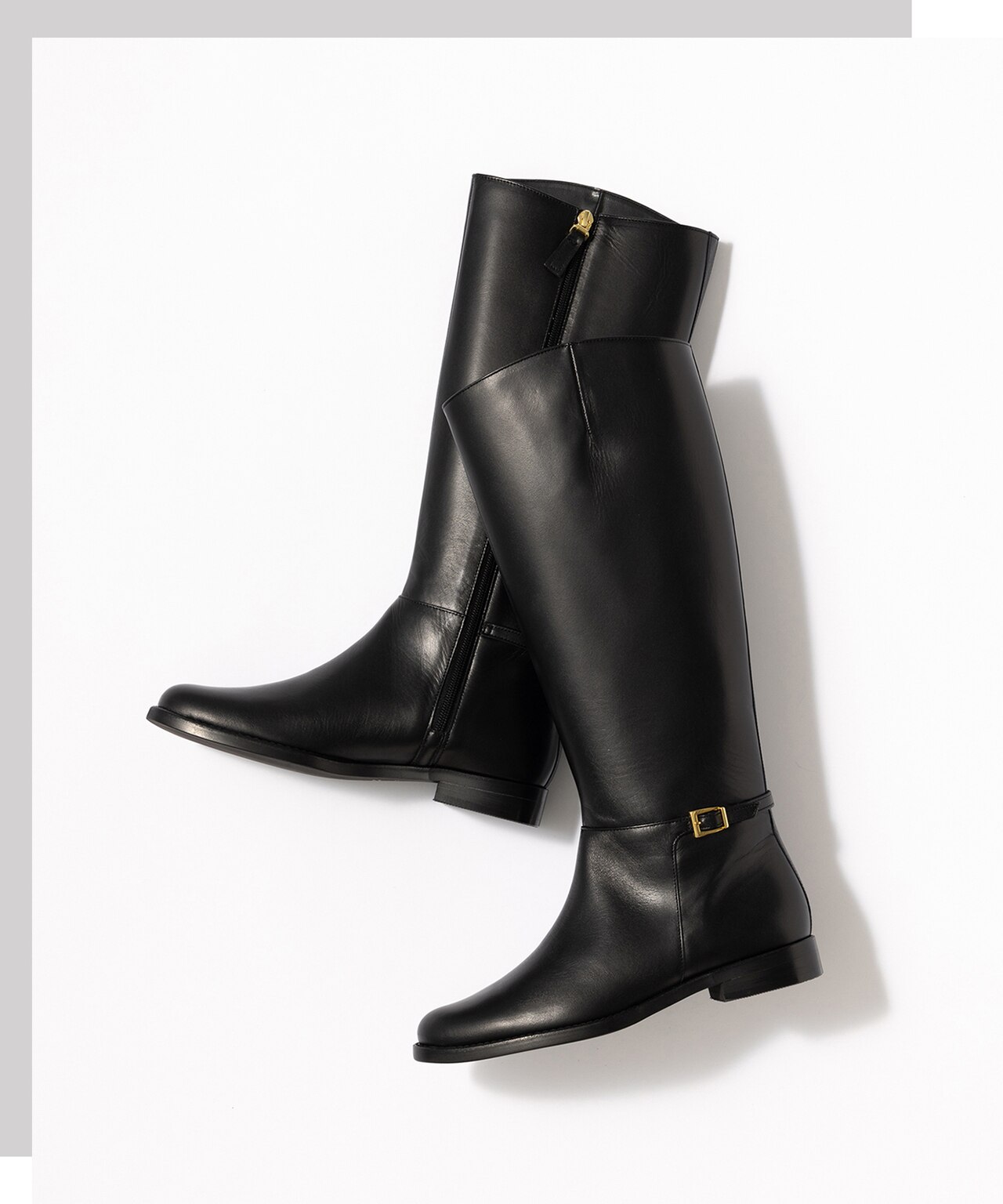 スッキリとした1ベルトデザインのジョッキーブーツ。レザーは艶があり柔らかく、足あたりがとても良い仕上がりになっています。上から下までのフルジップ仕様なので、着脱がしやすいのも嬉しいポイントです。