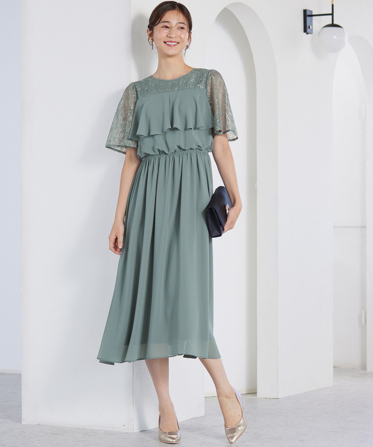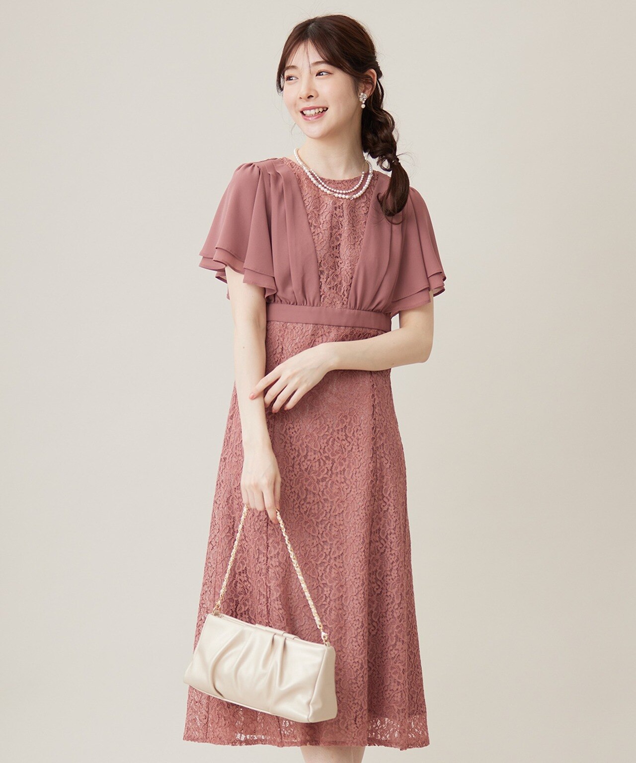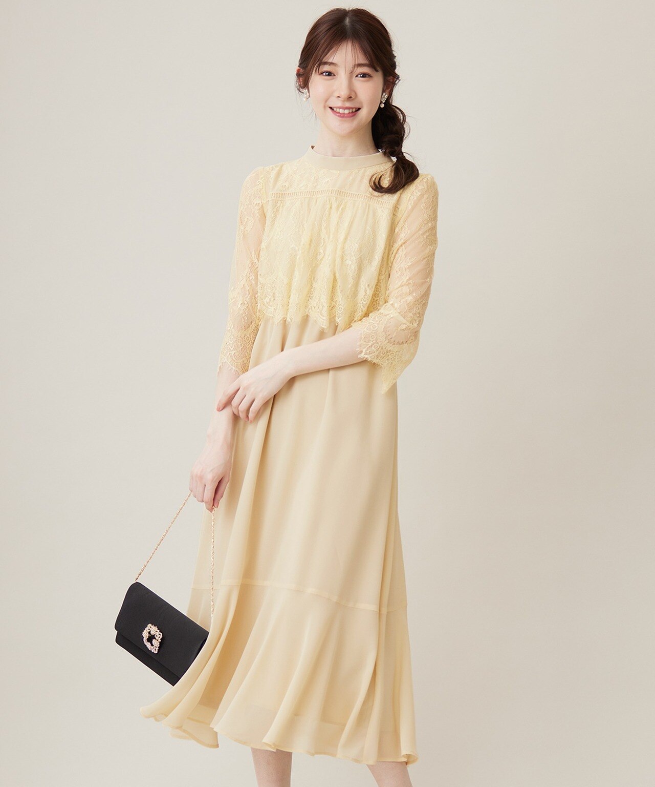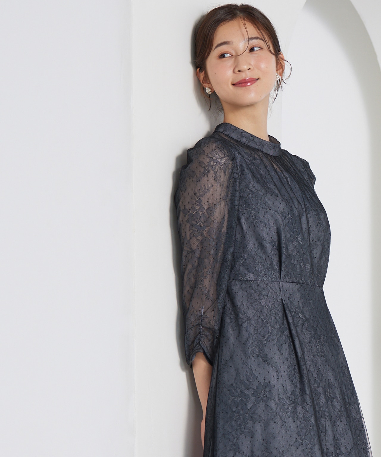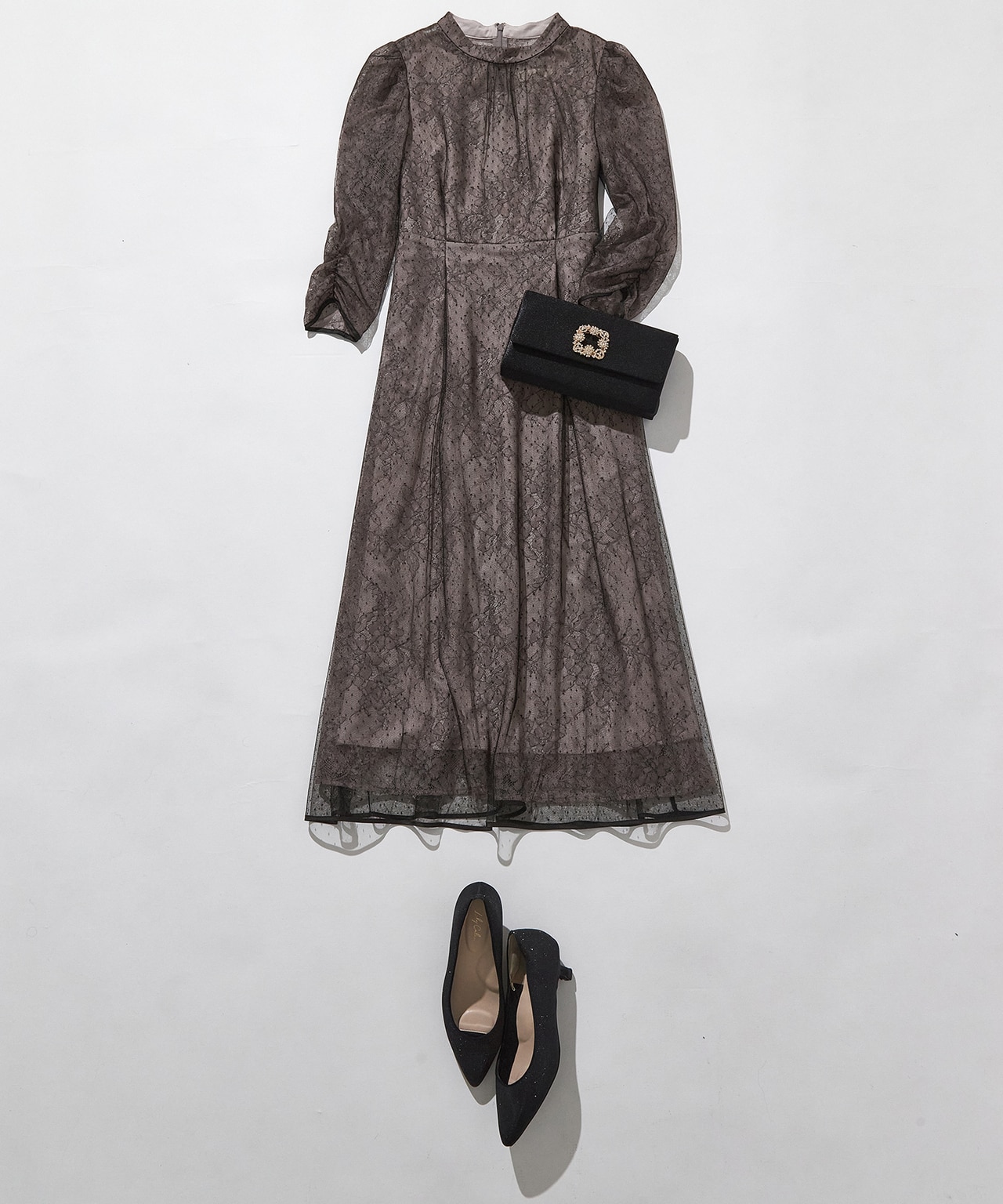 繊細なレースとシアーなチュールが2重になったふんわりと広がるフェミニンドレス。