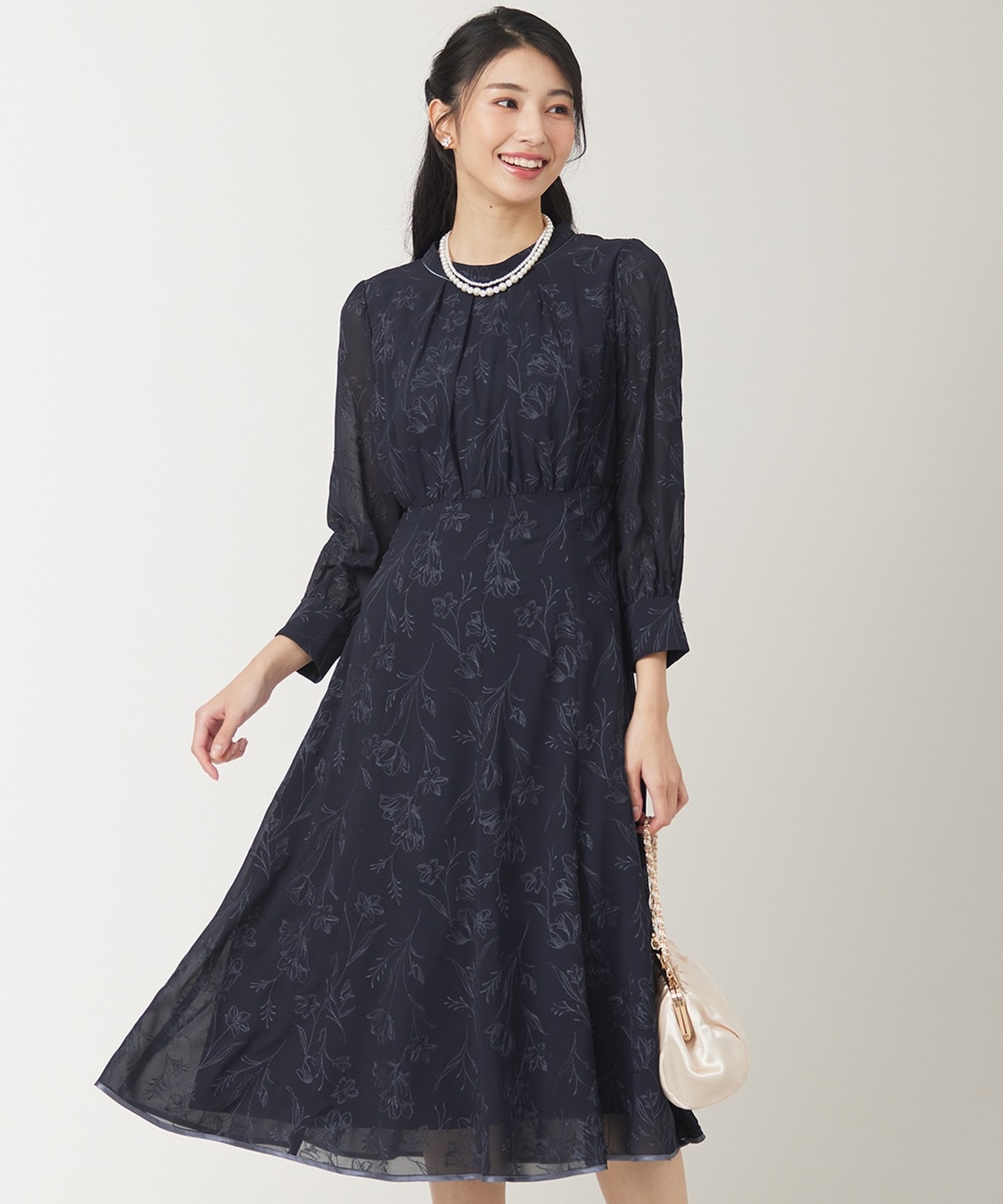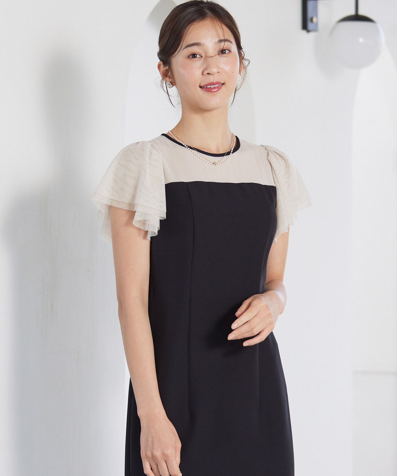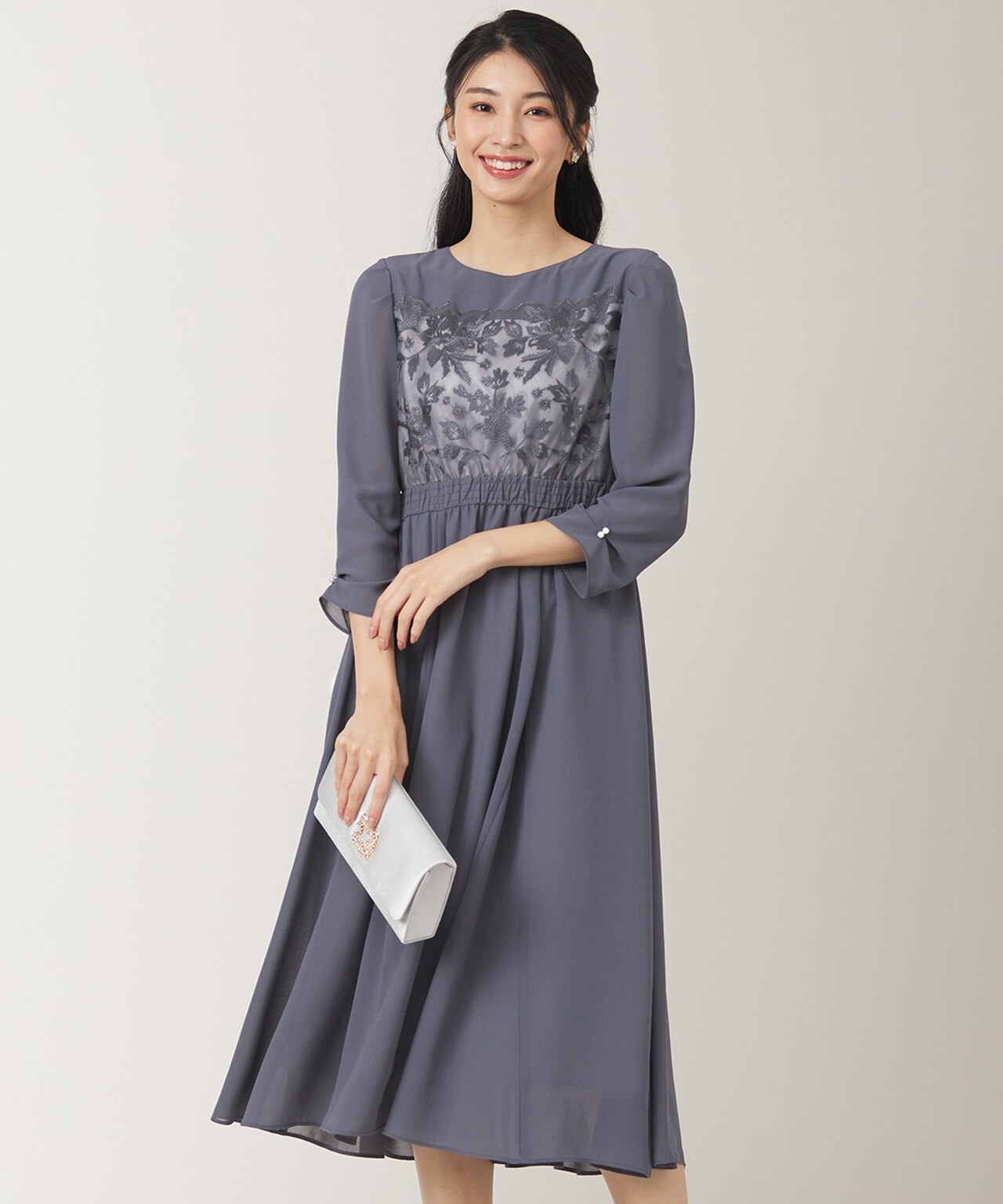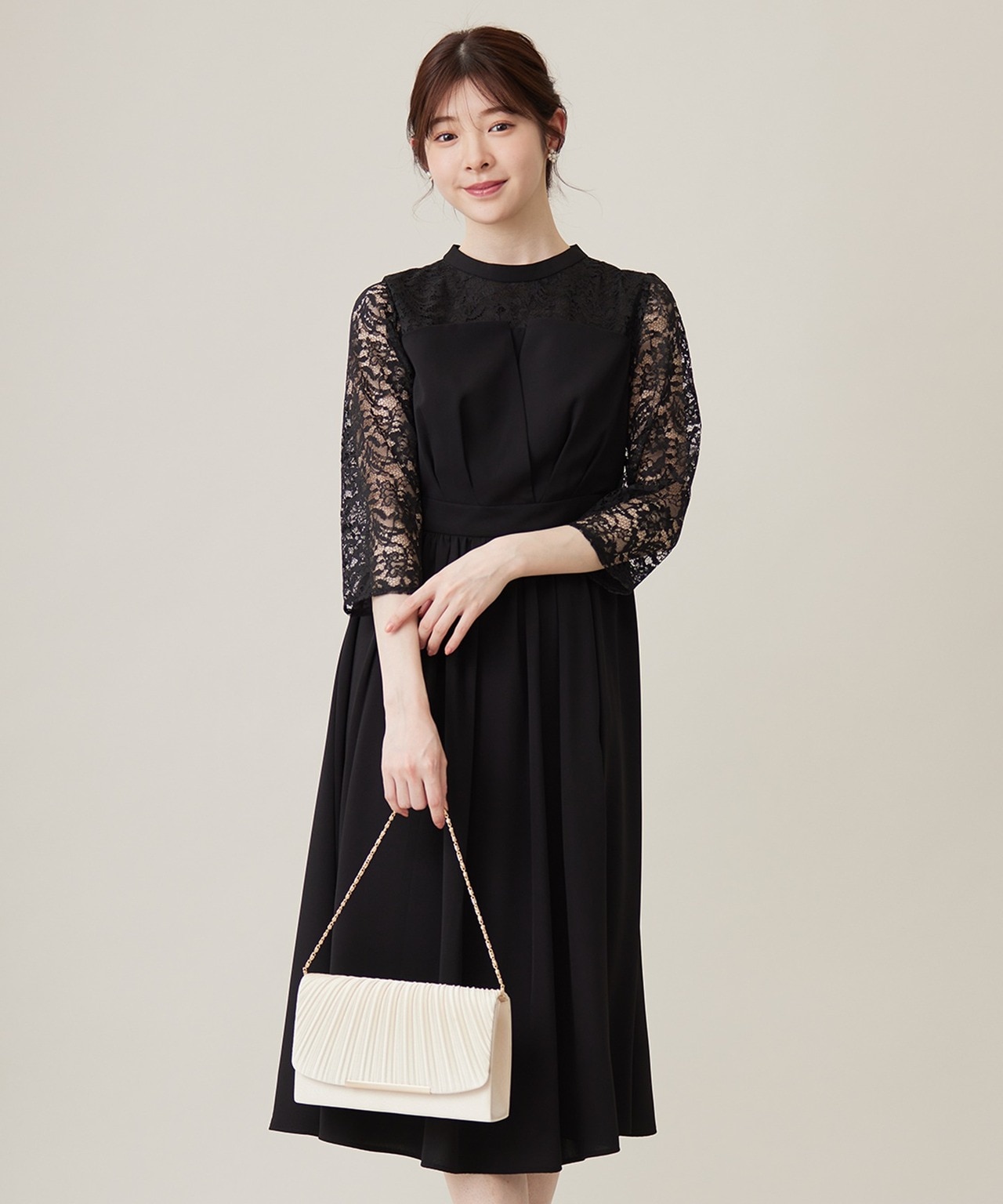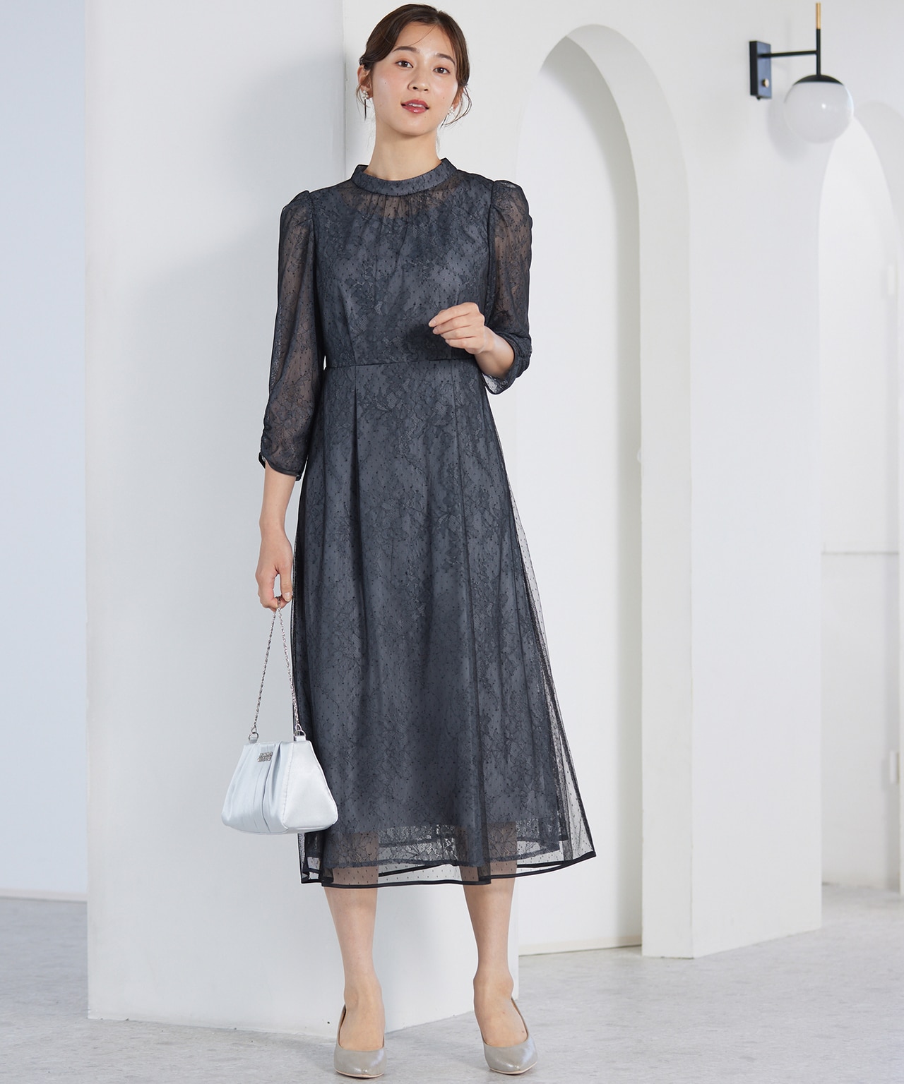 繊細なレースとシアーなチュールが2重になったふんわりと広がるフェミニンドレス。