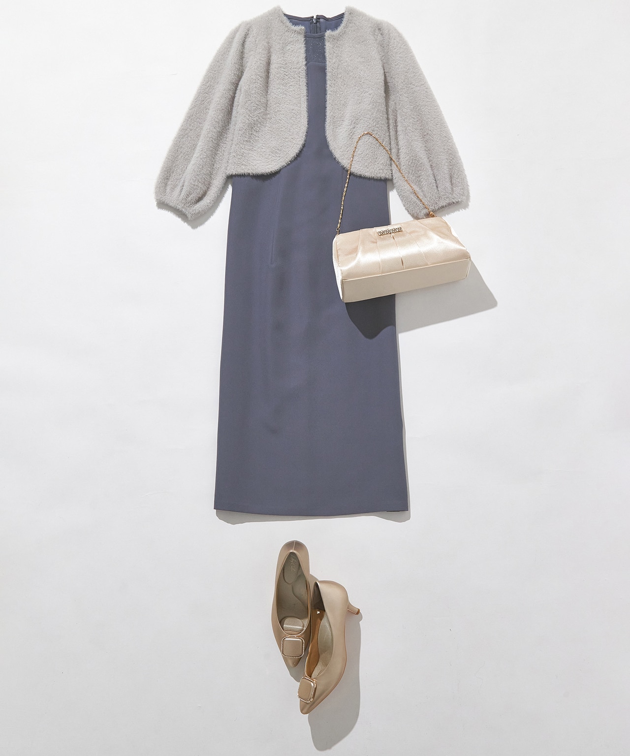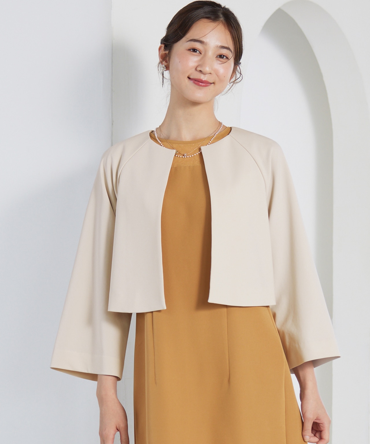 好バランスに着こなせるクロップド丈のジャケットと合わせると、袖の短いドレスでもシーズンレスに着回せます。