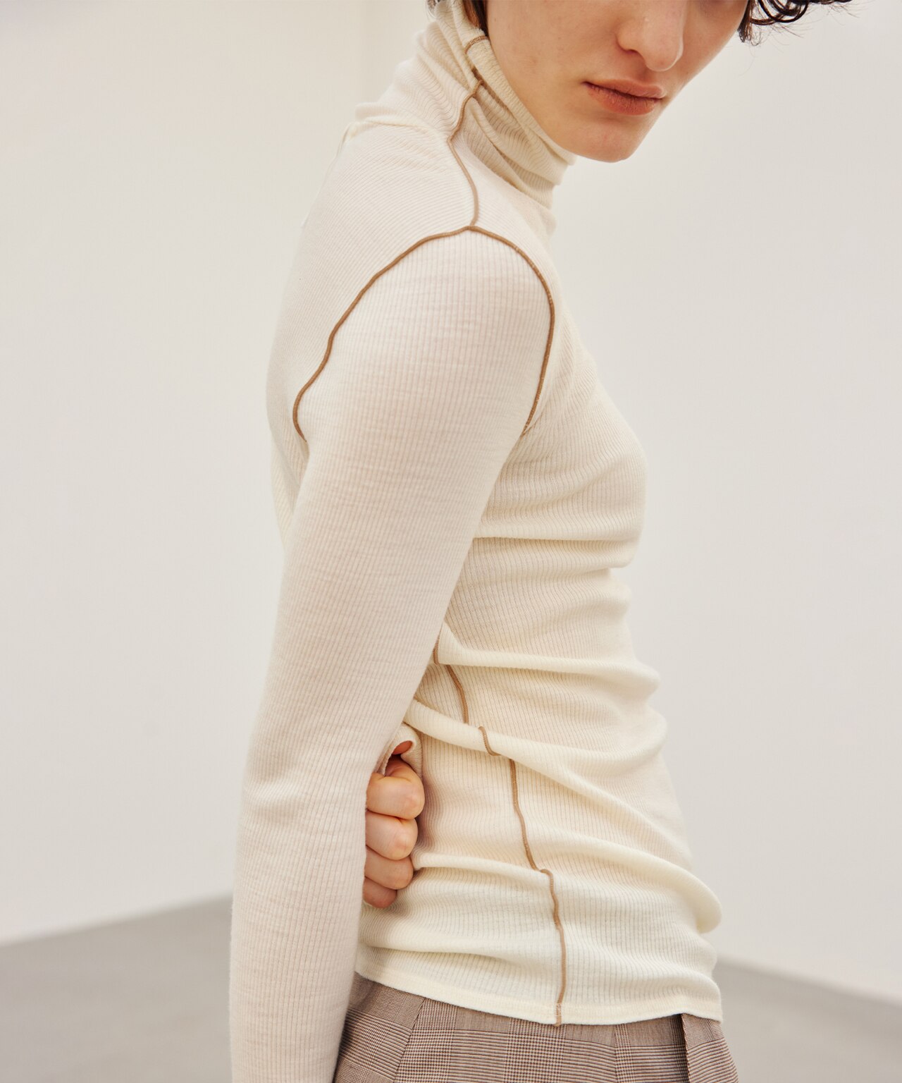 今週は、柔らかなフィット感と配色ラインが人気のBEIGE,定番ニットをご紹介。ハイネックとクルーネック、ボートネックの着回しやすい3モデルをご覧ください。