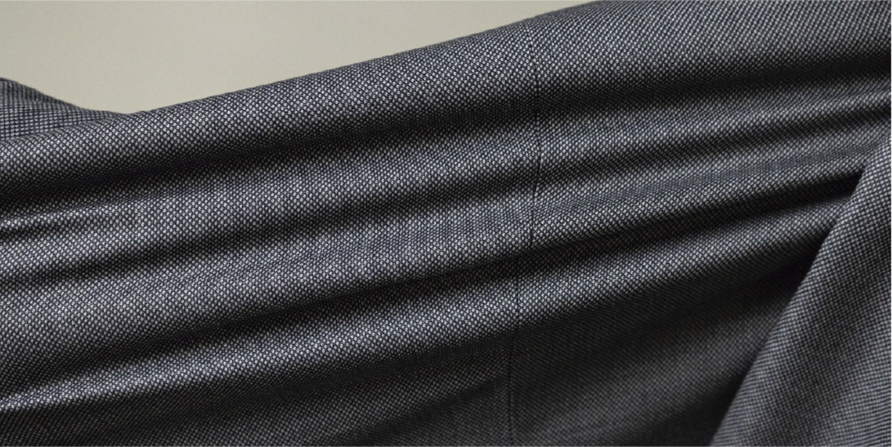 光沢のある高品質なウール100%原料を使いながら設計や特殊な加工で今までにはない伸びを実現しました。