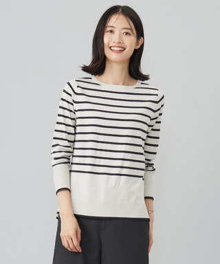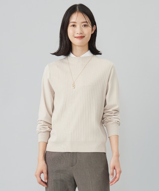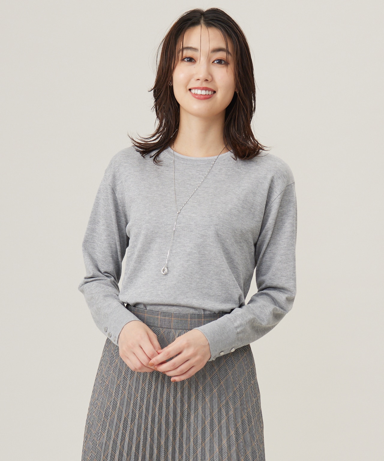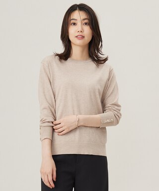 様々なスタイリングに活躍する、微光沢ラメが上品な薄手の長袖ニット。袖口にはJ.PRESSオリジナルのロゴ釦を施し、襟ぐりにはラメ糸を一緒に編むことで配色のアクセントをプラスしました。女性らしい華やかな印象のスタイリングを演出する1枚です。ボトムやシーンを選ばないシンプルなデザインのため、いつでも大活躍の頼れる1枚です。