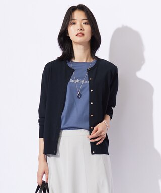 持ち運びやすく、お出かけやオフィスシーンに活躍!ロゴ入りゴールド釦が華やかなカーディガン