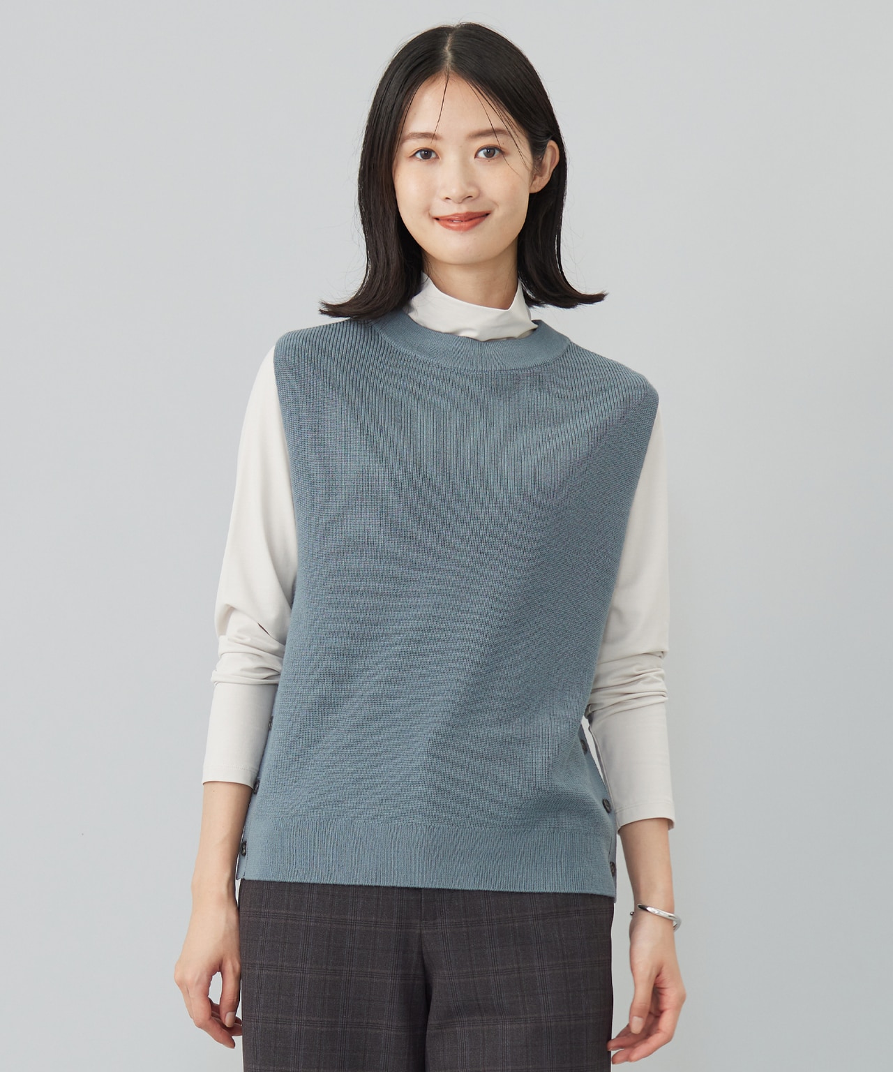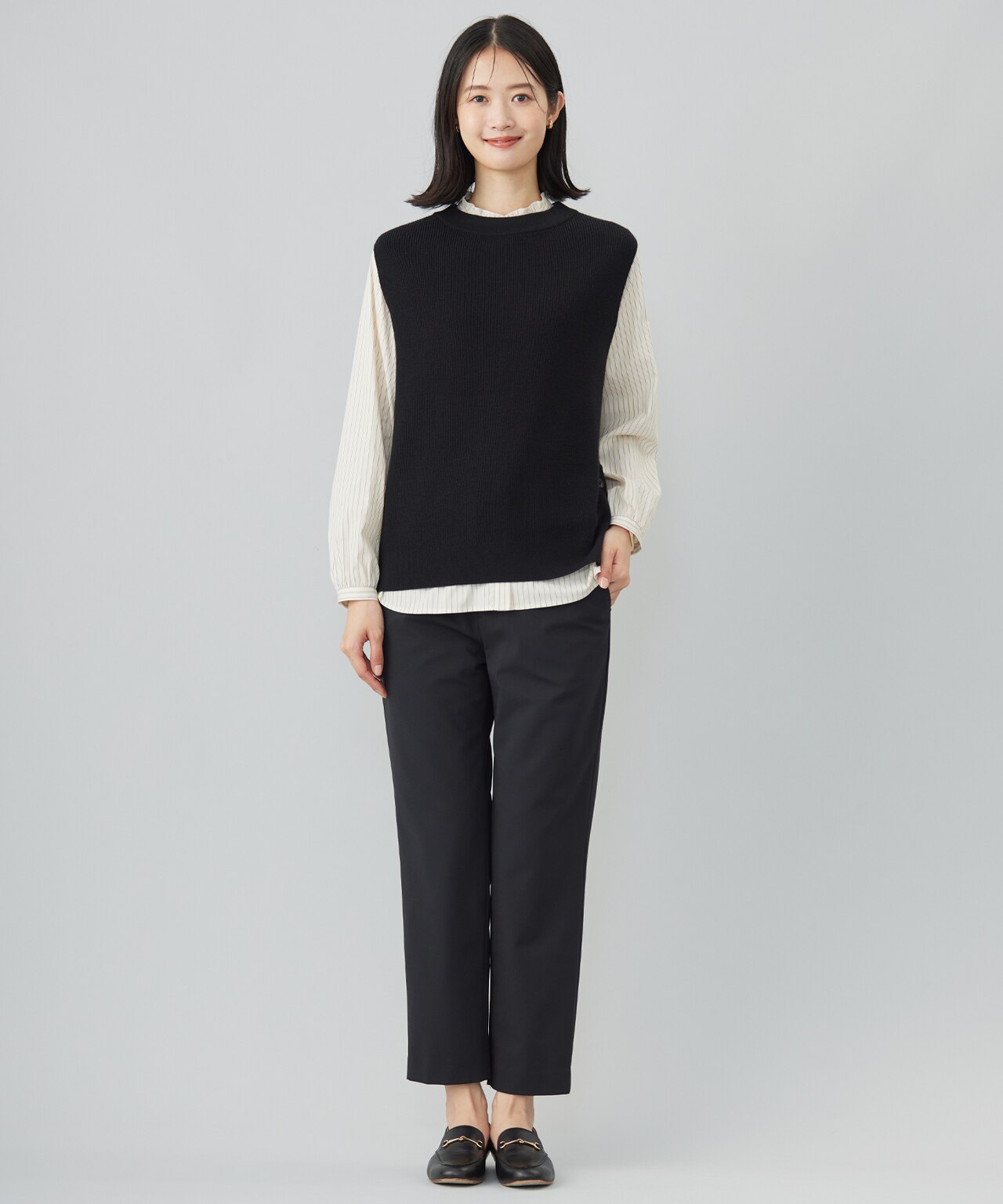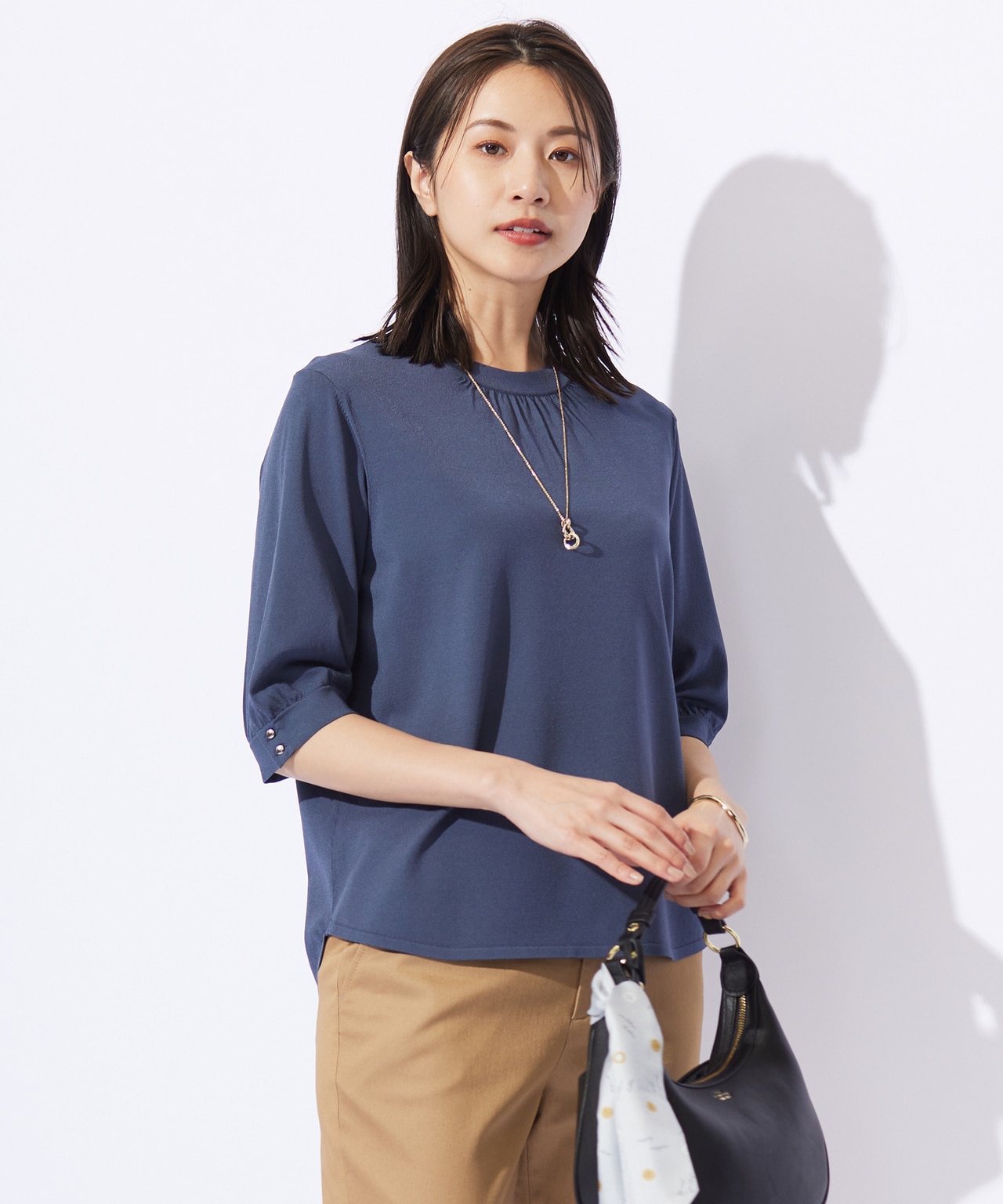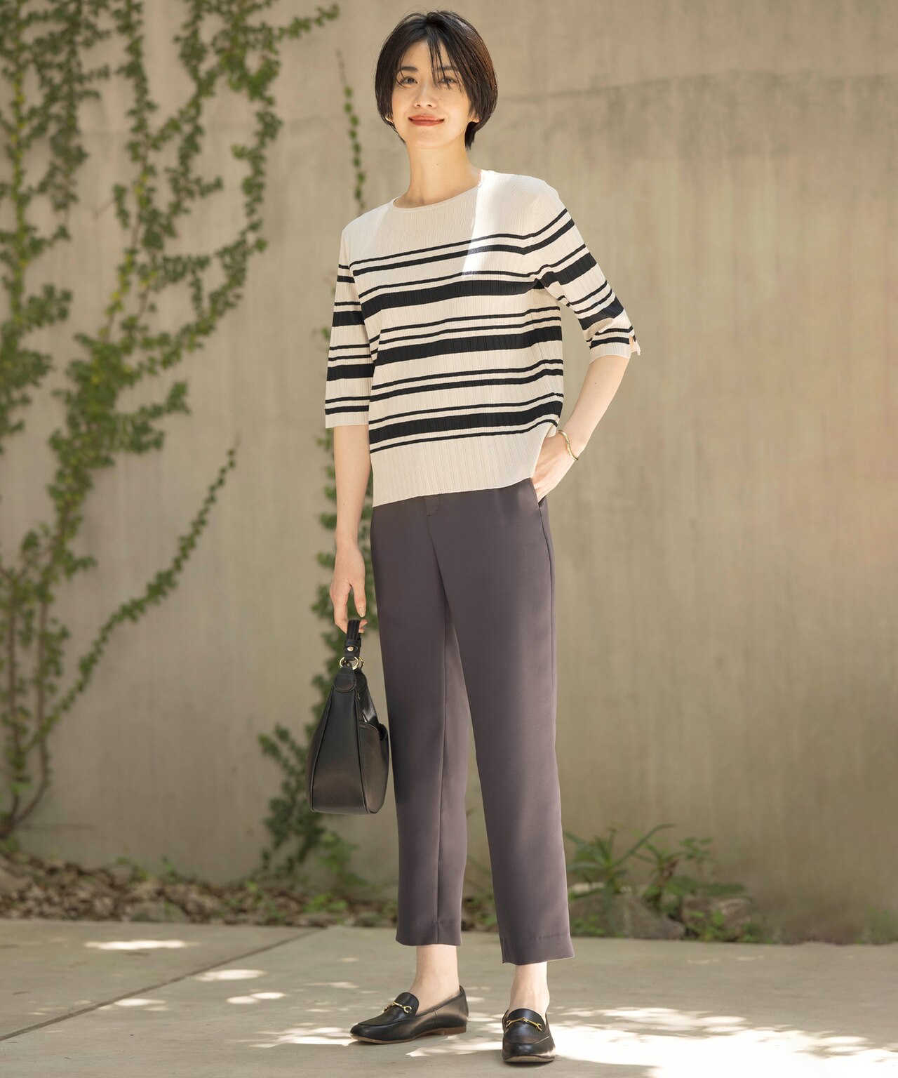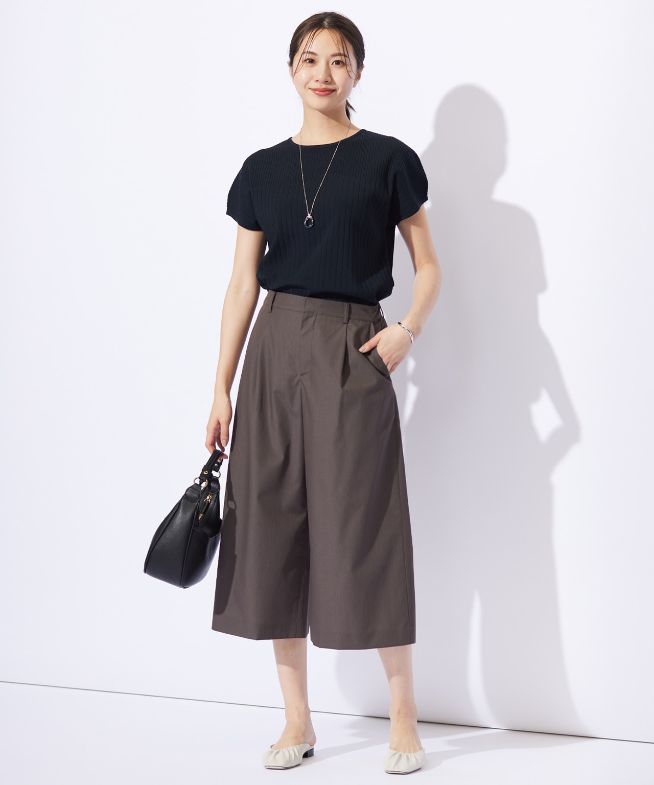 リサイクルビスコースとストレッチポリエステルを組み合わせた、環境に優しいサステナブルな素材。柔らかさと弾力性があり、ストレスフリーな着心地で、真夏から長い期間着られるのが嬉しいポイント。