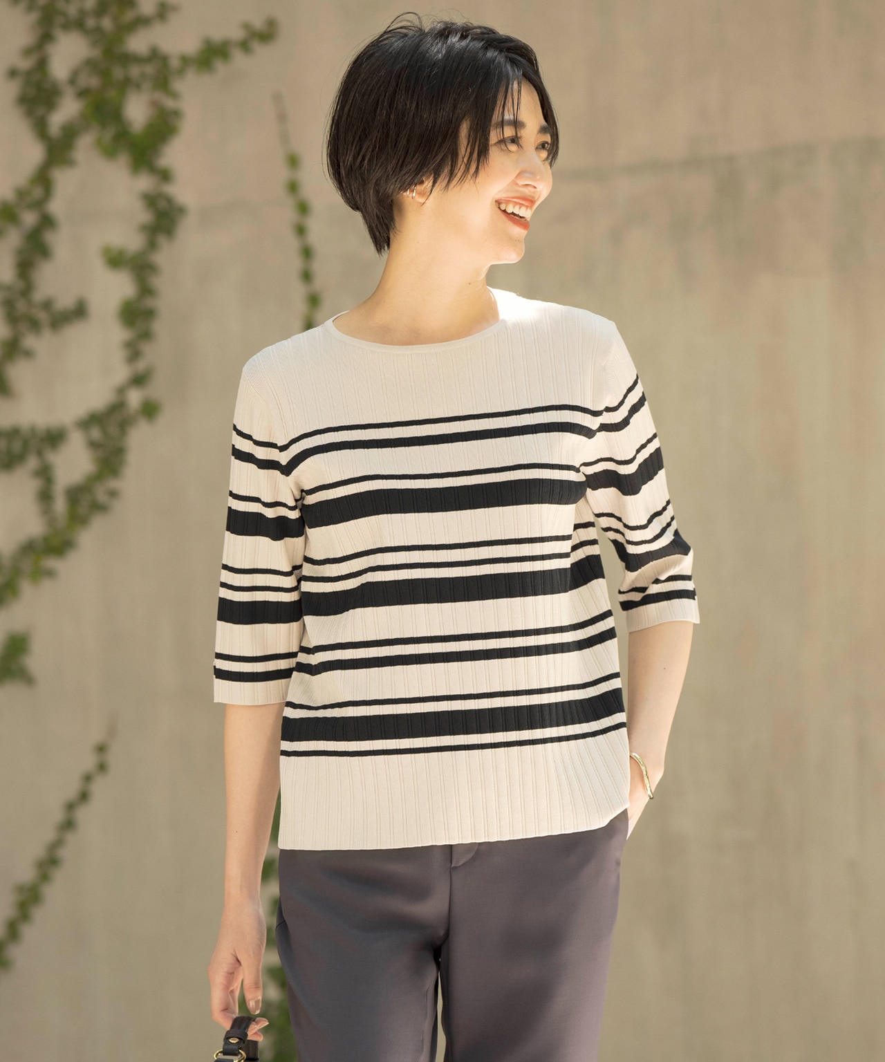 ギャザースリーブ ニット / カーディガン / ボーダーニット / フレンチスリーブニット