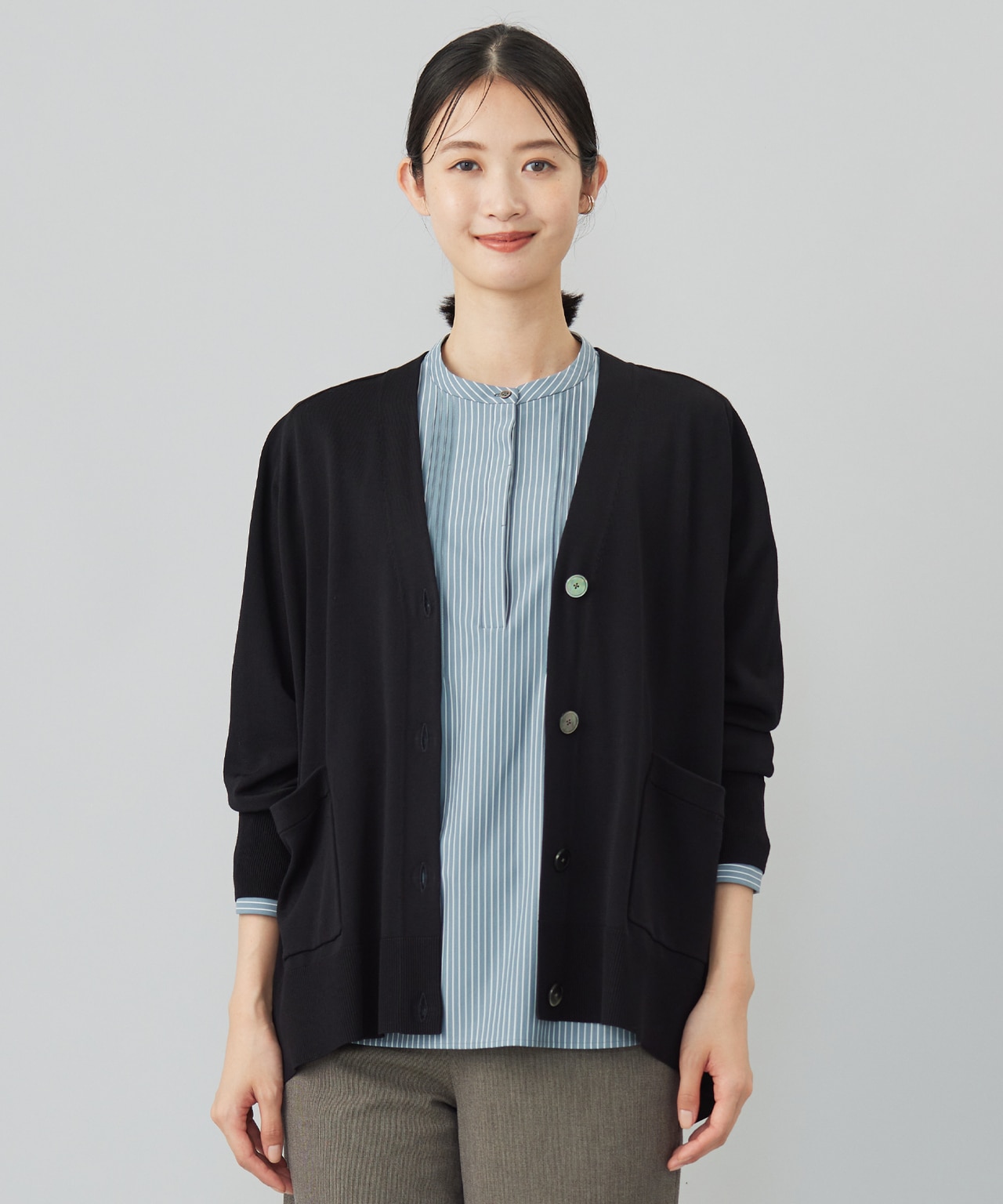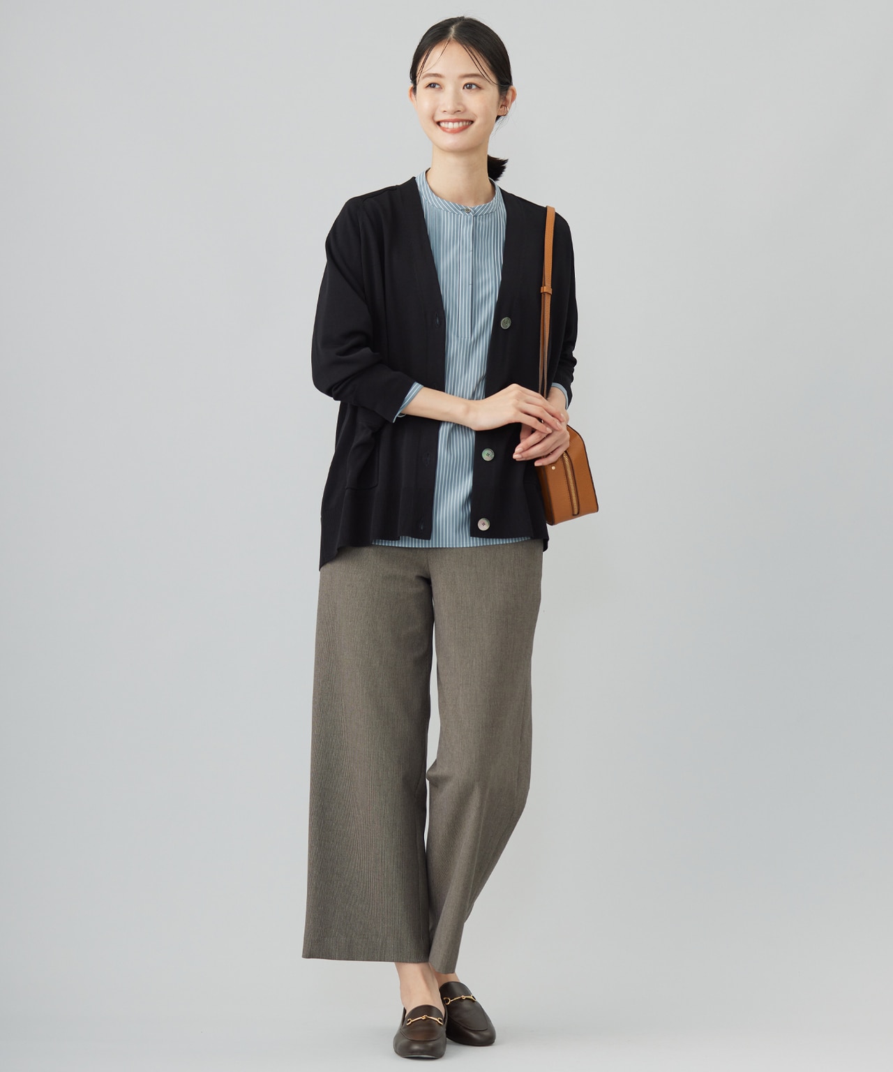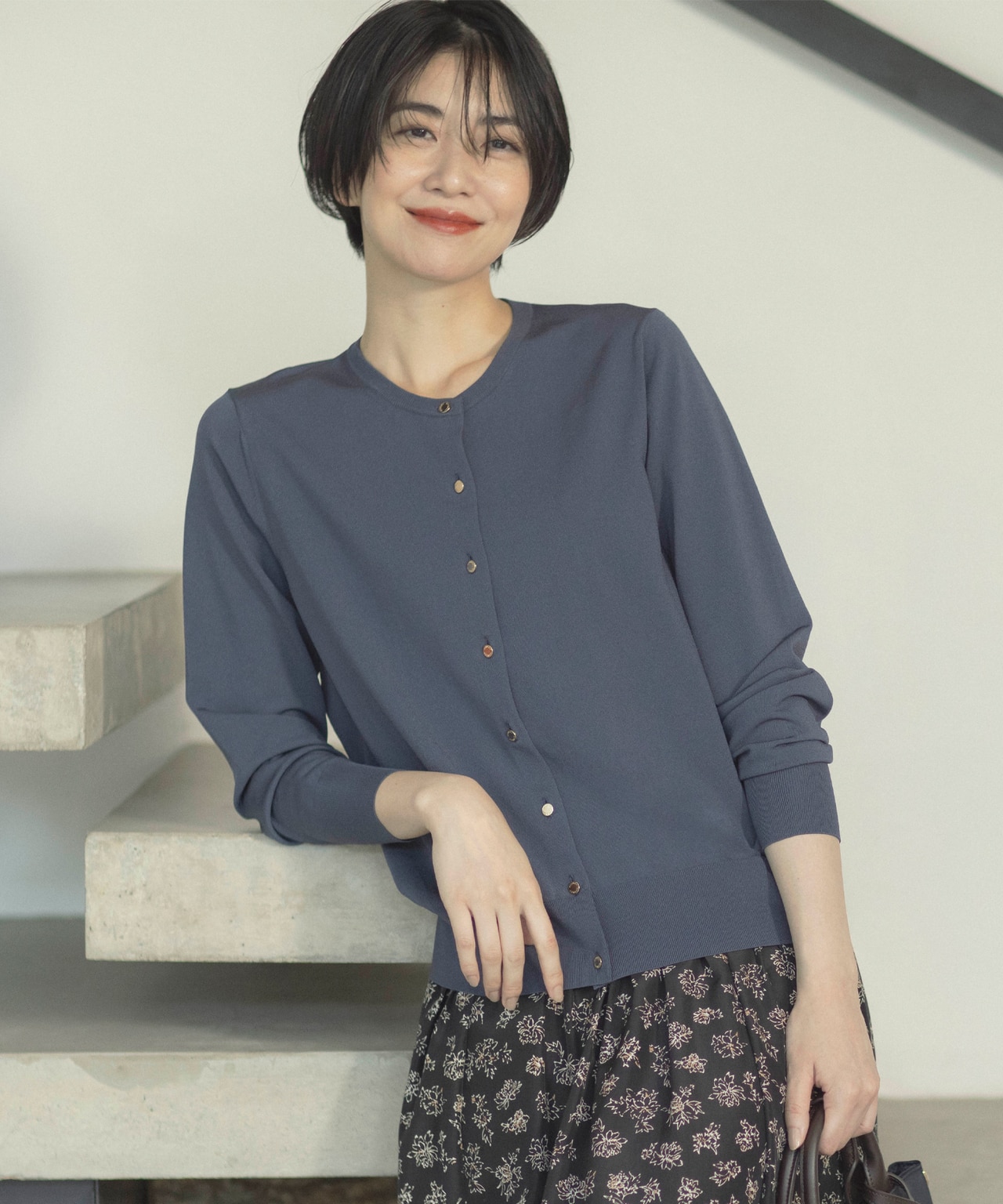 【洗える】レーヨンエリートストレッチ クルーネック カーディガン