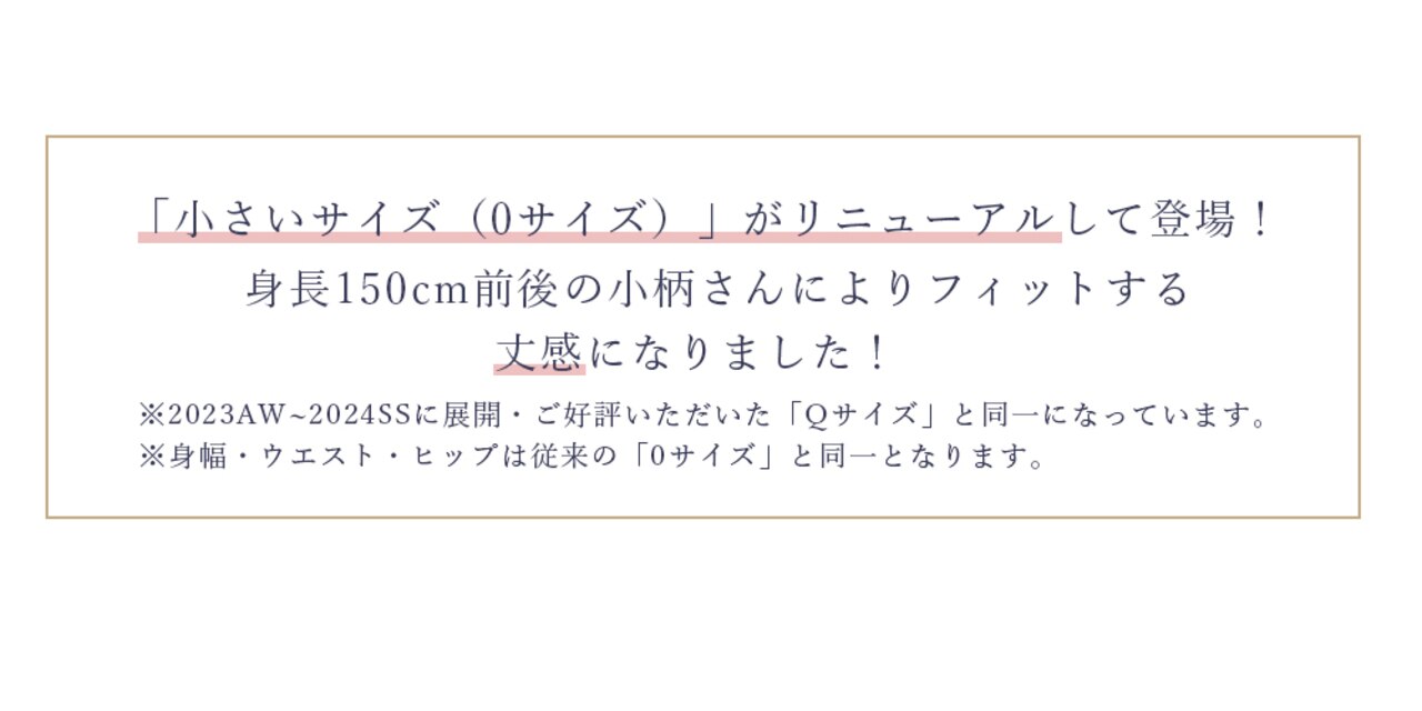 丈感・ウエスト周りのゆとりがちょうど良く、まさにベストフィットな0サイズ。
