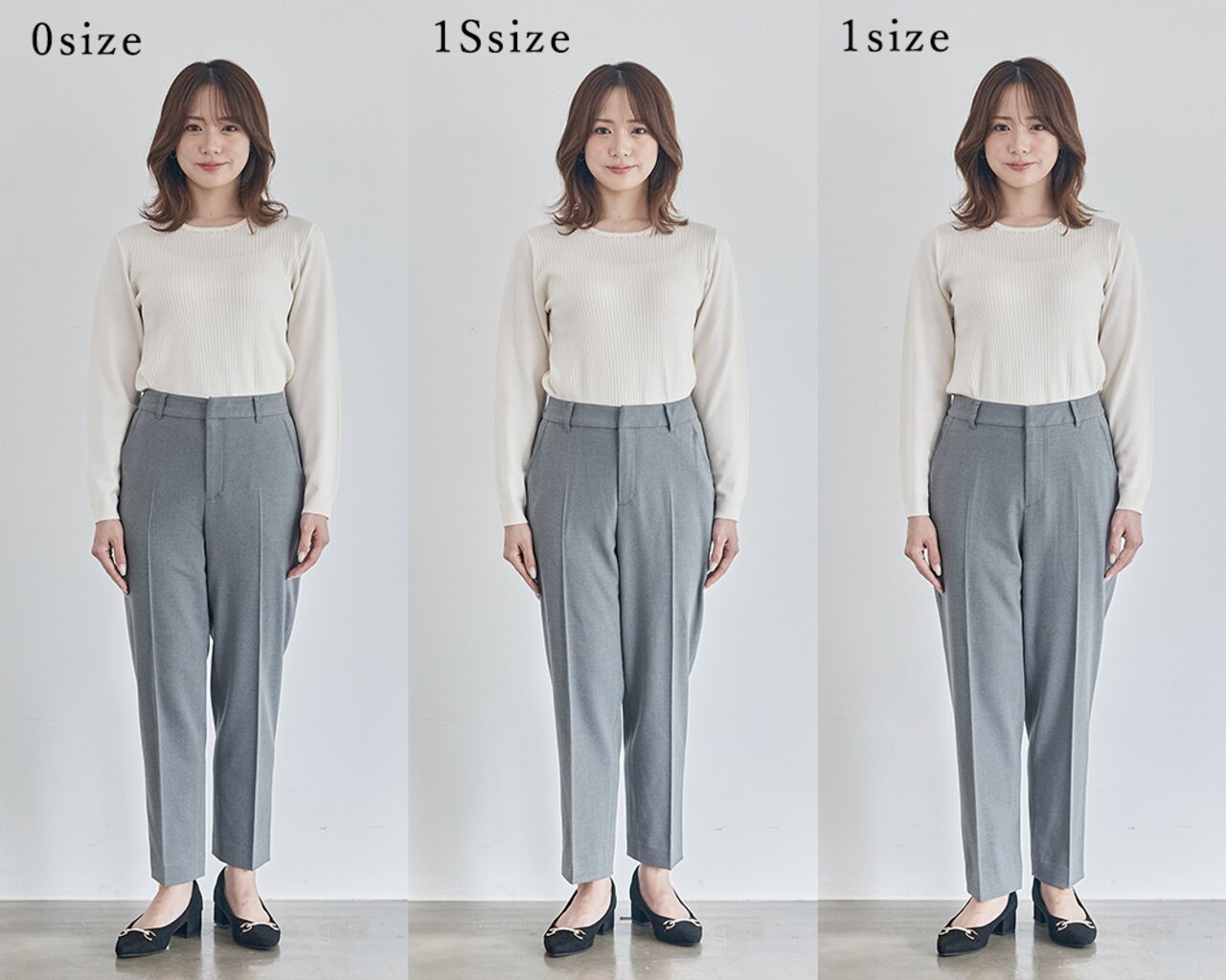 1サイズは丈が長く、フルレングスに。ヒップにもややゆとりが生まれます。シルエットがきれいなので、重たい印象にはなりませんが、0サイズに比べてやや太めな見え方になります。