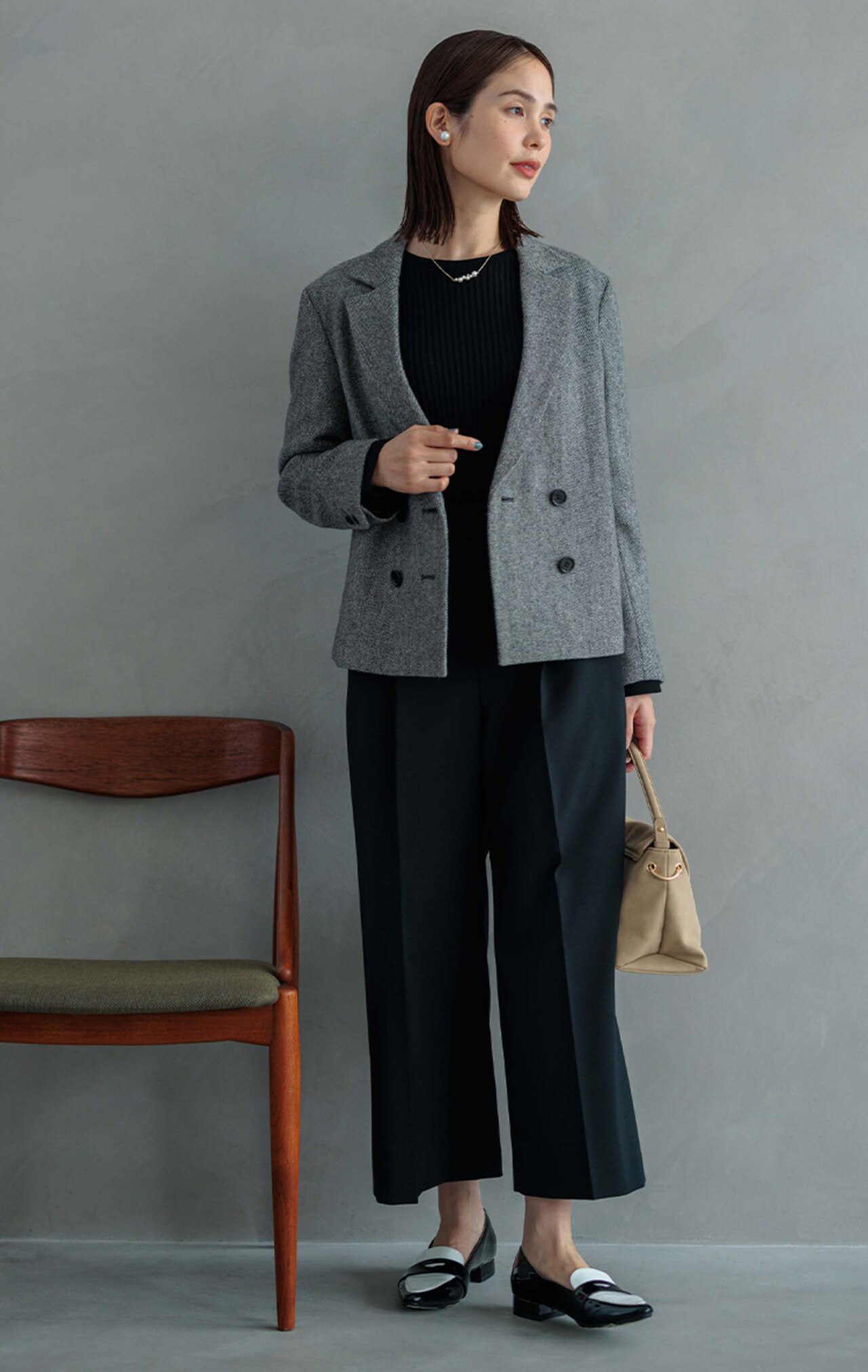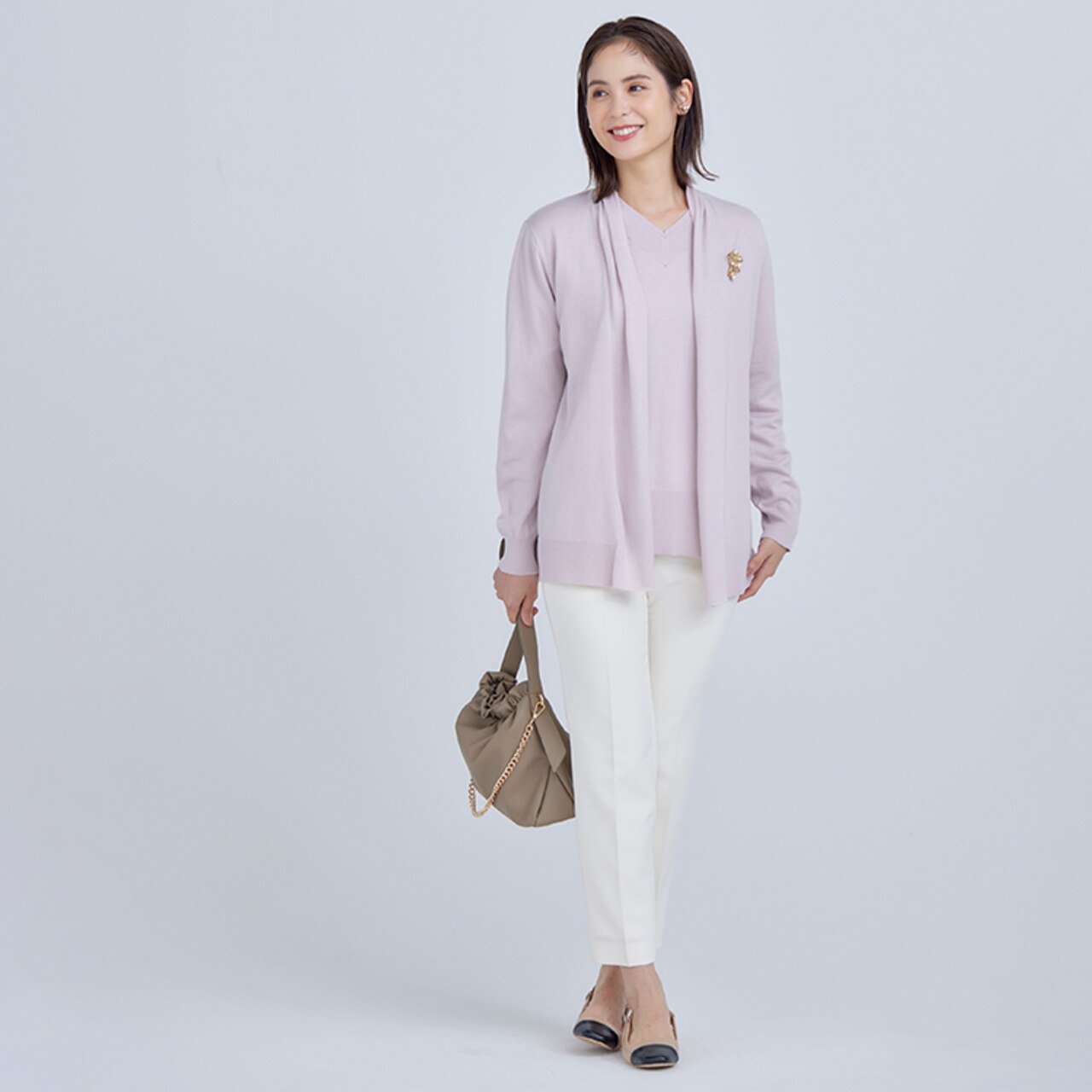 ストレスフリーなはき心地とカジュアル感を抑えたすっきりとしたきれい見えが叶う組曲こだわりの一着。