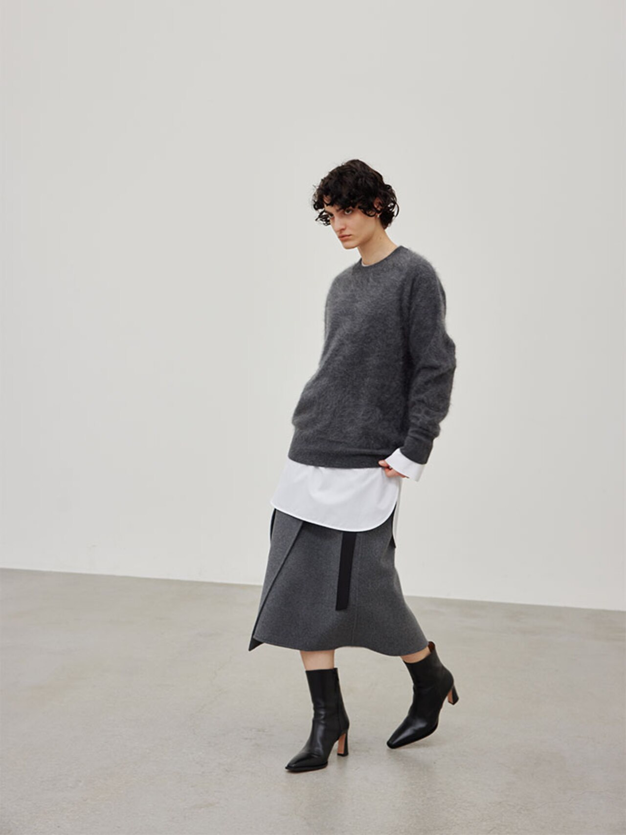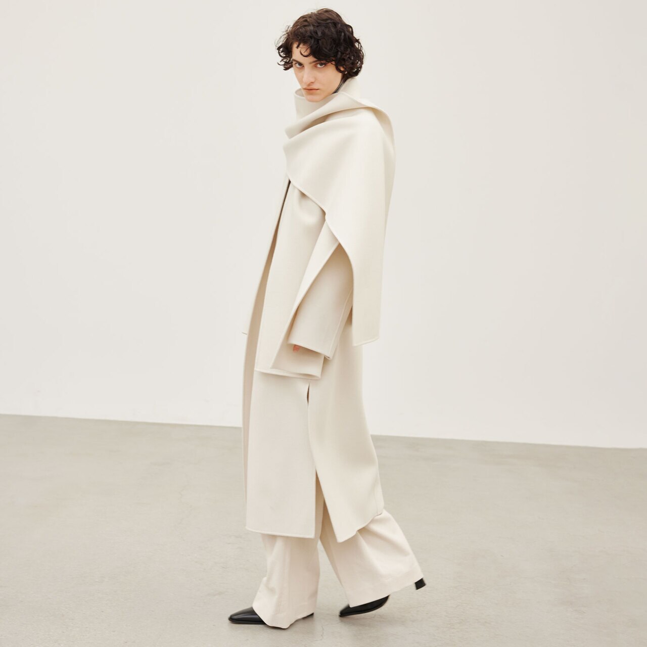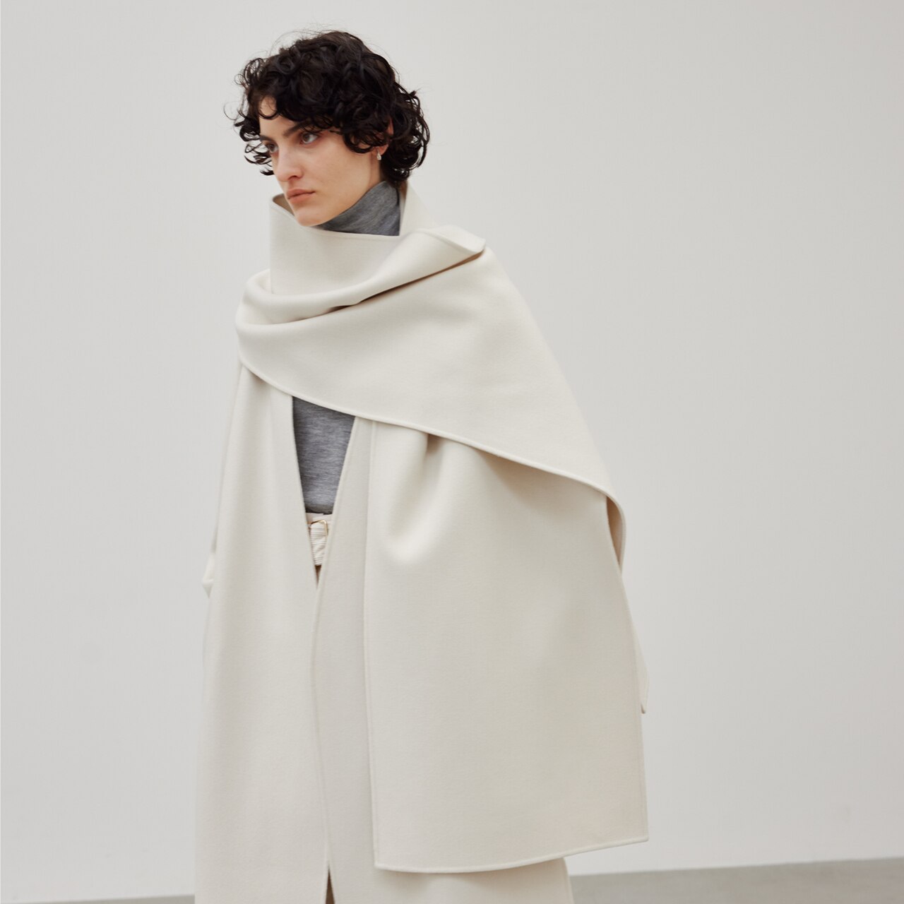 上質なカシミヤやシルク、柔らかなリバーコートなど