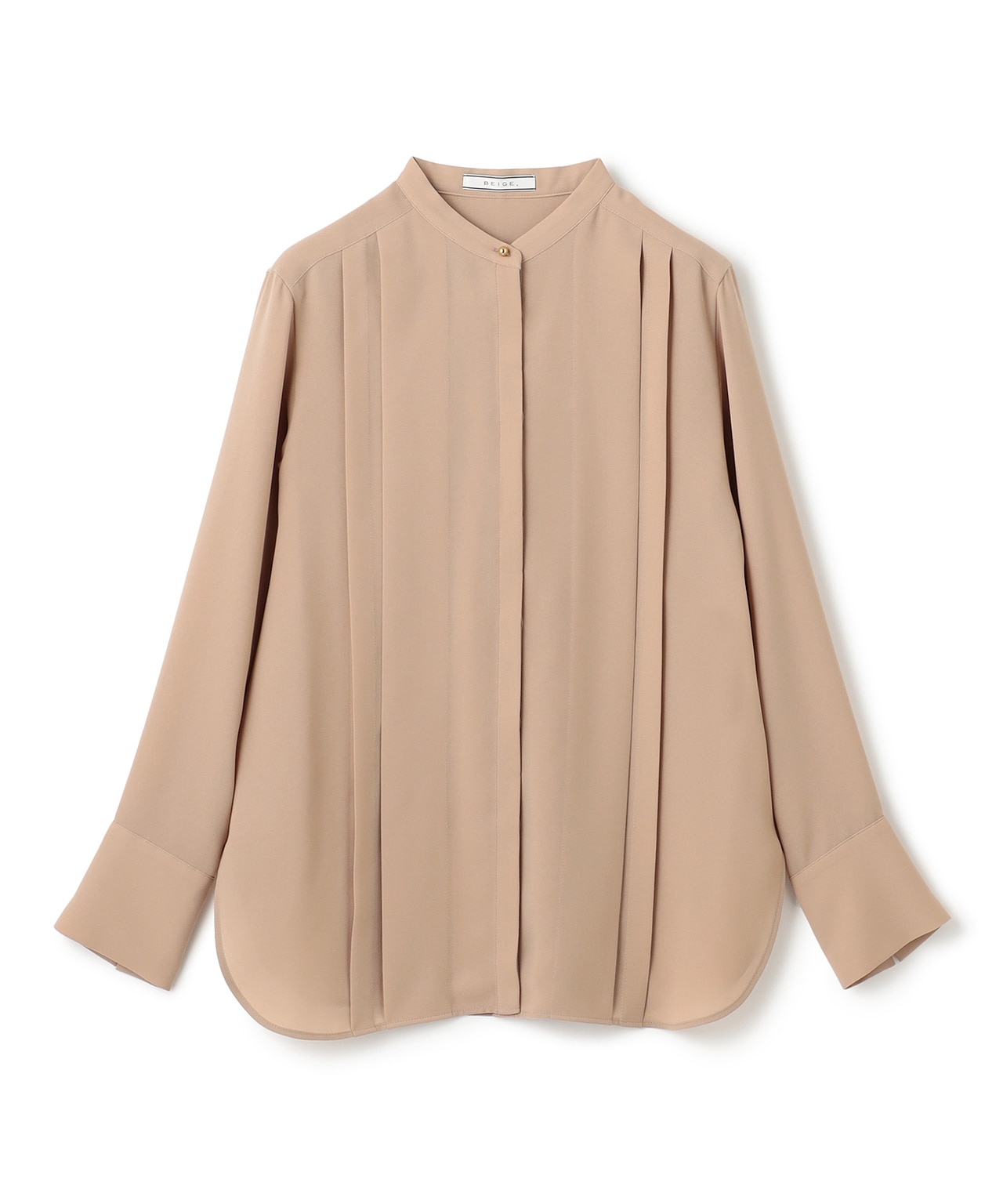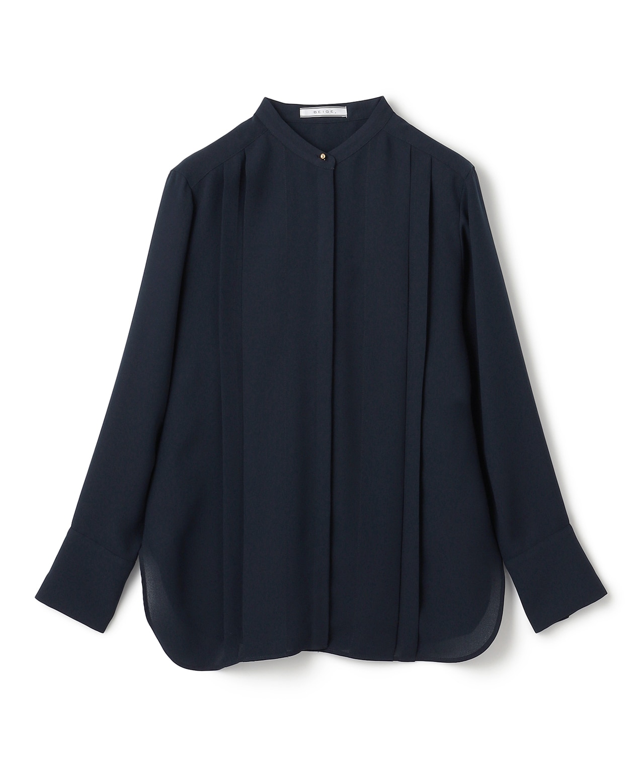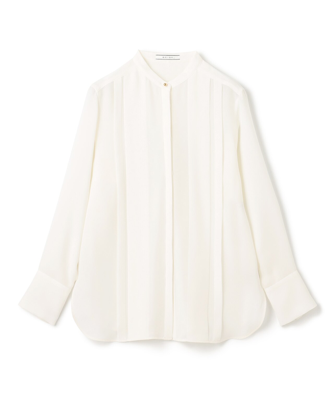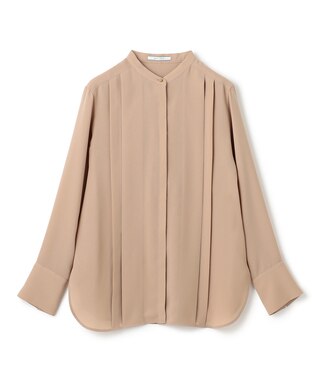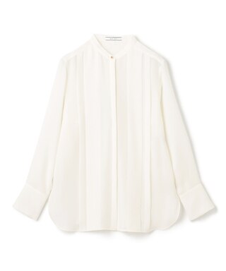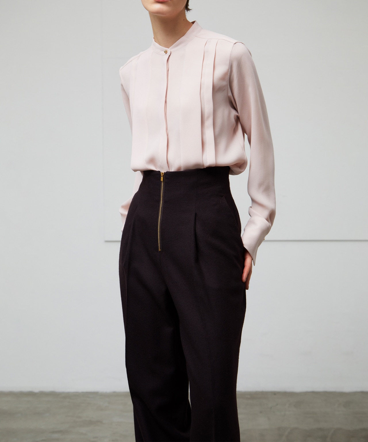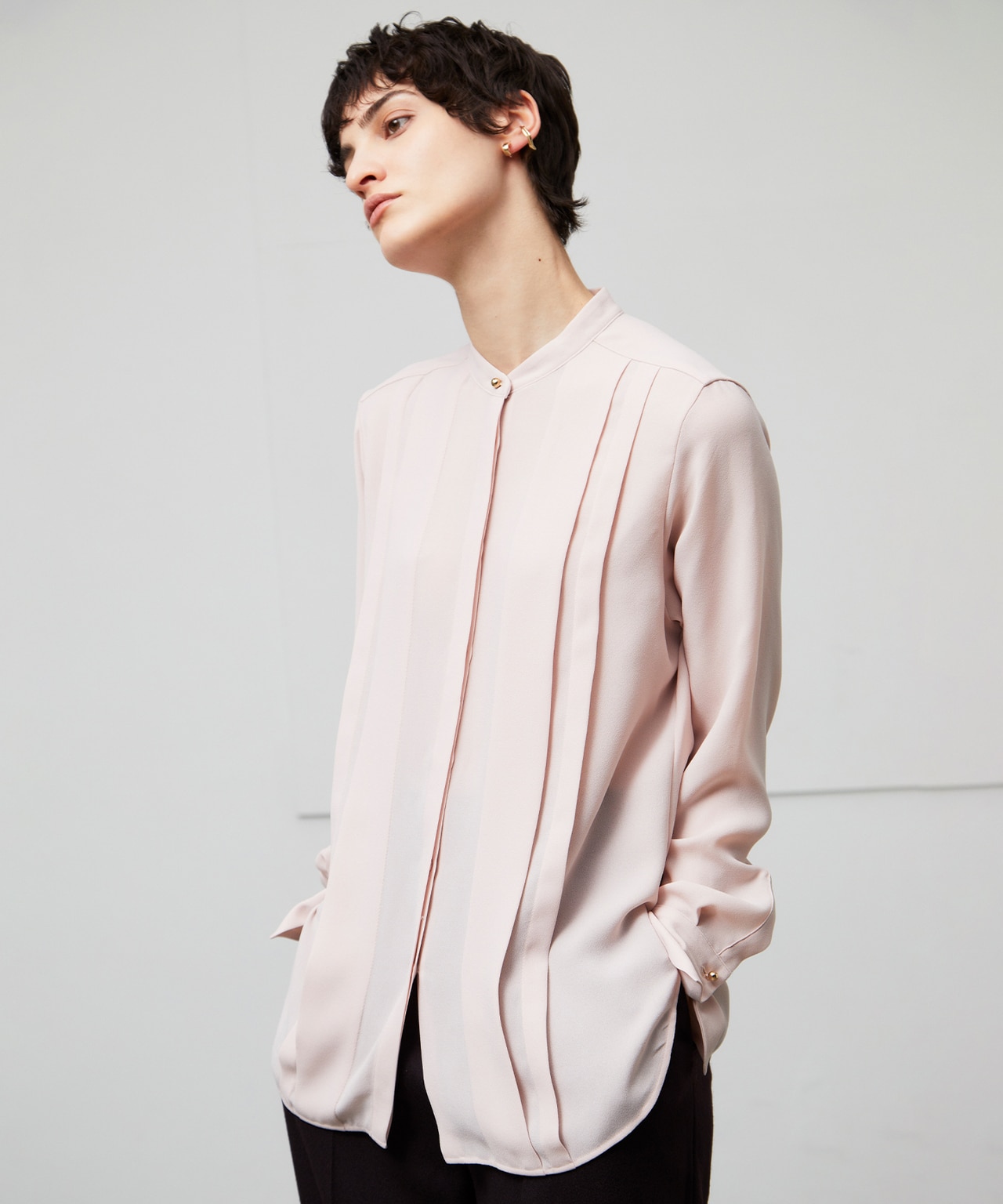 幅の違うワイドタックで作るクラシカルなブラウス。ベーシックなデザインだからこそ一枚はもちろんジャケットのインナーにも程よい華やかさを加えてくれる汎用性抜群なデザイン。