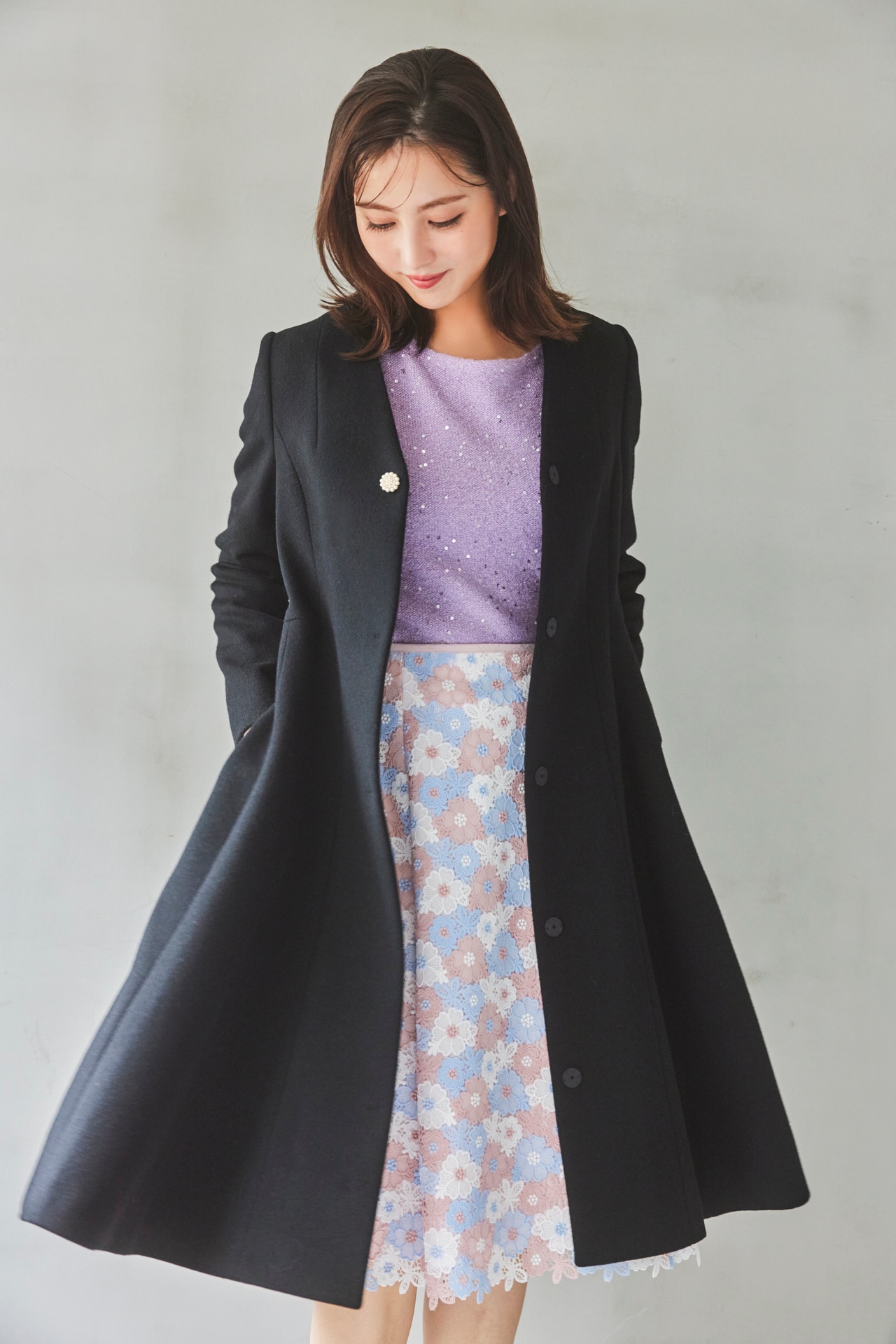 ラインナップは、コンサバティブで上品なガーリースタイル、彼女が好んだファーライクな素材。 シックなメルトン。 マニッシュなシルエットのショートコート。