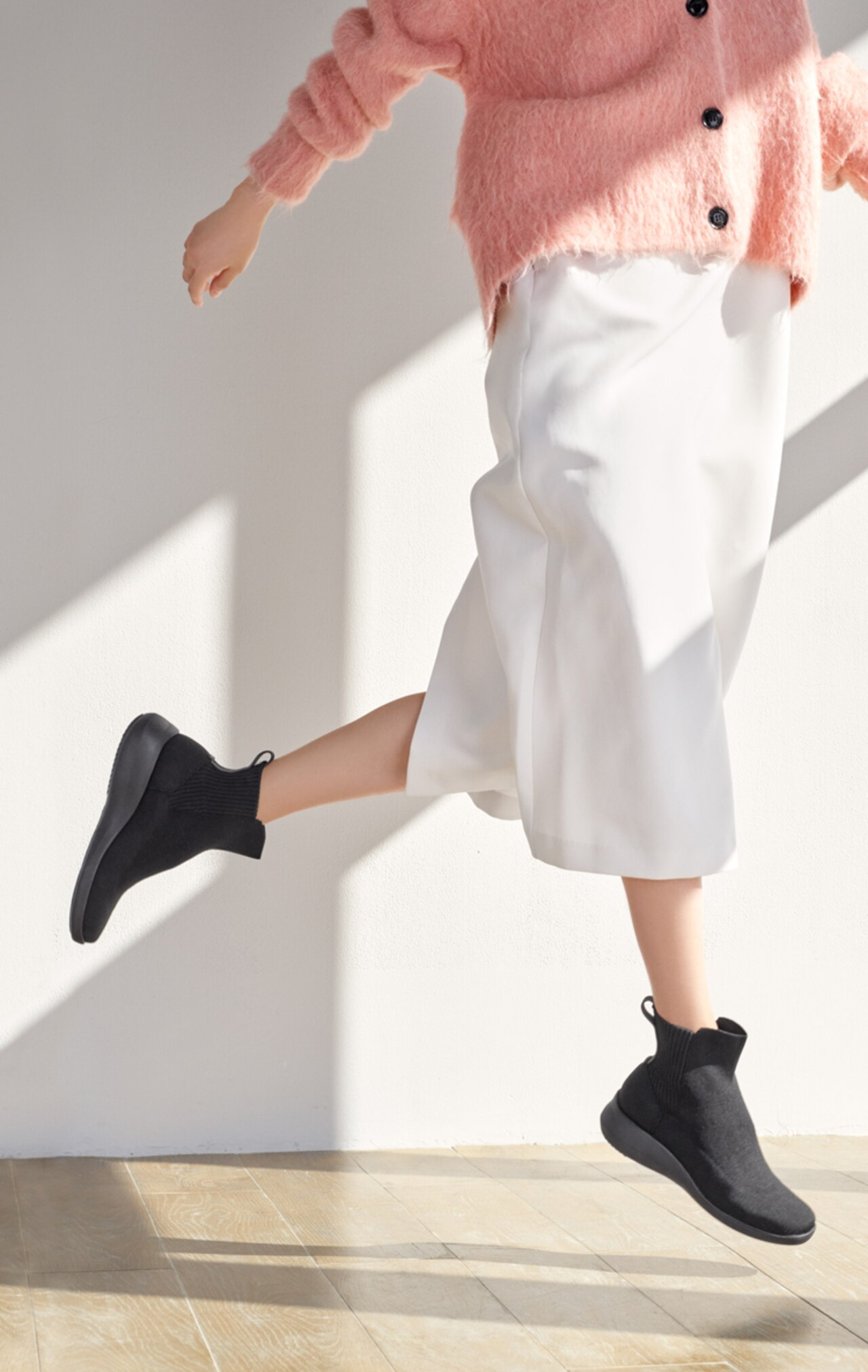steppiのブーツならニットでできているから軽く、足首もよく曲がり一日履いても疲れにくい!
