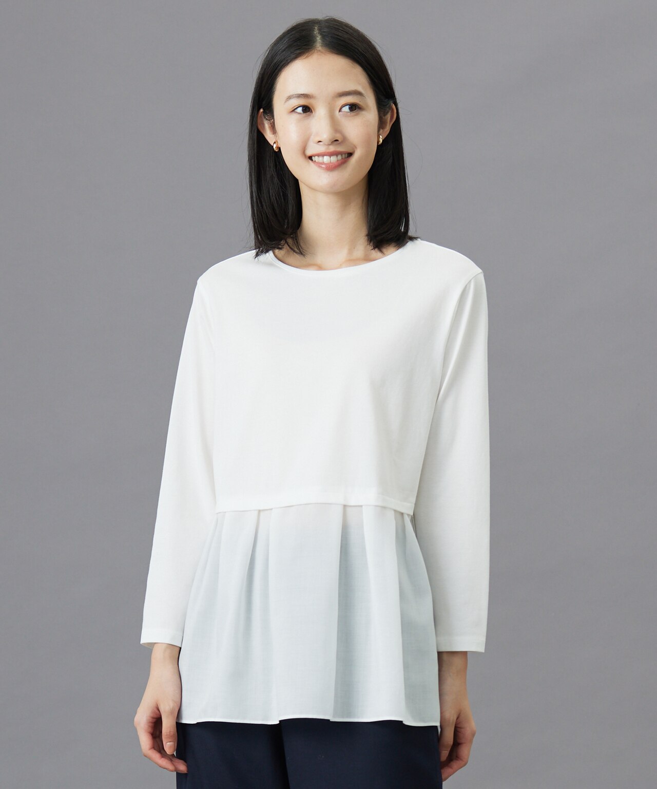 今季イチオシのレイヤードインナー。ドッキングデザインで、裾フレアー部分がふんわりと広がり、さりげなく腰回りをカバー◎。ニットやカーディガンにインするだけでこなれ感あるスタイリングに。