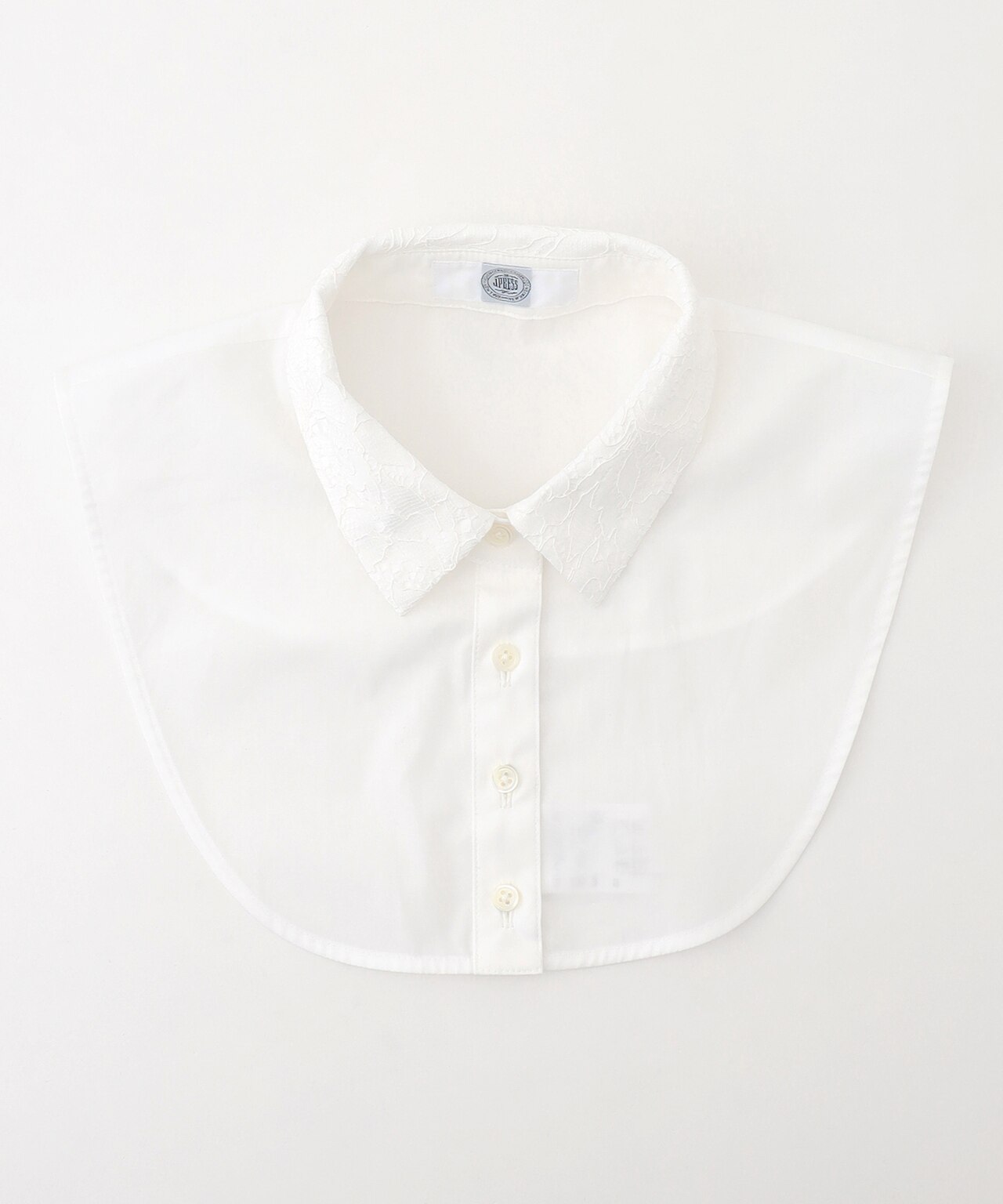 お手持ちのアイテムと合わせるだけで鮮度が高まる、女性らしいレースのデコカラー。綿100%の肌触りの良いレギュラーカラーに、フェミニンなレースをあしらっています。クラシックなワンピースなどと合わせて、お呼ばれシーンにも活躍します。