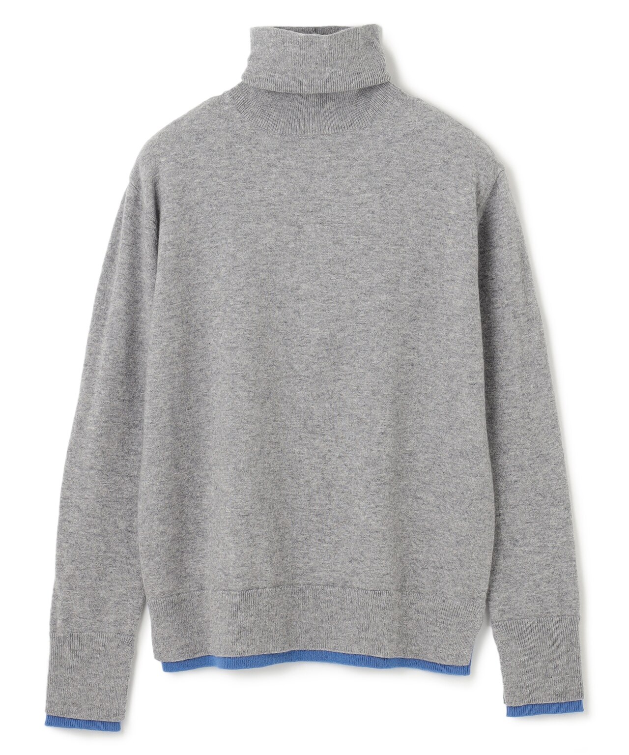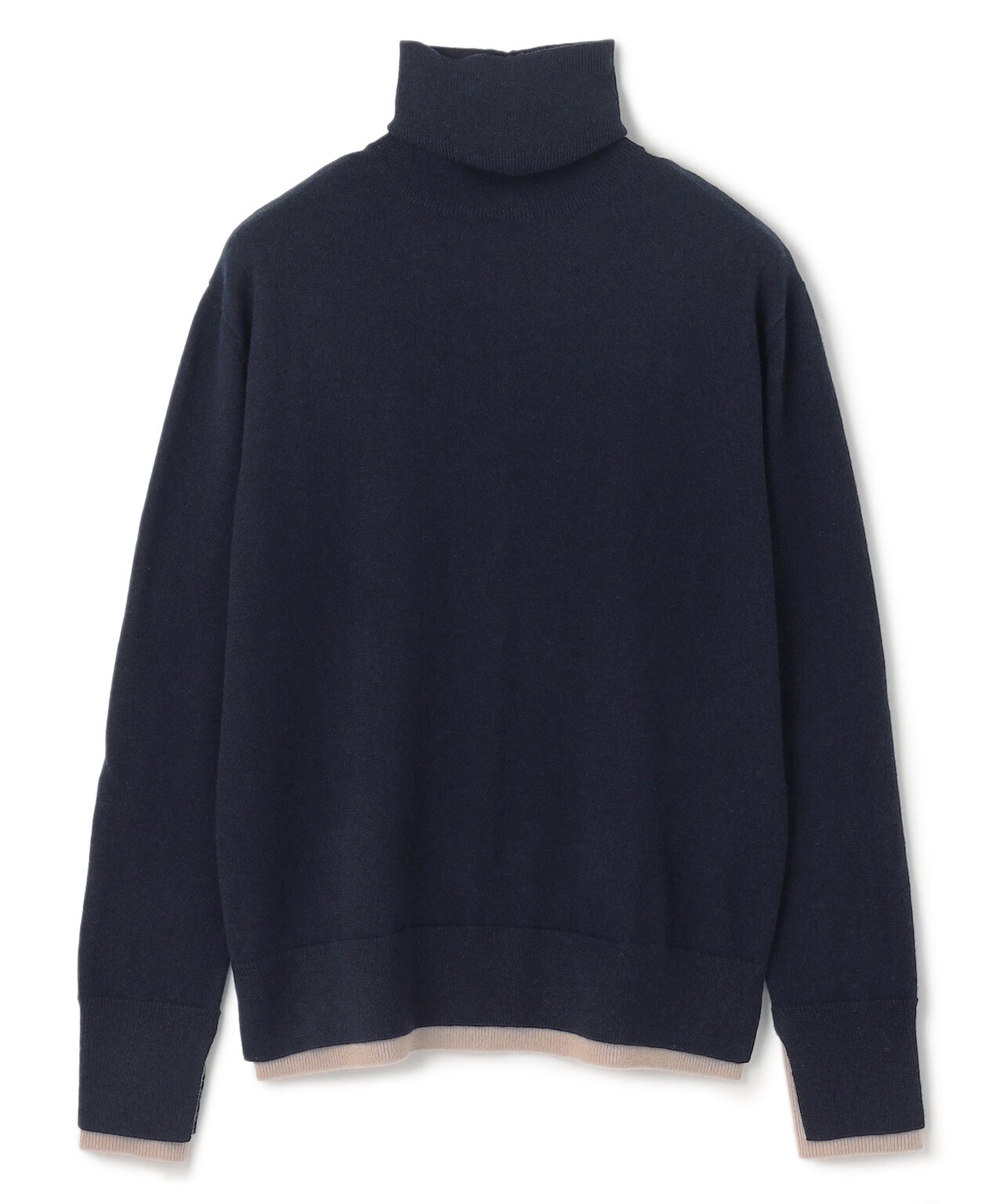 短めのタートルですっきりと着られるタートルニット。裾の配色リブがレイヤードしてるように見えるデザイン。程良い厚みでジャケットやコートにも着やすく、暖かく包み込みシャープに見えるニットです。