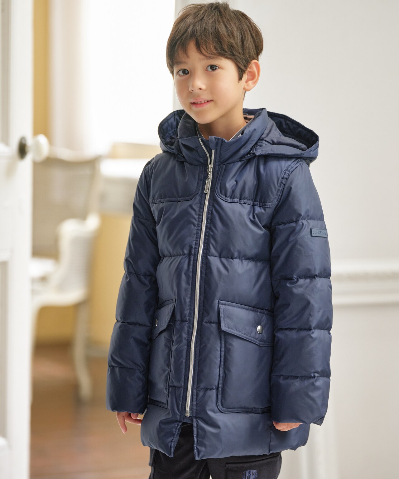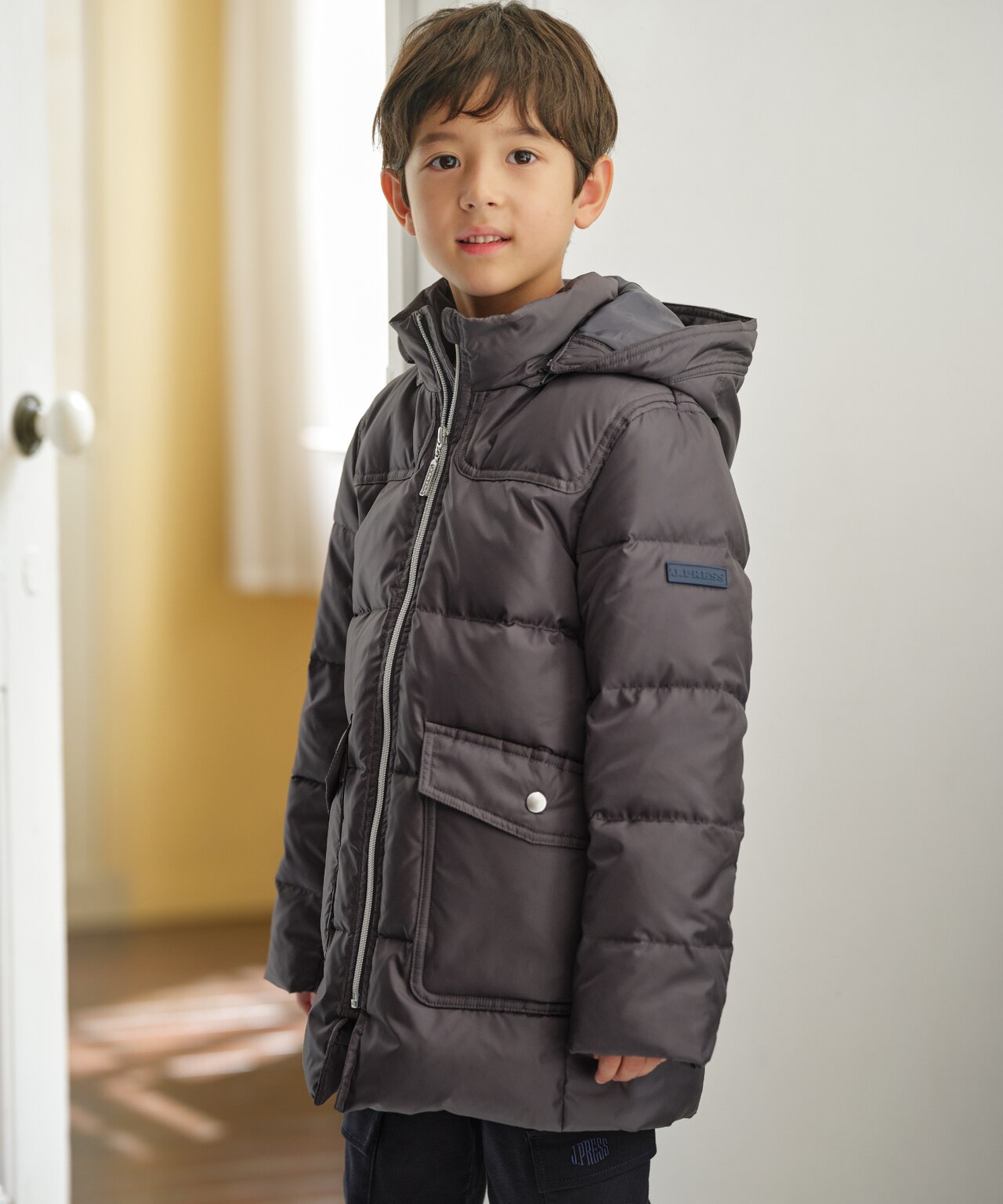 シレー感が上品な軽量タフタに撥水加工を施した、しっかりと暖かいダウンコート。程よい艶感が上品な印象で、カジュアルだけでなく様々なシーンに合わせやすいアイテム。 ジップアップで開け閉めするタイプなのでお子様ご自身での着脱も楽ちん♪