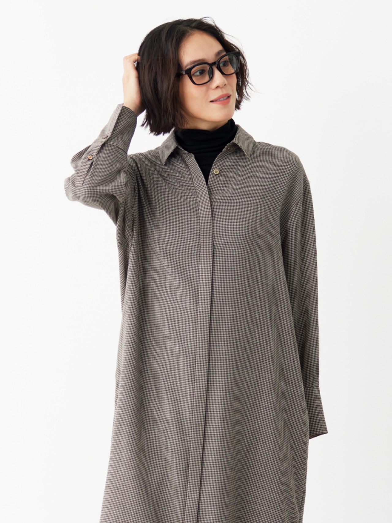 ゆるやかに体が泳ぐカジュアルなデザインながらも、ウール混の上質素材が際立ち、上品に仕上がります。