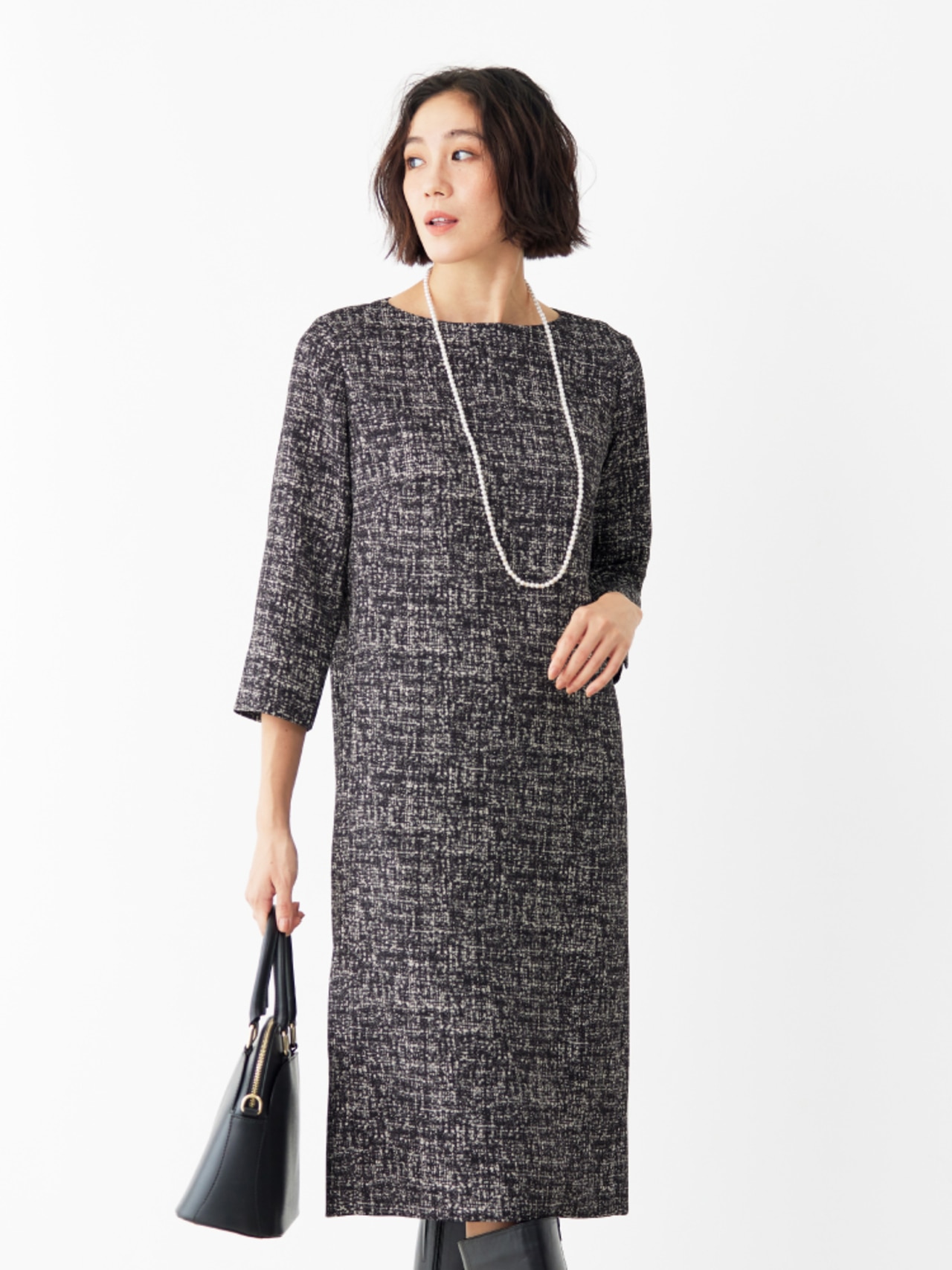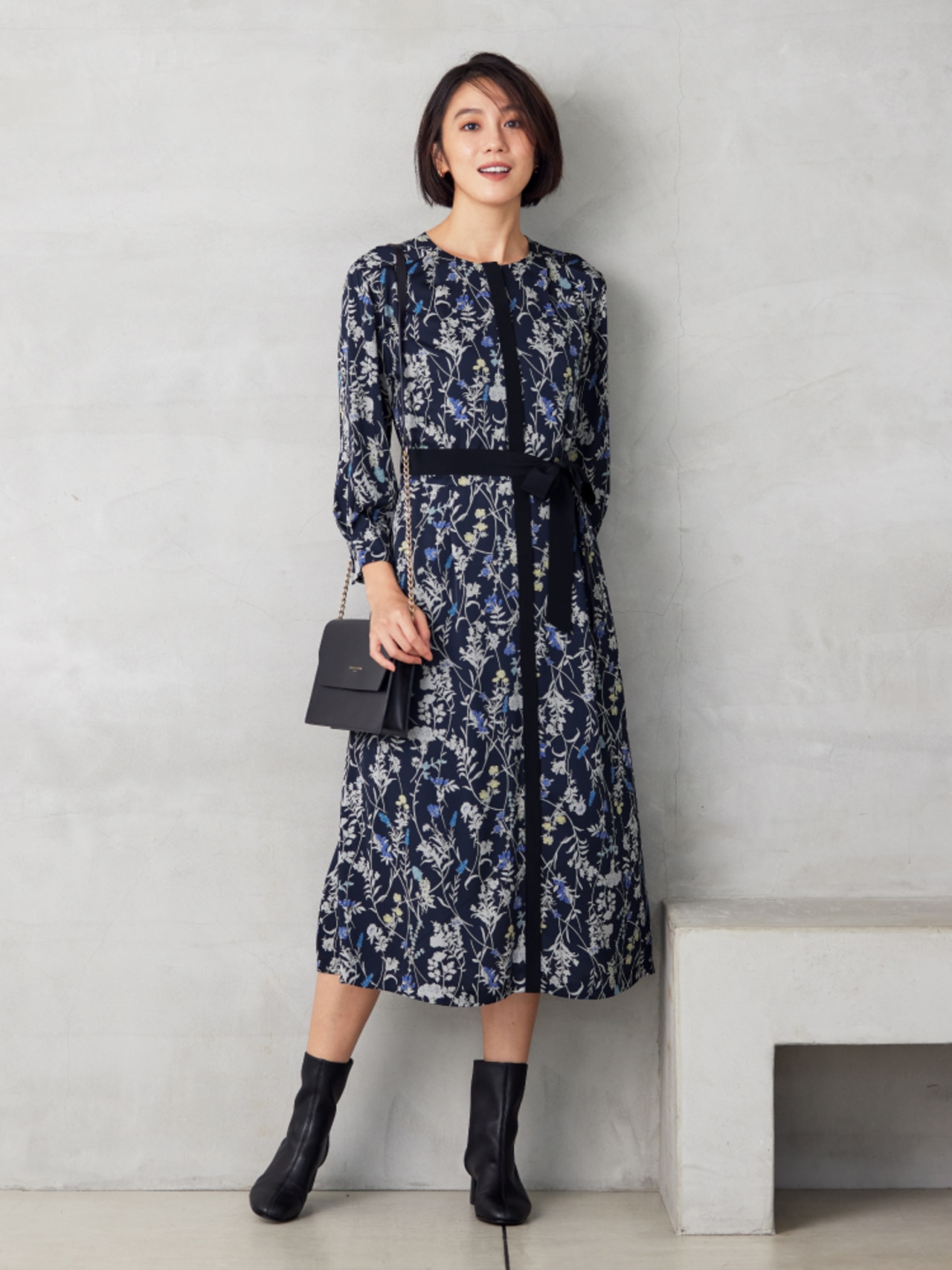 上品、華やか、コートインでも着映え力抜群の洗練ハーバルプリントワンピース。