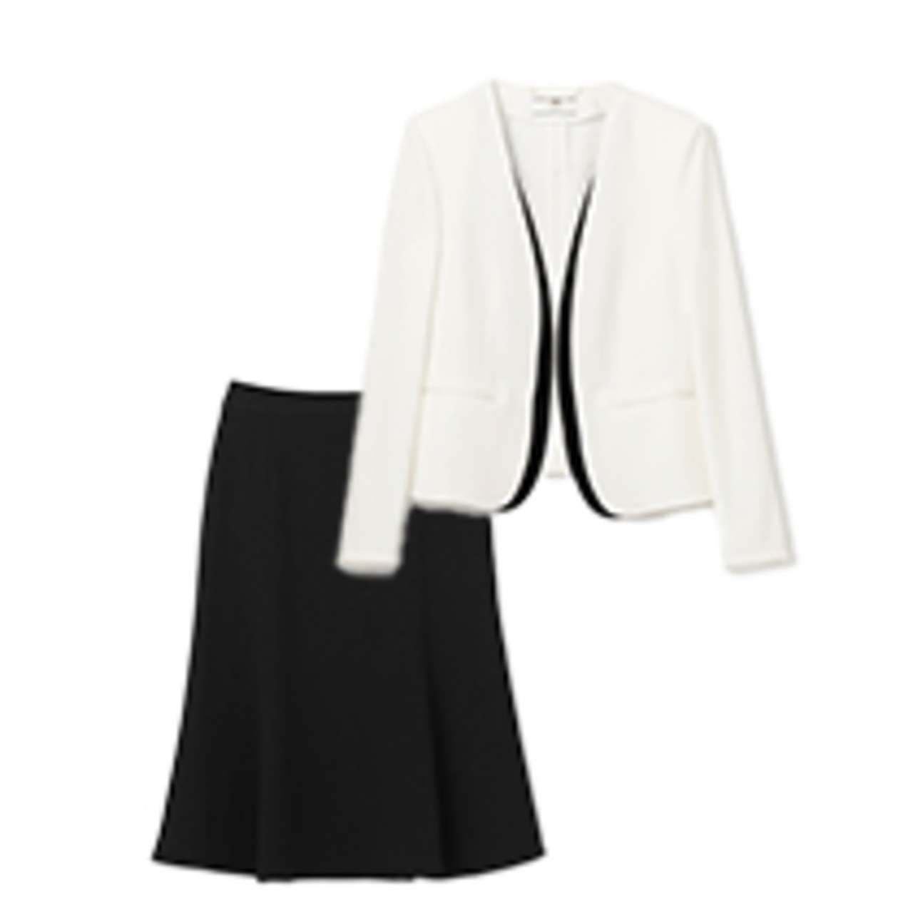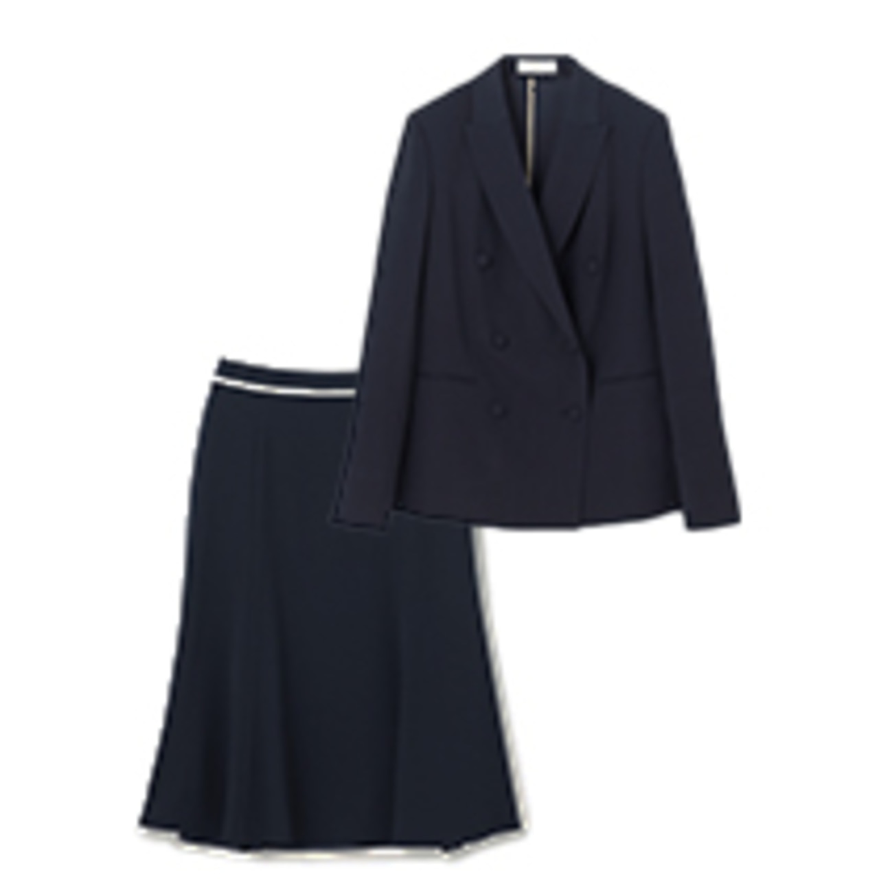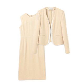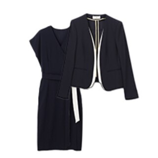特にストレッチがきいているジャケットは、ストレスフリーでしわになりずらく、ワードローブに準備しておけば茶会や観劇など、大人の社交シーンに自信をもって着まわせます。ノーカラーのジャケットは、着回しがしやすいのもポイント。