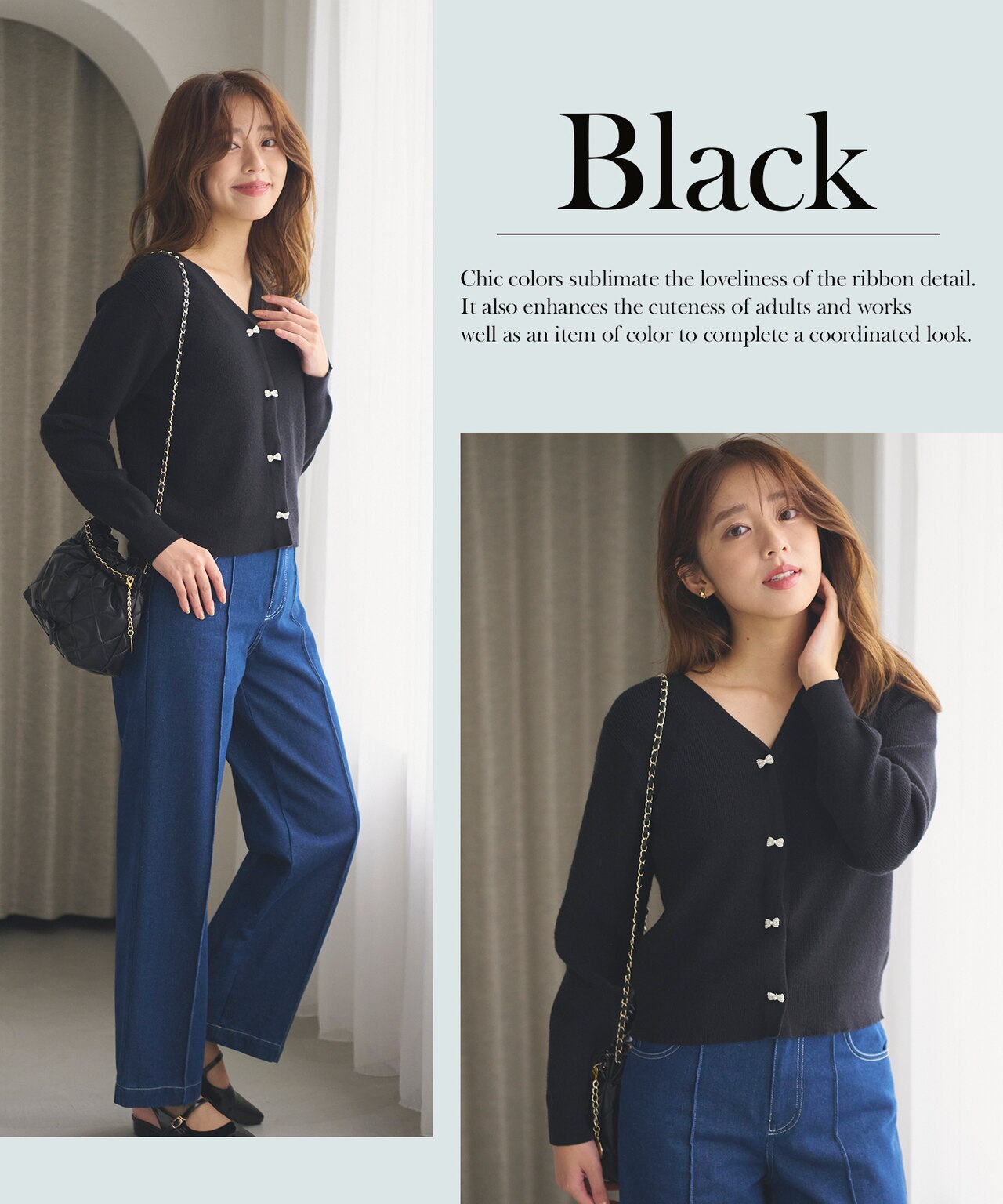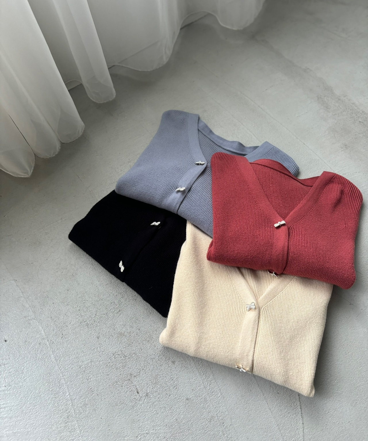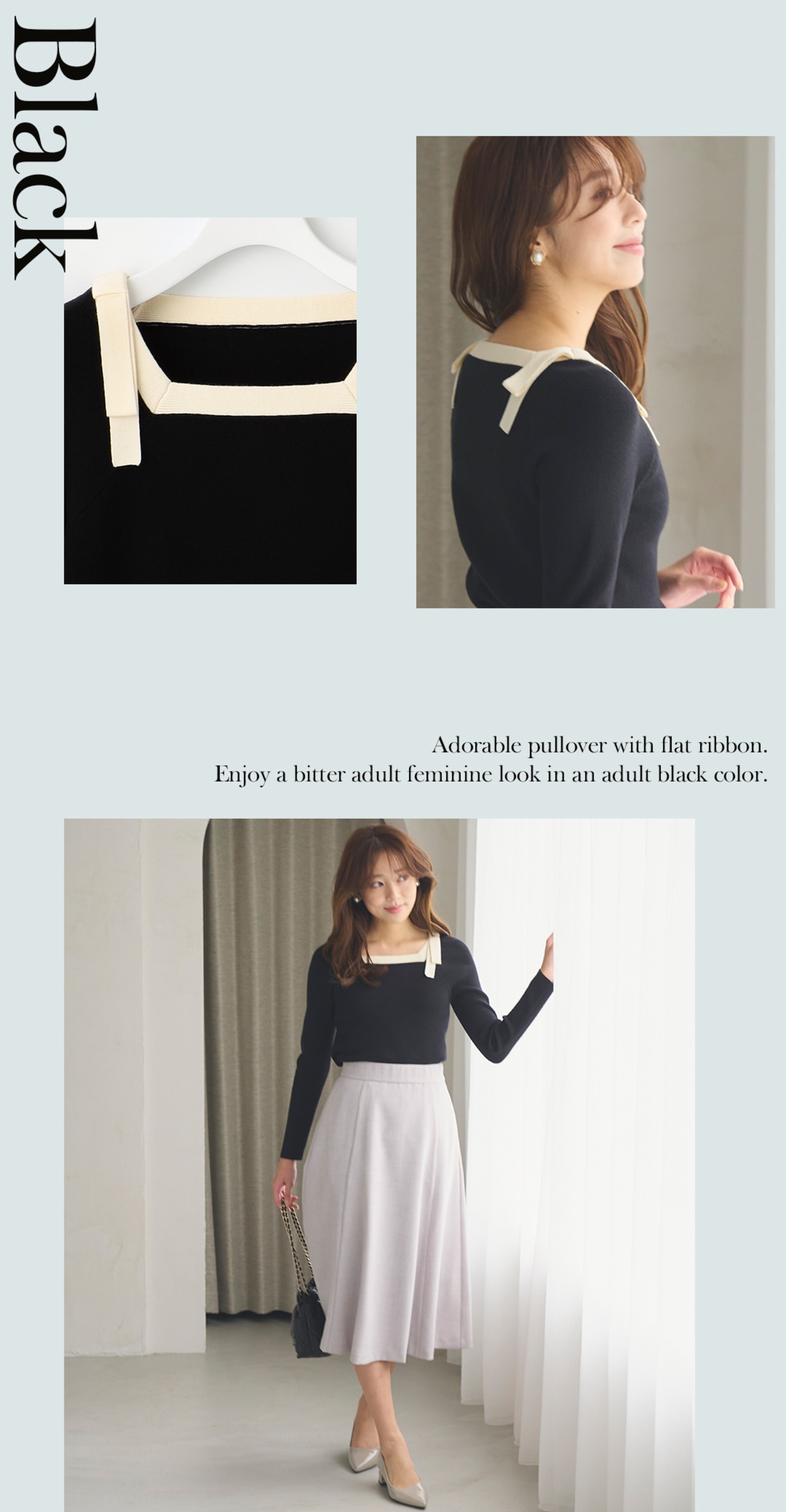 控えめな甘さのリボンデザインニット。