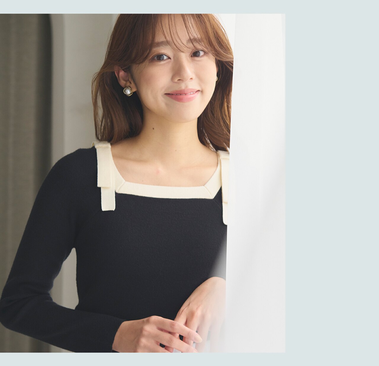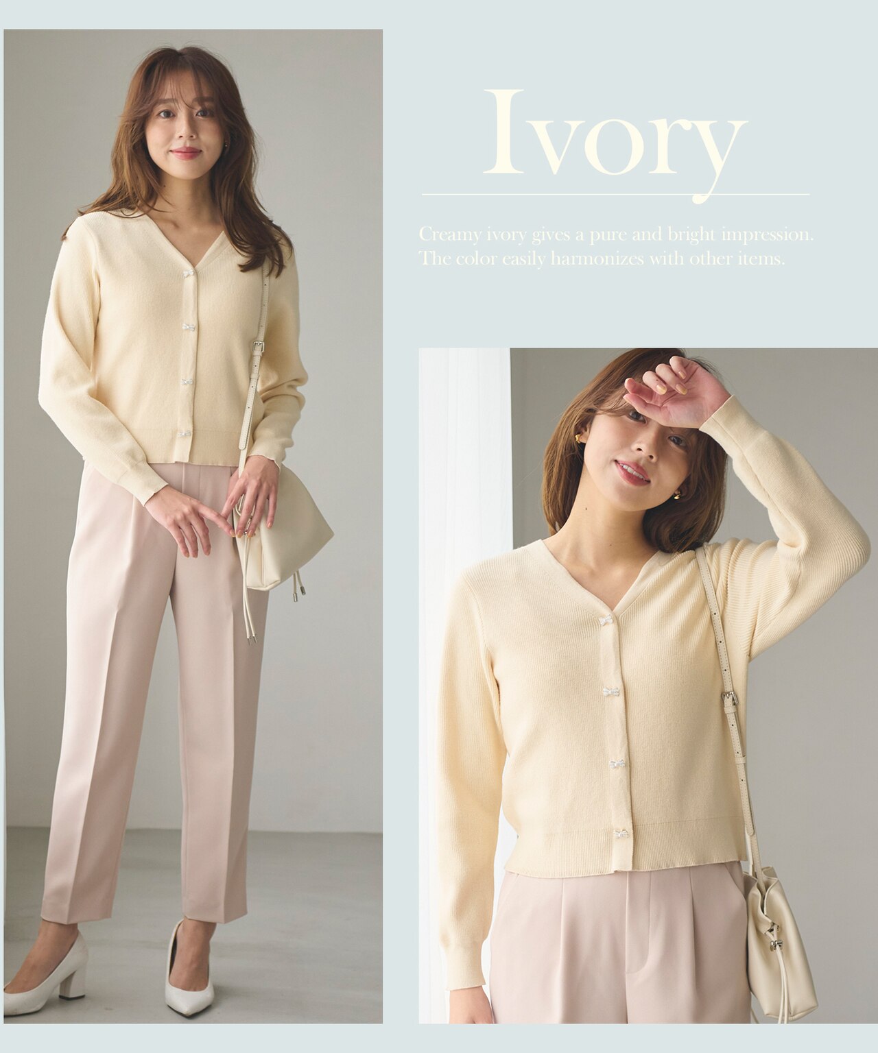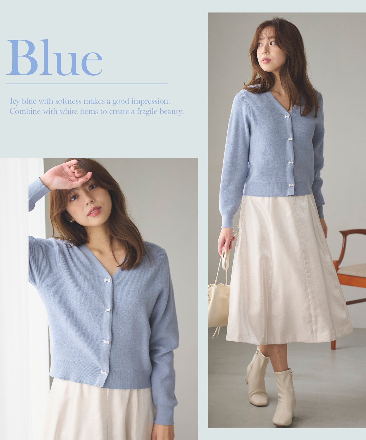 控えめな甘さのリボンデザインニット。