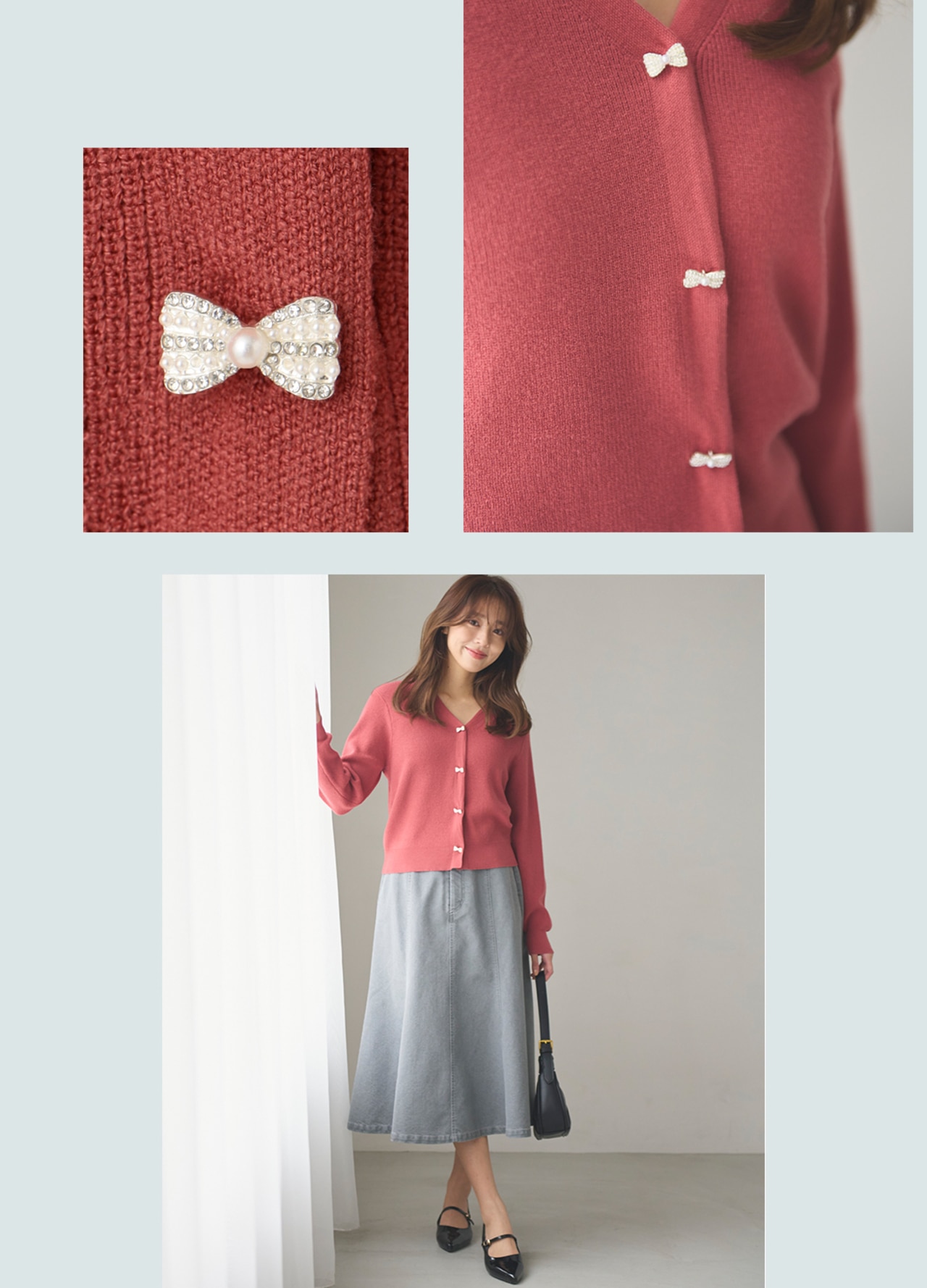 - 【洗える】リボン釦 カーディガンデザインニット/Feroux