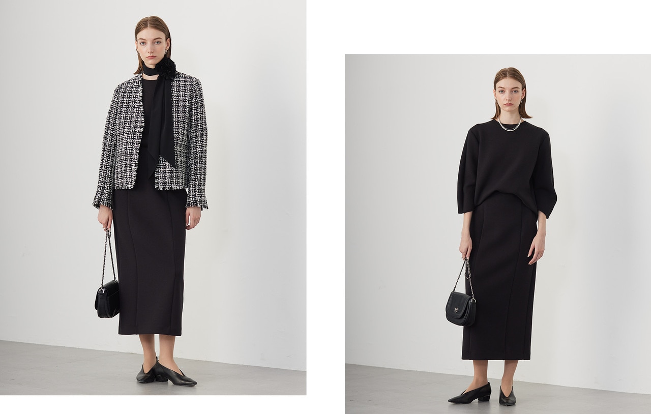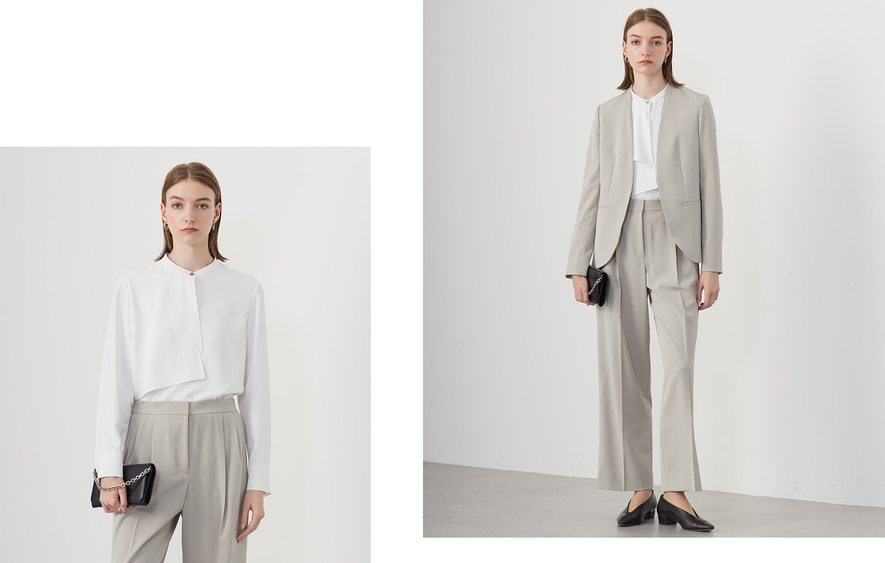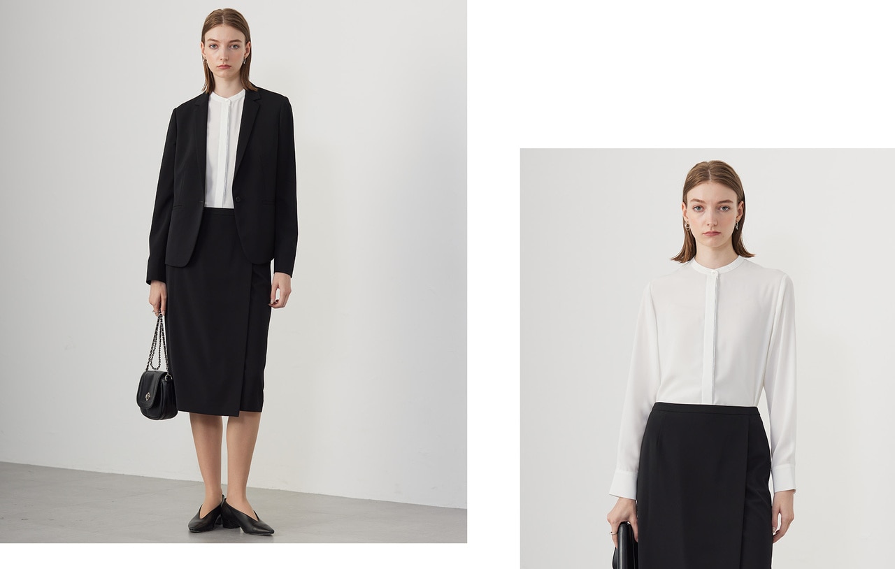 ICBの名品スーツ、Fied(ファイド)。美シルエットながら、圧倒的な着心地の良さが魅力の人気シリーズです。今季は定番のジャケットセットアップに加え、デザインを効かせたブラウスやワンピースを展開。セレモニーシーンからお仕事まで、幅広く活躍します。