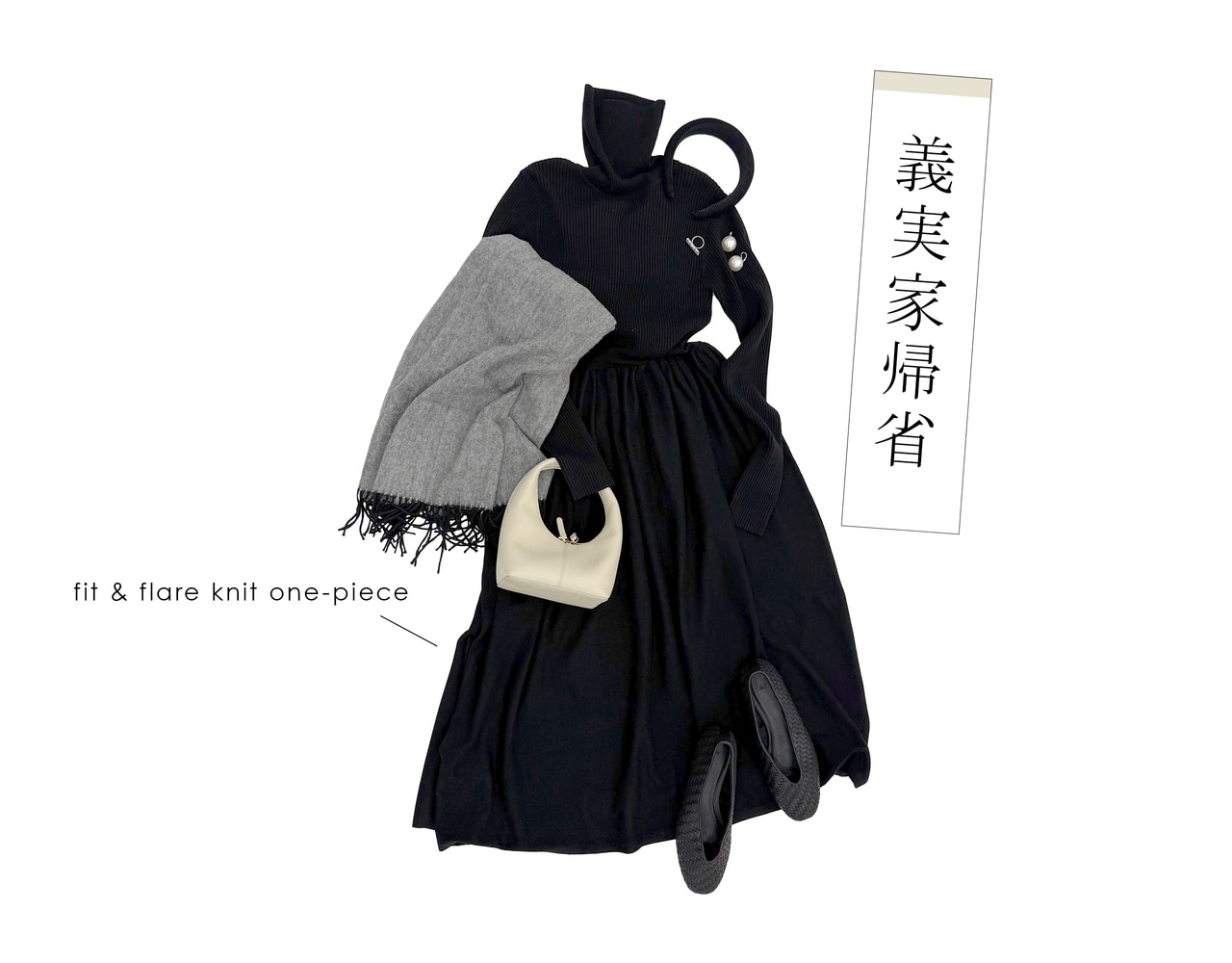【カシミヤ混】〈花乃まりあさんコラボ〉フィット&フレアニットワンピース