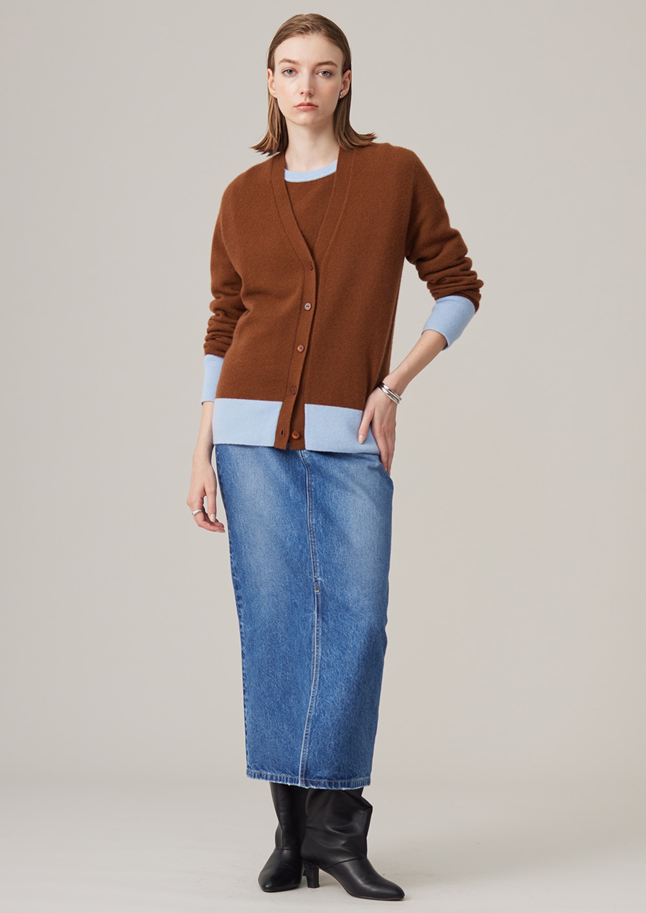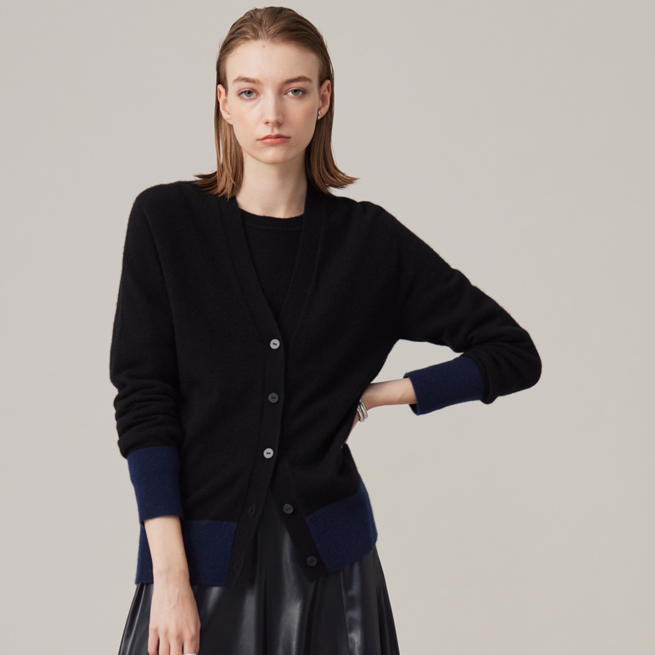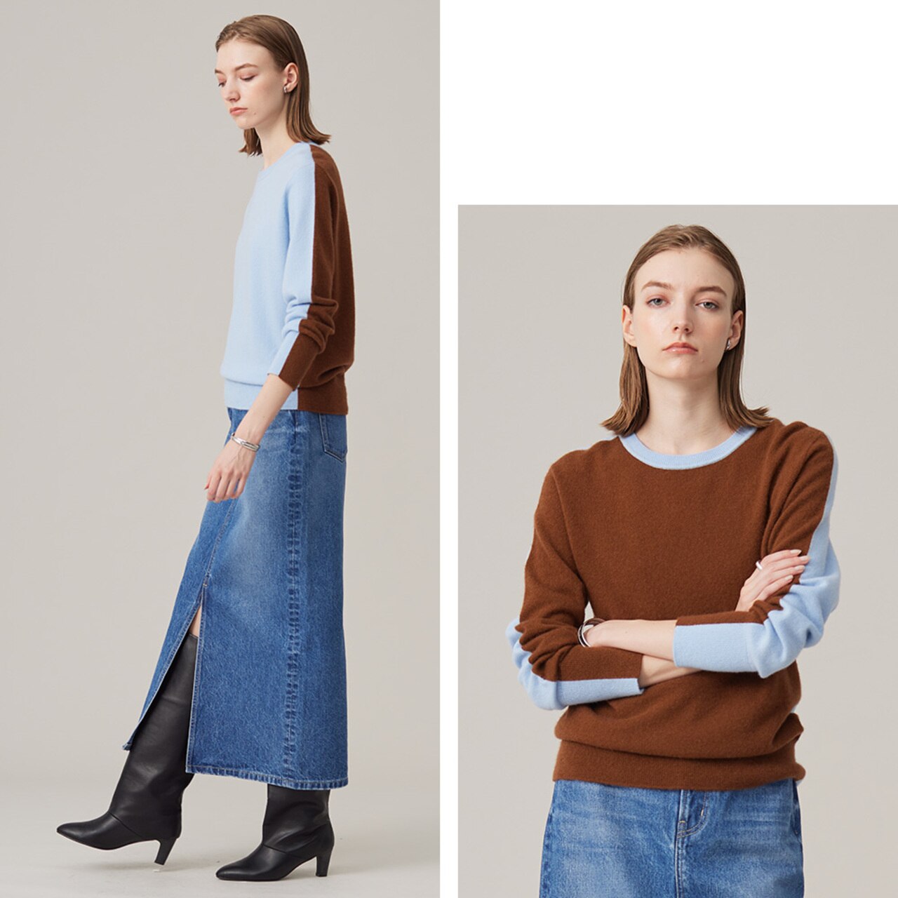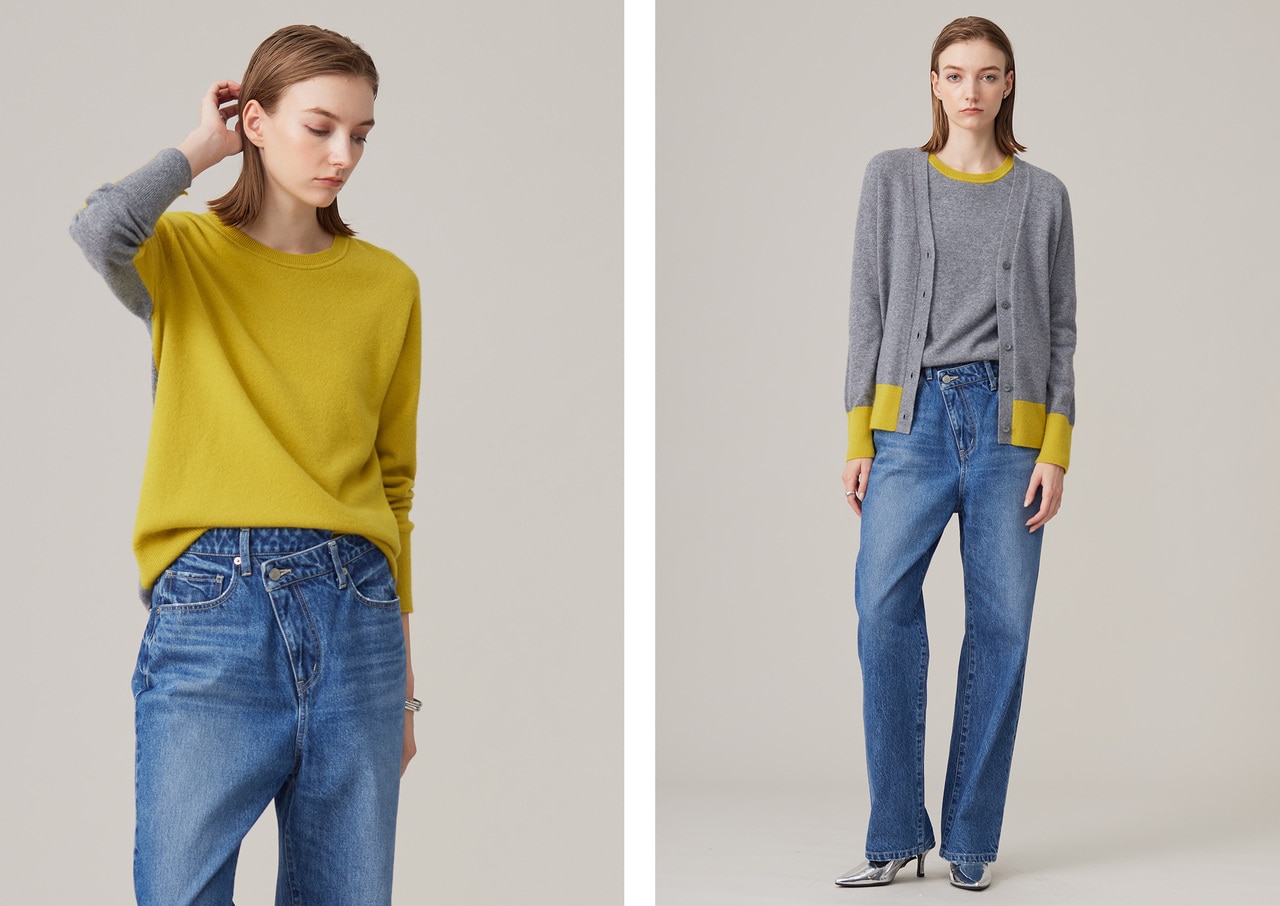 着こなしの洗練度を高める配色デザインもポイントで、前後着用可能なプルオーバーとカーディガンの2型展開です。
