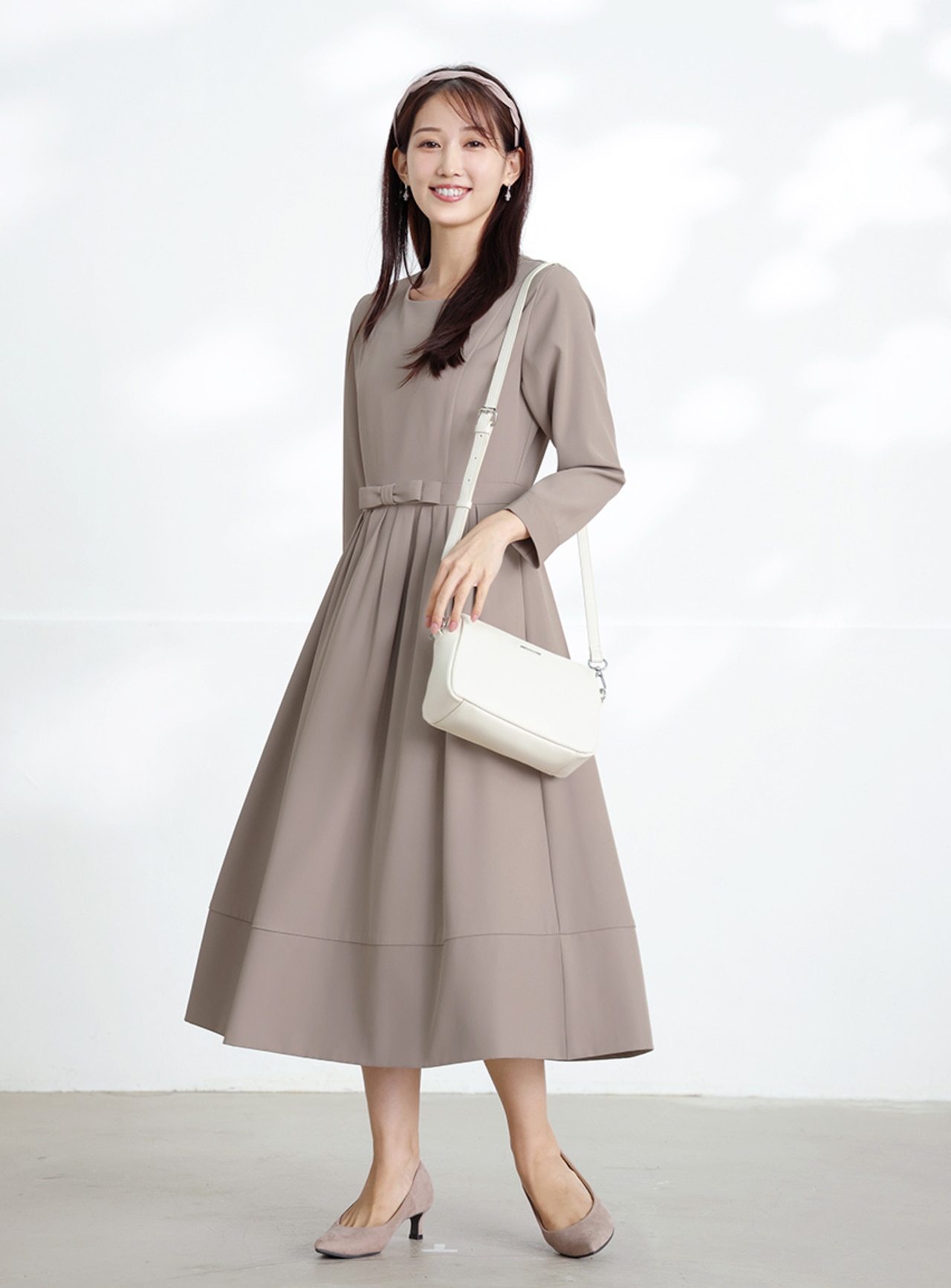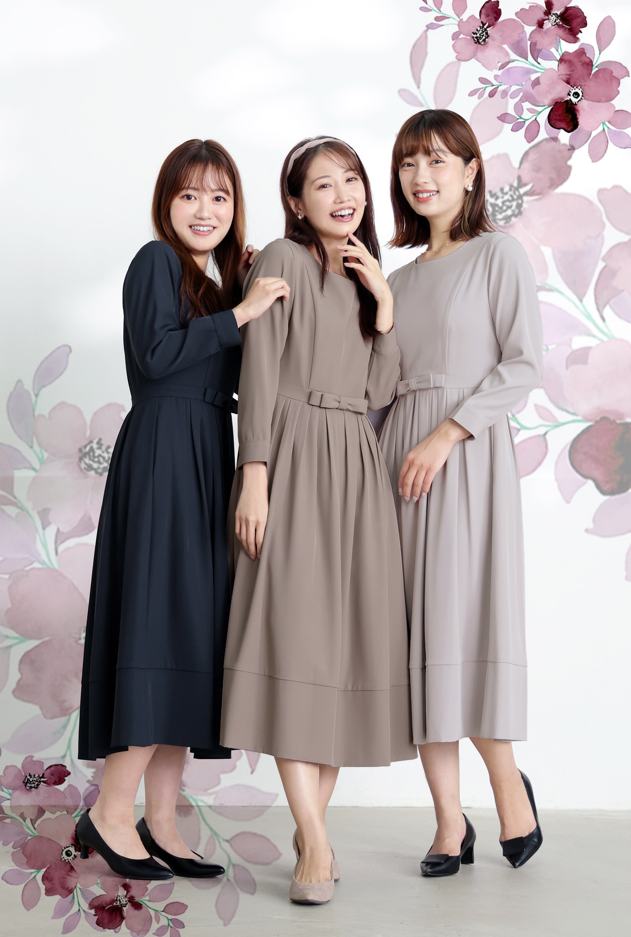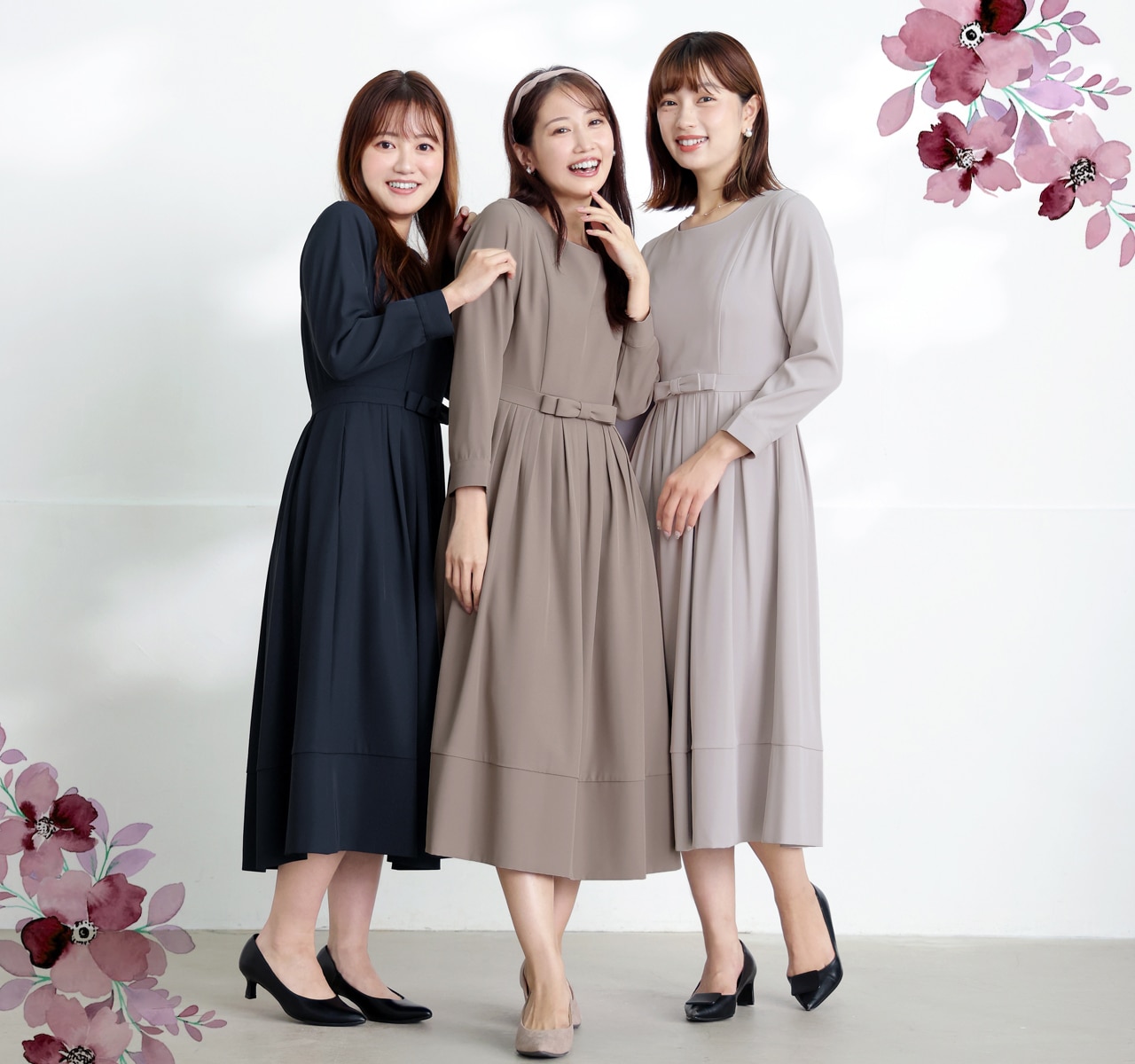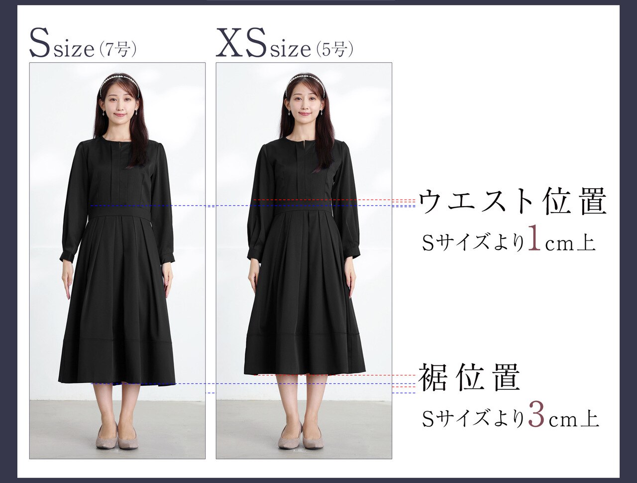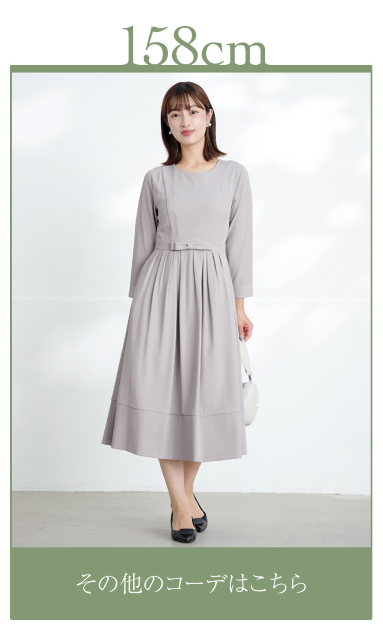 こちらも小柄さん専用サイズが登場。ウエストリボンの位置と裾位置が上がることで、足長効果やスカートのフレア感がより伝わり、軽やかな印象に。