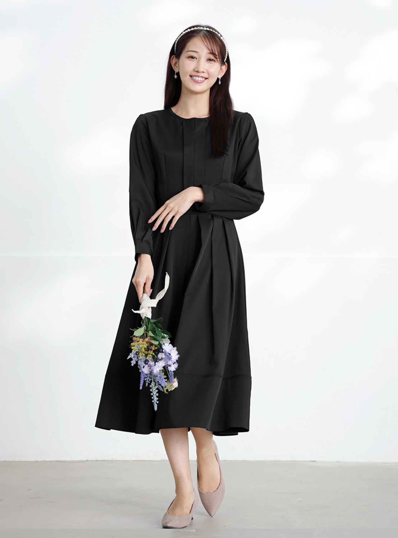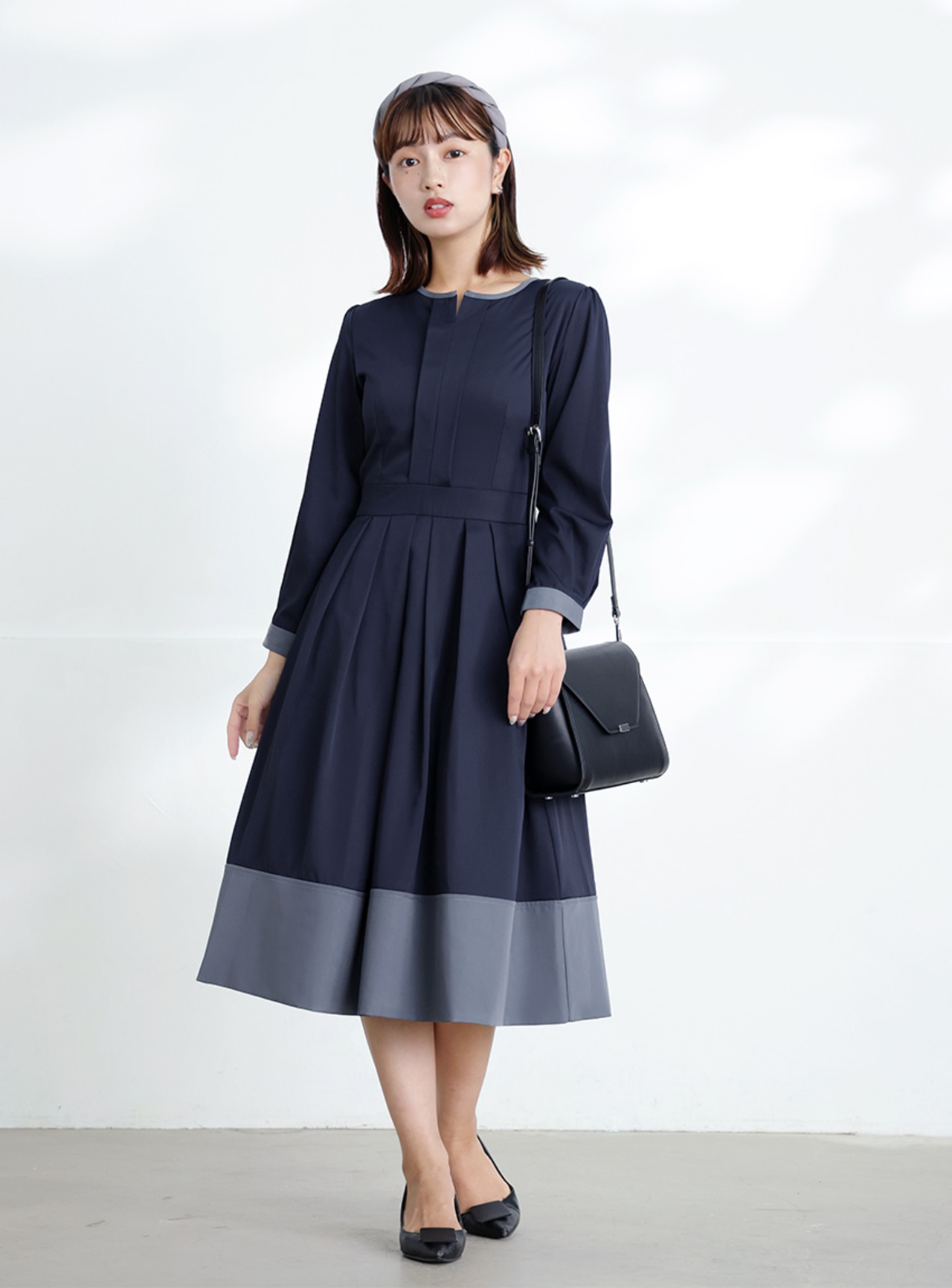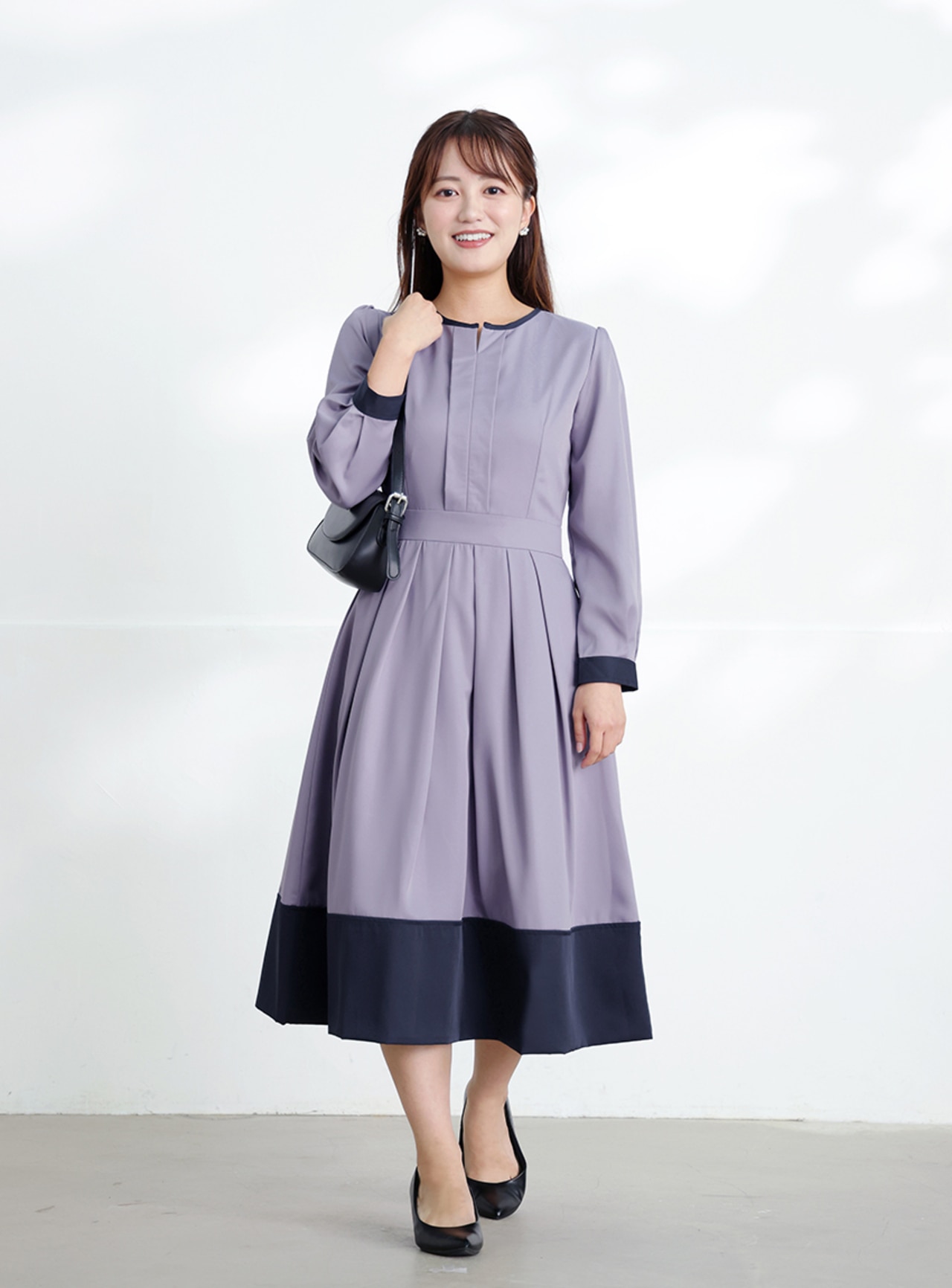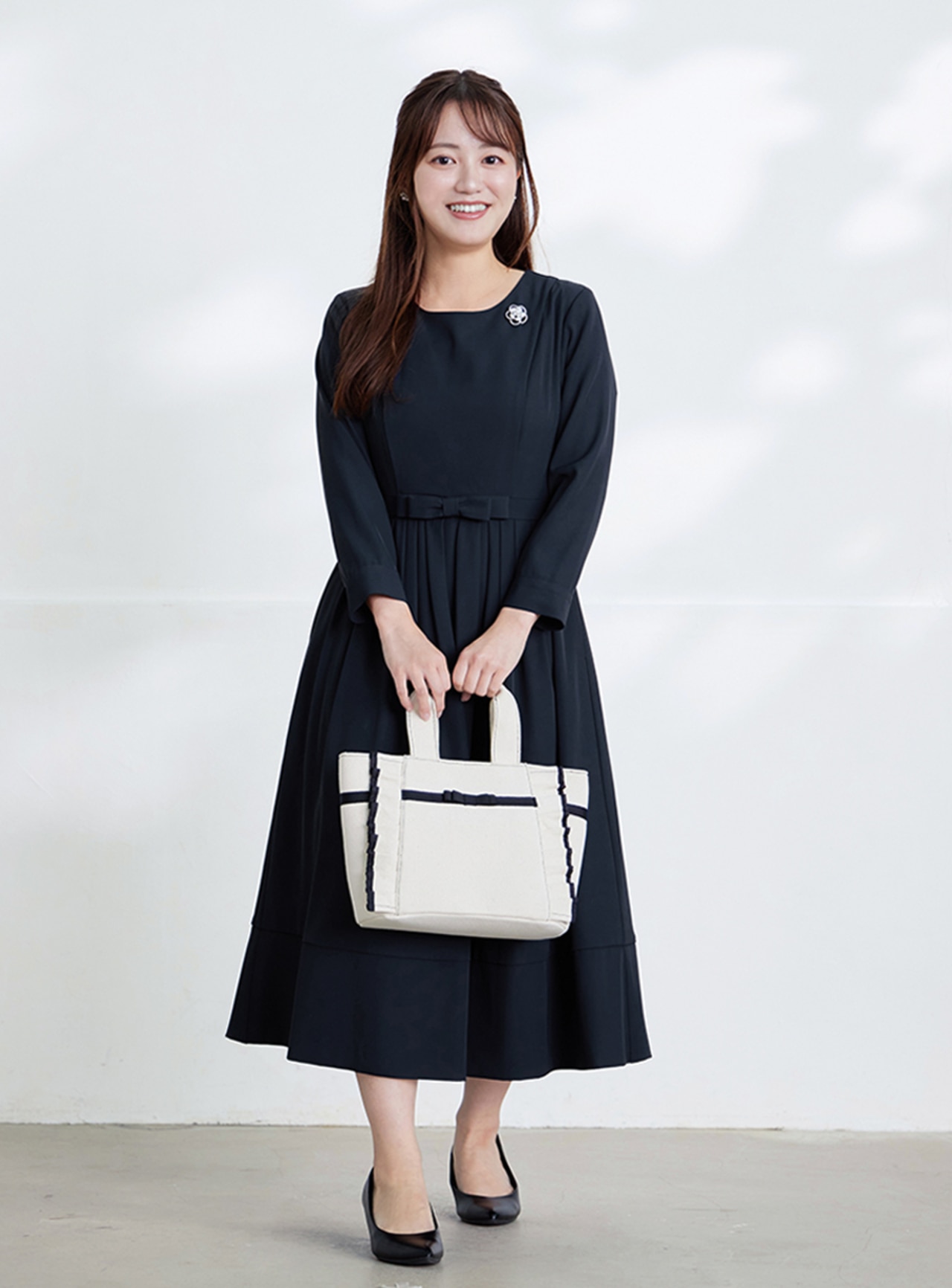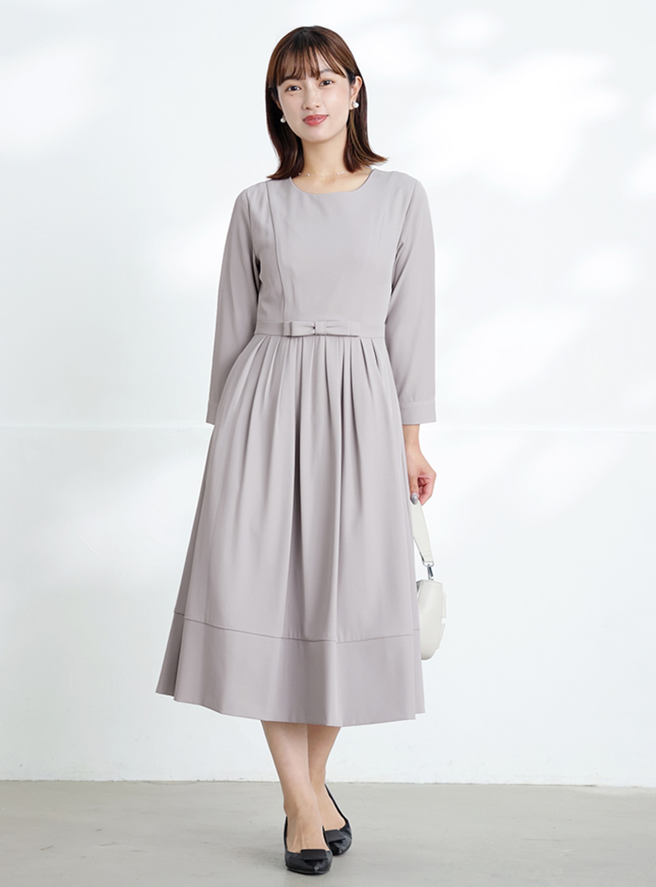 こちらも小柄さん専用サイズが登場。ウエストリボンの位置と裾位置が上がることで、足長効果やスカートのフレア感がより伝わり、軽やかな印象に。