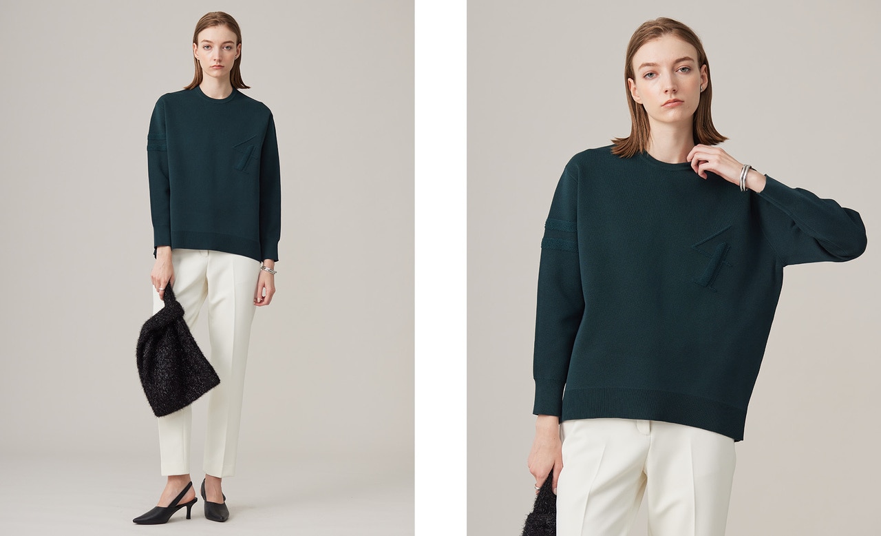 どんなボトムとも合わせやすい、着回し力の高さもポイントです。