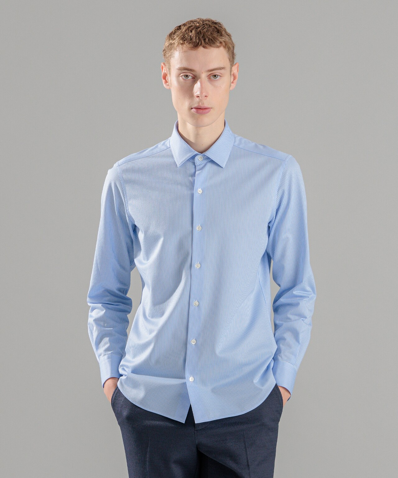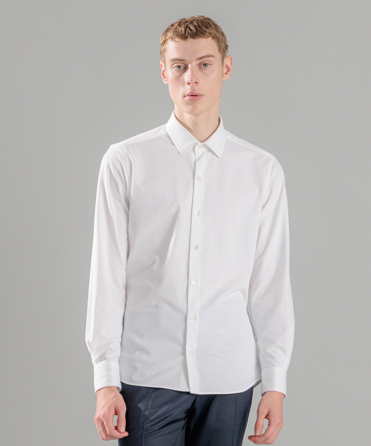 織物のような見た目でまさかジャージー素材とは!と驚くほど。見た目以上の着心地でシャツにストレスを感じない。これからのシャツはジャージーシャツがいい!