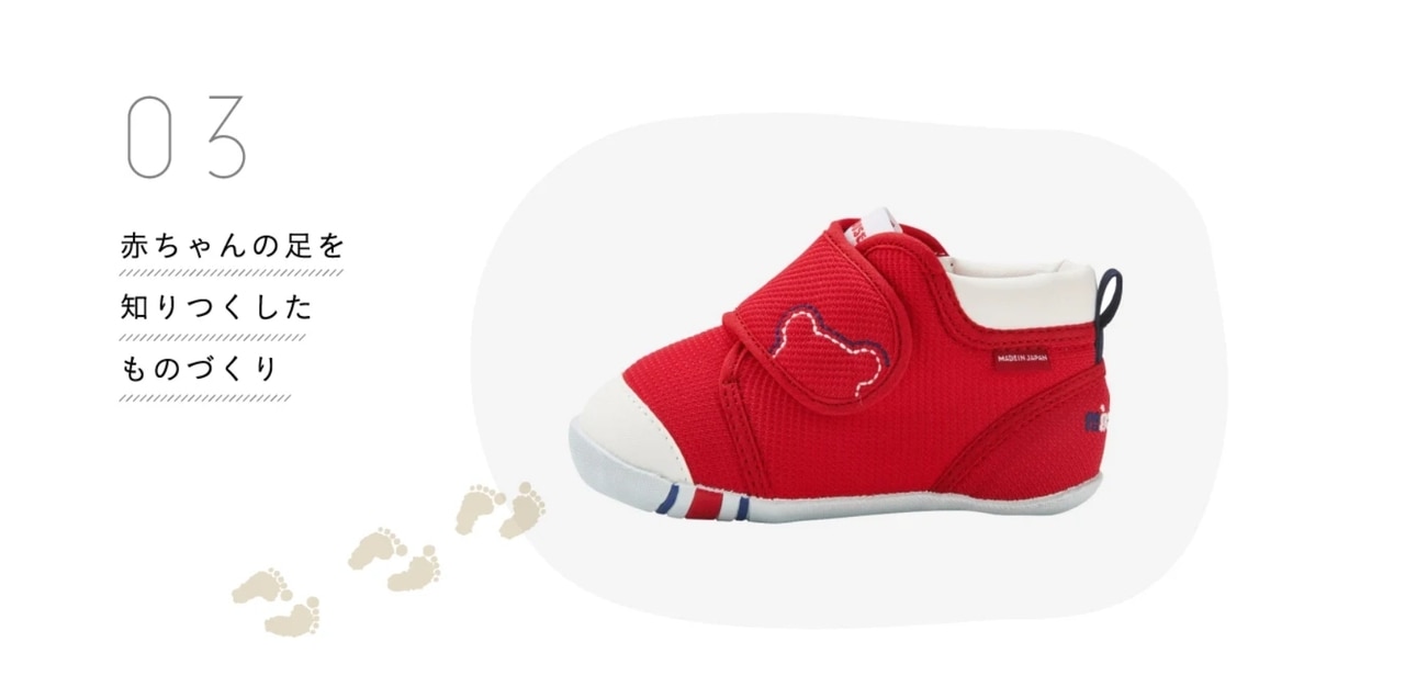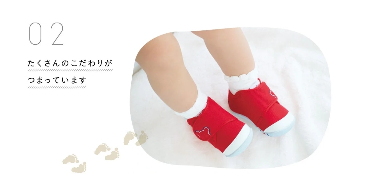 かわいらしい小さなくつ、ひとつひとつに健やかな発育のための工夫と愛情をたっぷりとつめ込みました。