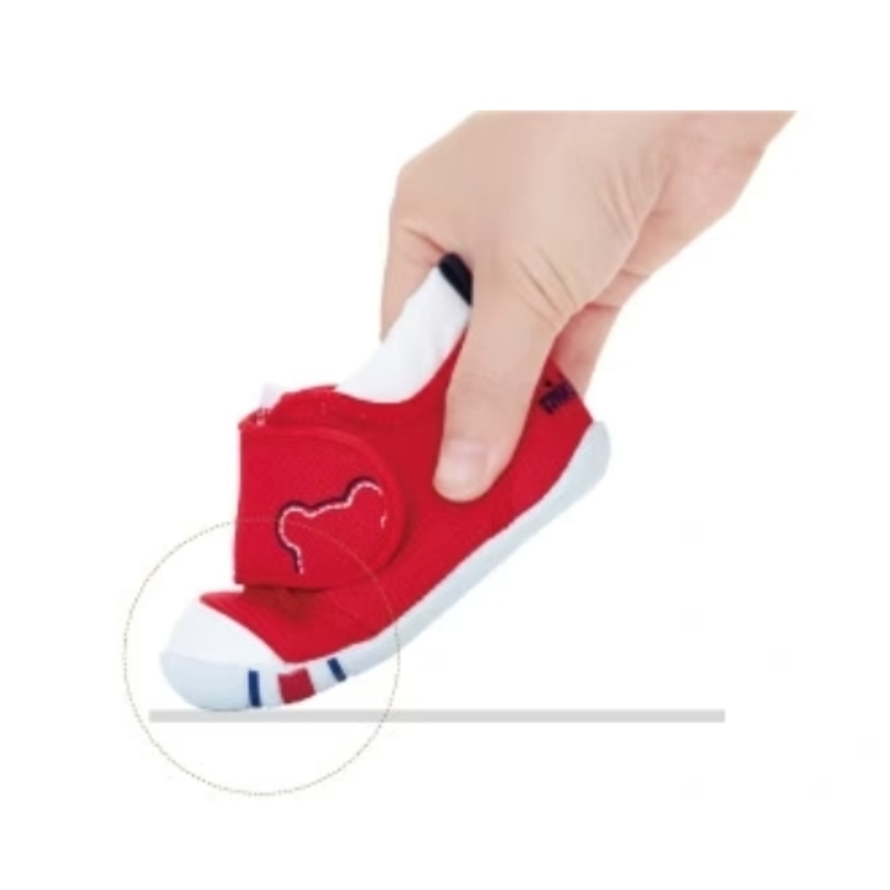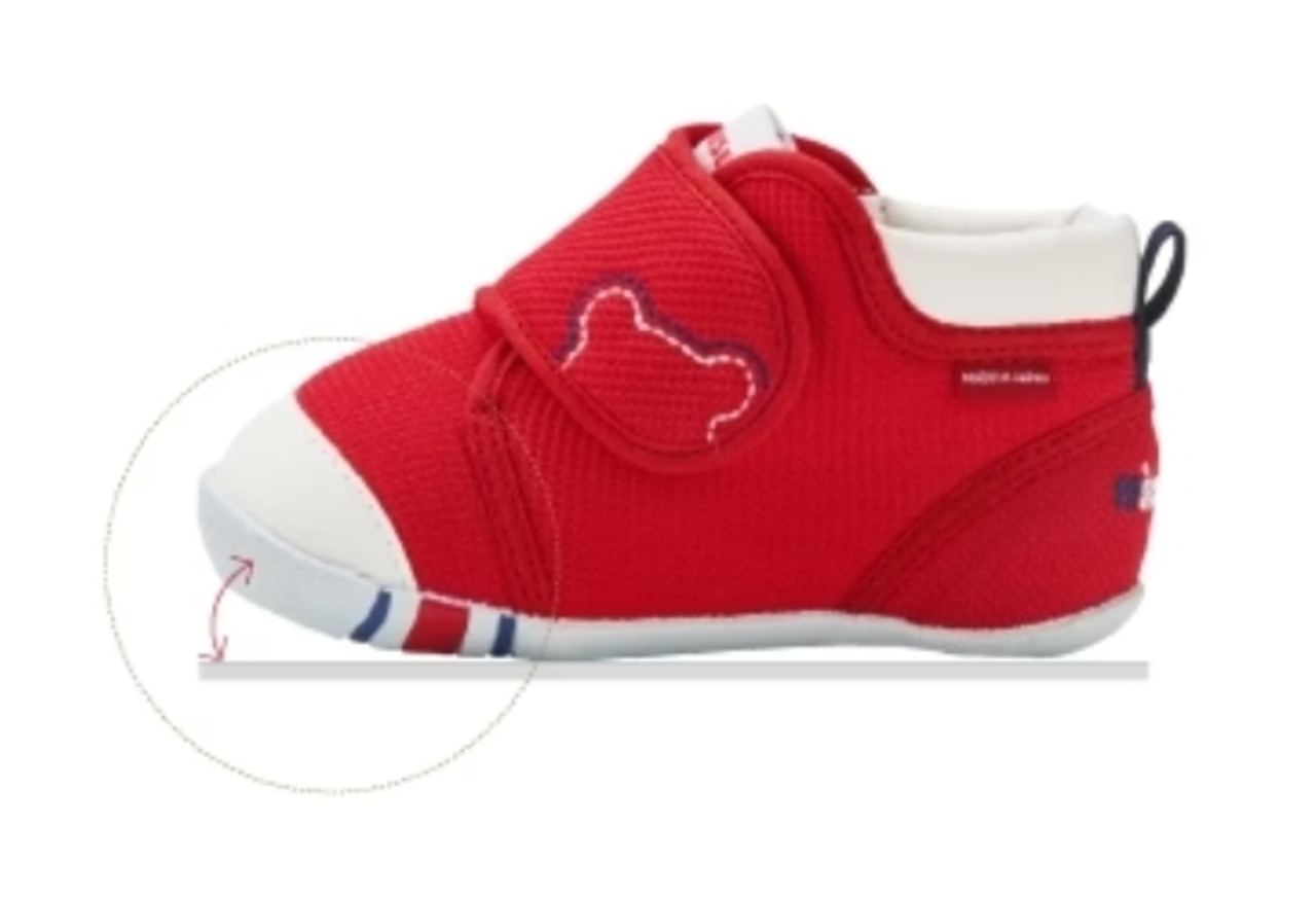 ファーストシューズは、まだまだ不安定で転びやすい赤ちゃんの歩行をしっかりサポートします。肌あたりのよい素材と設計でやさしく足を包みながら、足指を使った自然で正しい歩き方を促すシューズです。