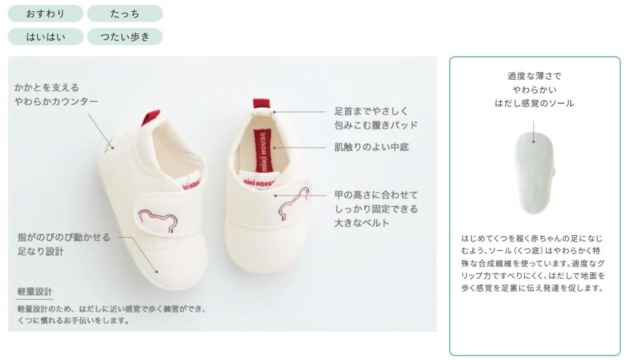 赤ちゃんの成長段階に合わせてくつを選びましょう。