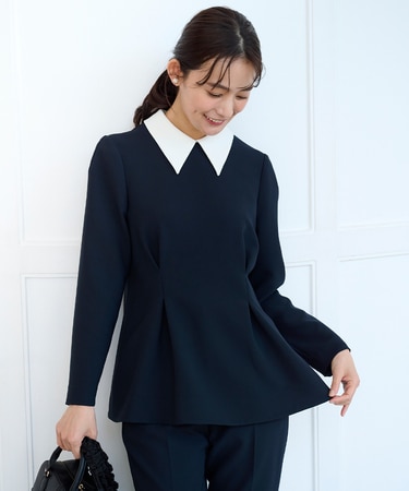 - 【KUMIKYOKU NAVY】ウーステッドライククロス フリルブラウス/組曲
