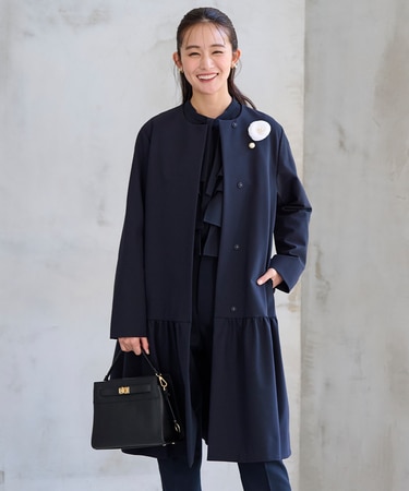 - 【KUMIKYOKU NAVY】ダブルクロスストレッチ ノーカラーコート/組曲