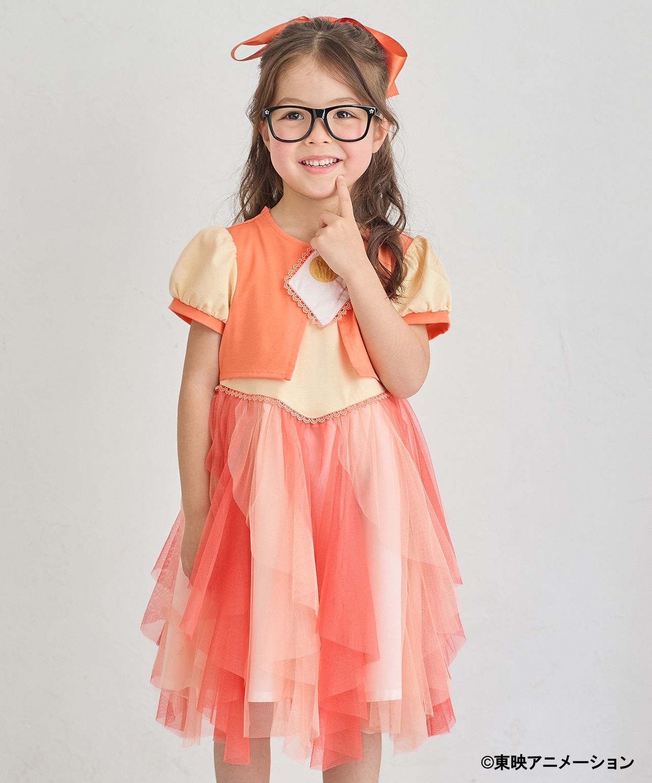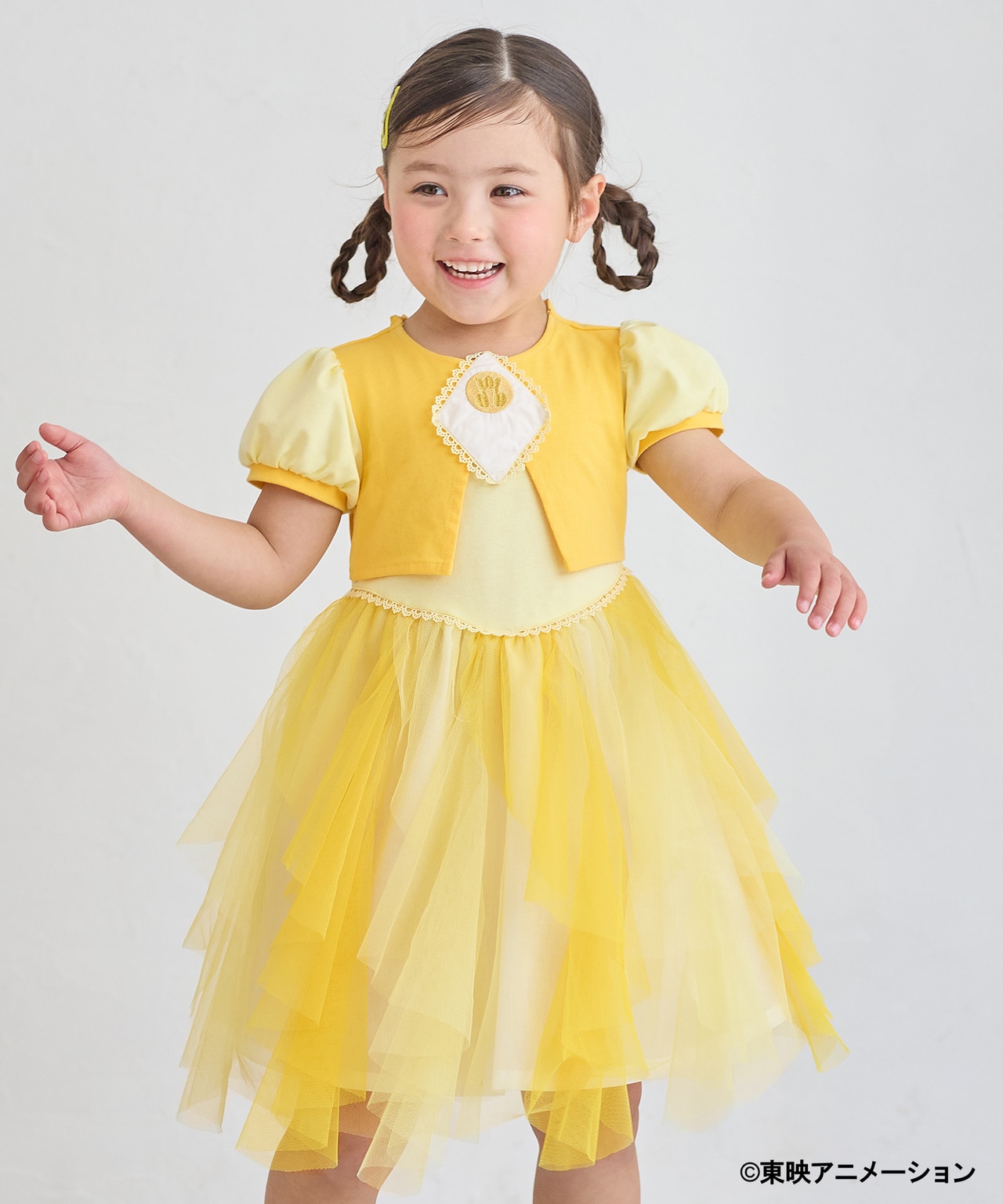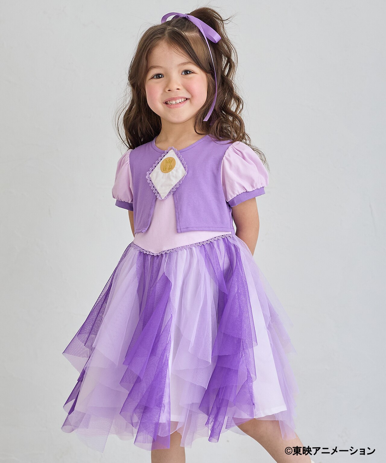 『も~っと!おジャ魔女どれみ』に登場する魔女見習い服をイメージしたワンピース。身頃はカットソー素材で動きやすく、すっぽりかぶることができるので、お着替えも楽々!
