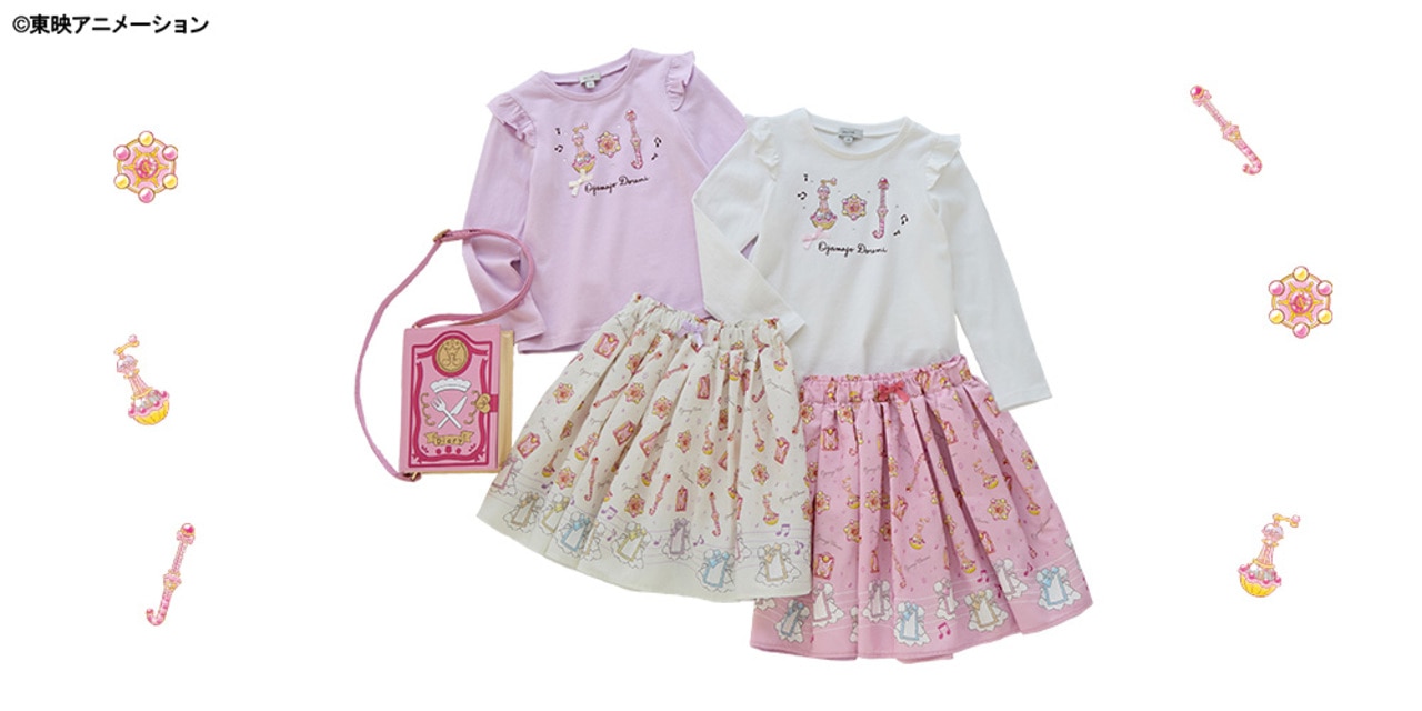 デイリーにおジャ魔女どれみコーデが楽しめる、長袖Tシャツ・スカート・ポシェット。作中に登場するアイテムが散りばめられた、コラボならではのこだわりが詰まったアイテムで毎日をもっと楽しく♪