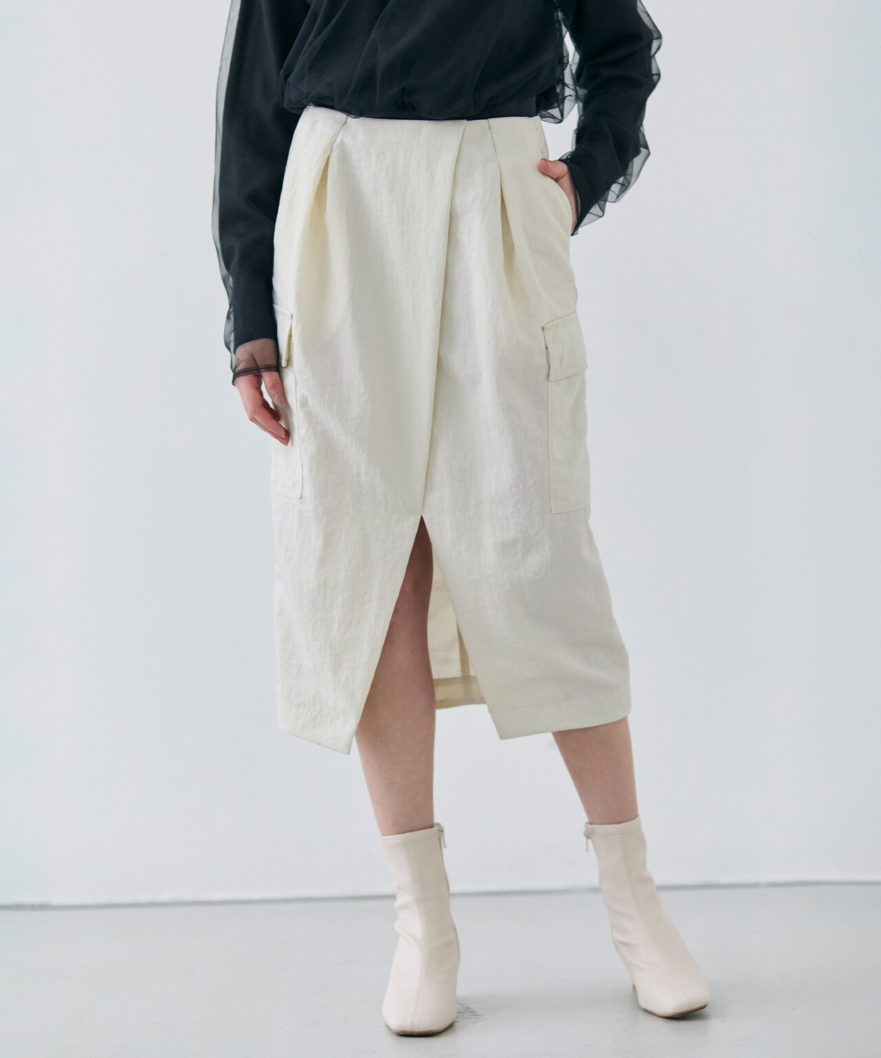 きれいめトップスや春ブーツと合わせてラフすぎない上品な着こなしに。