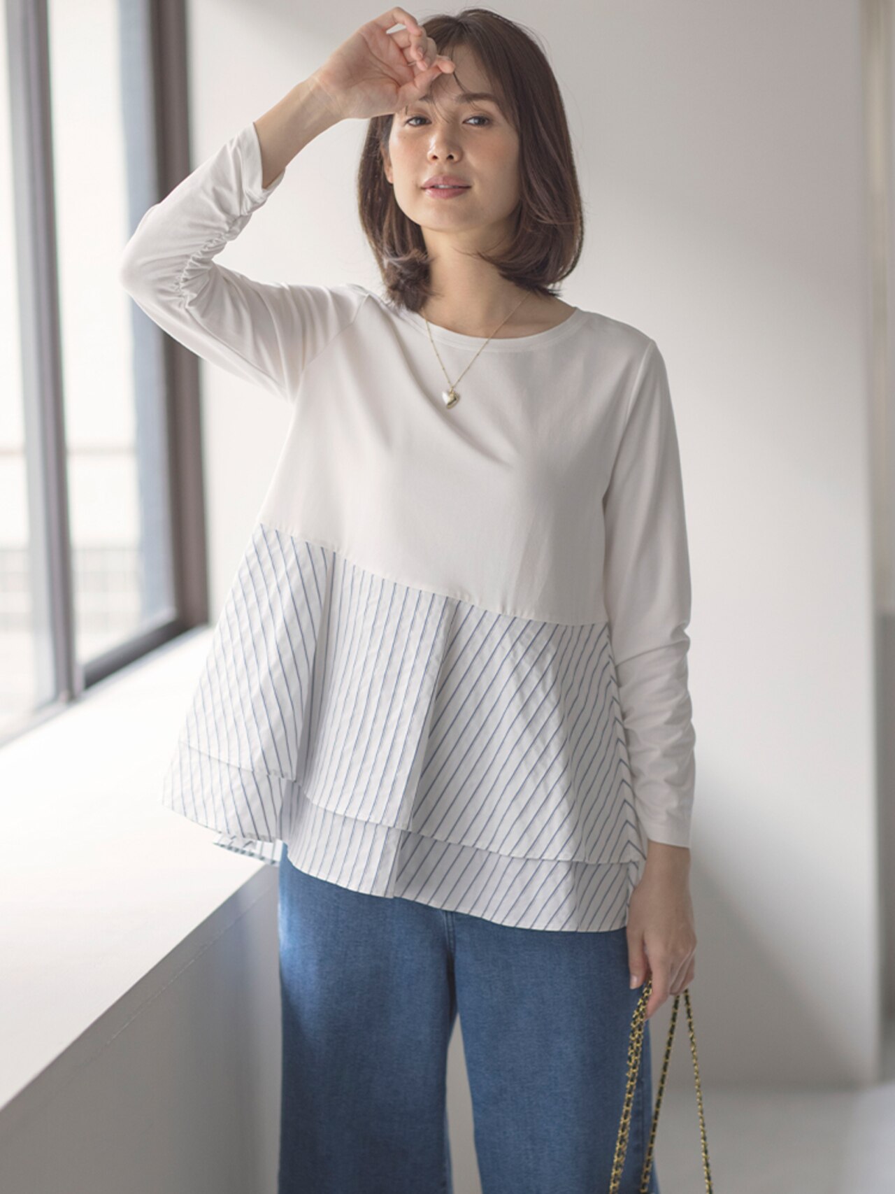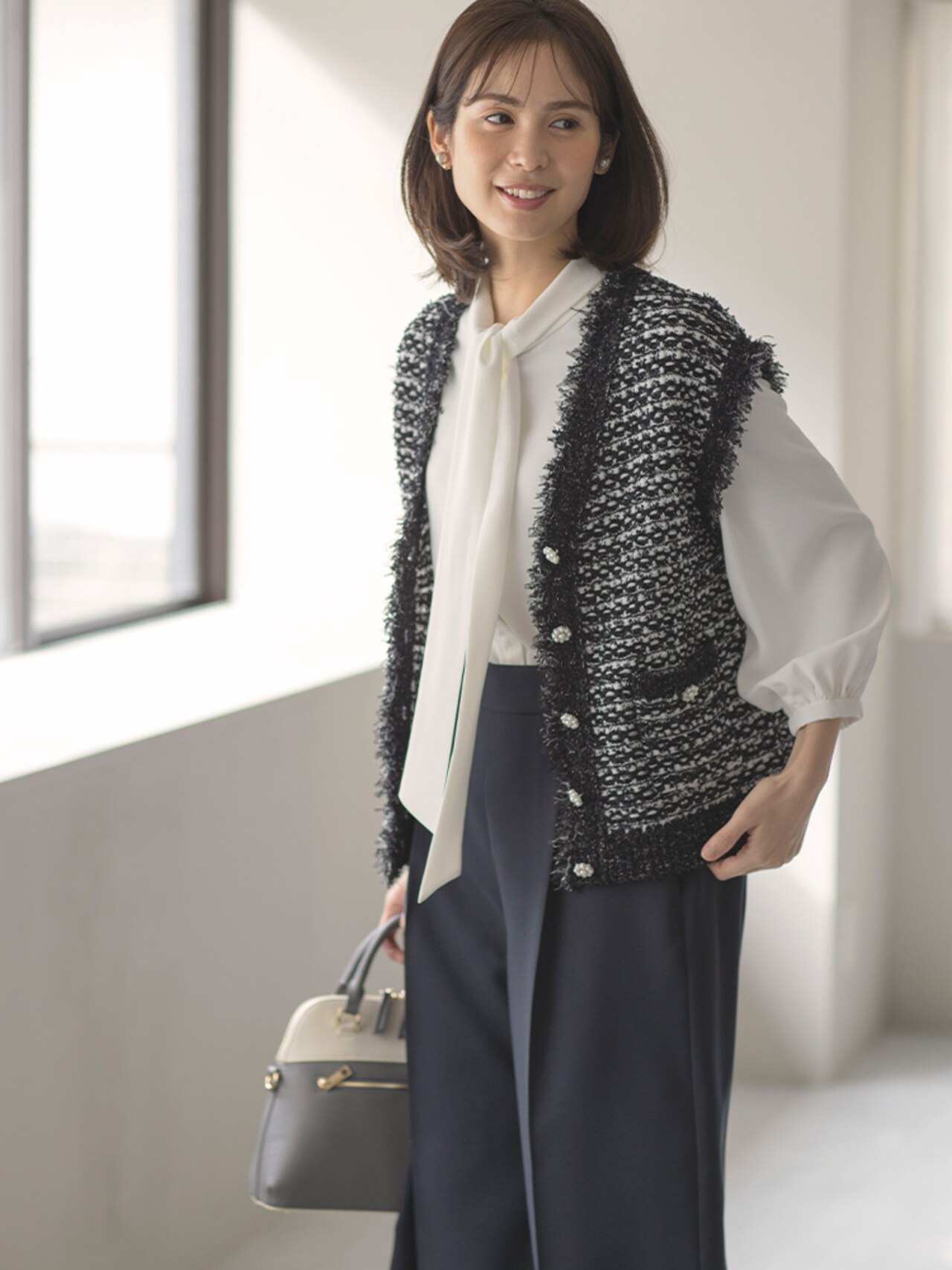 - 【KUMIKYOKU NAVY】ジョーゼットシフォン2WAY ボウタイブラウス/組曲