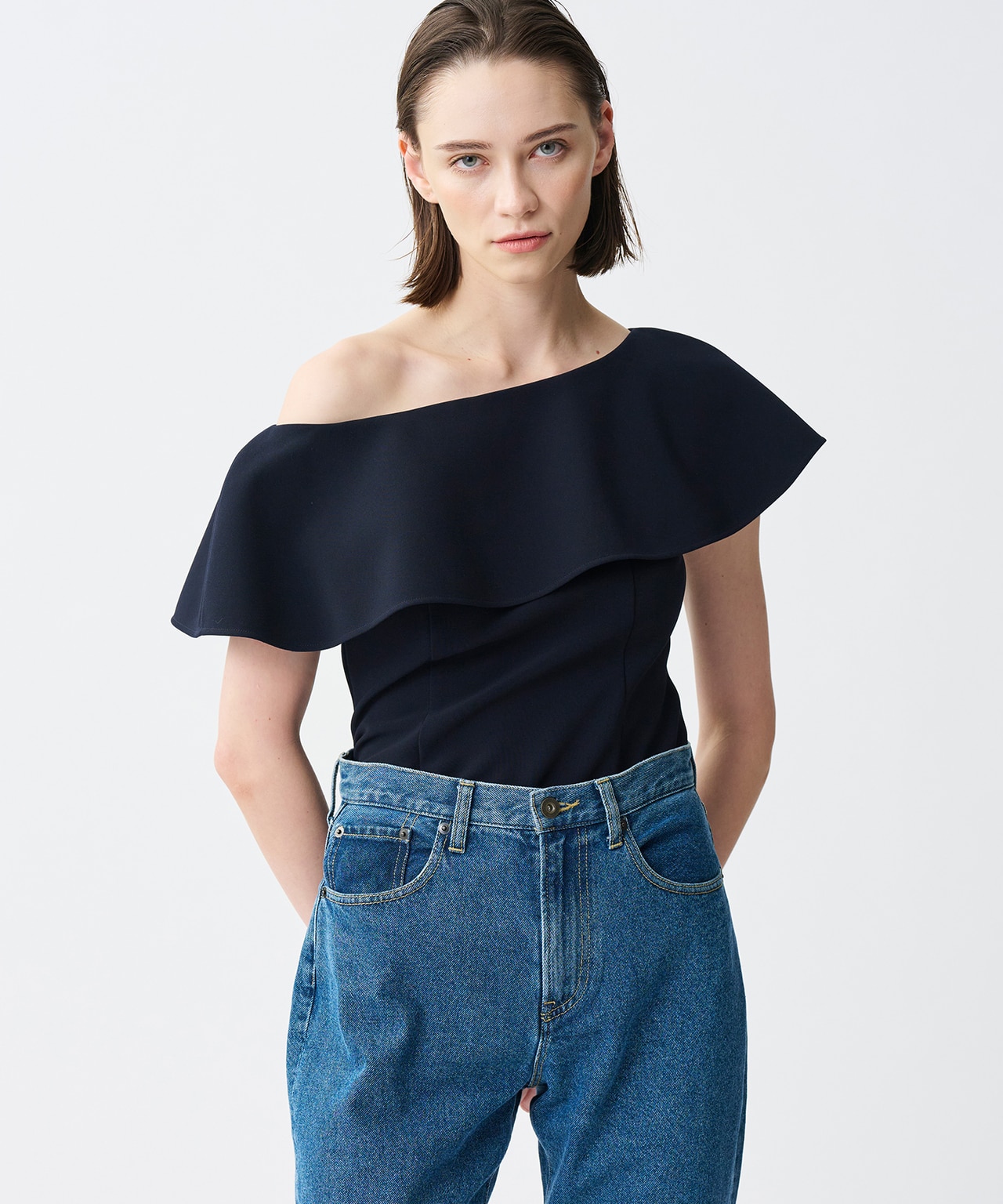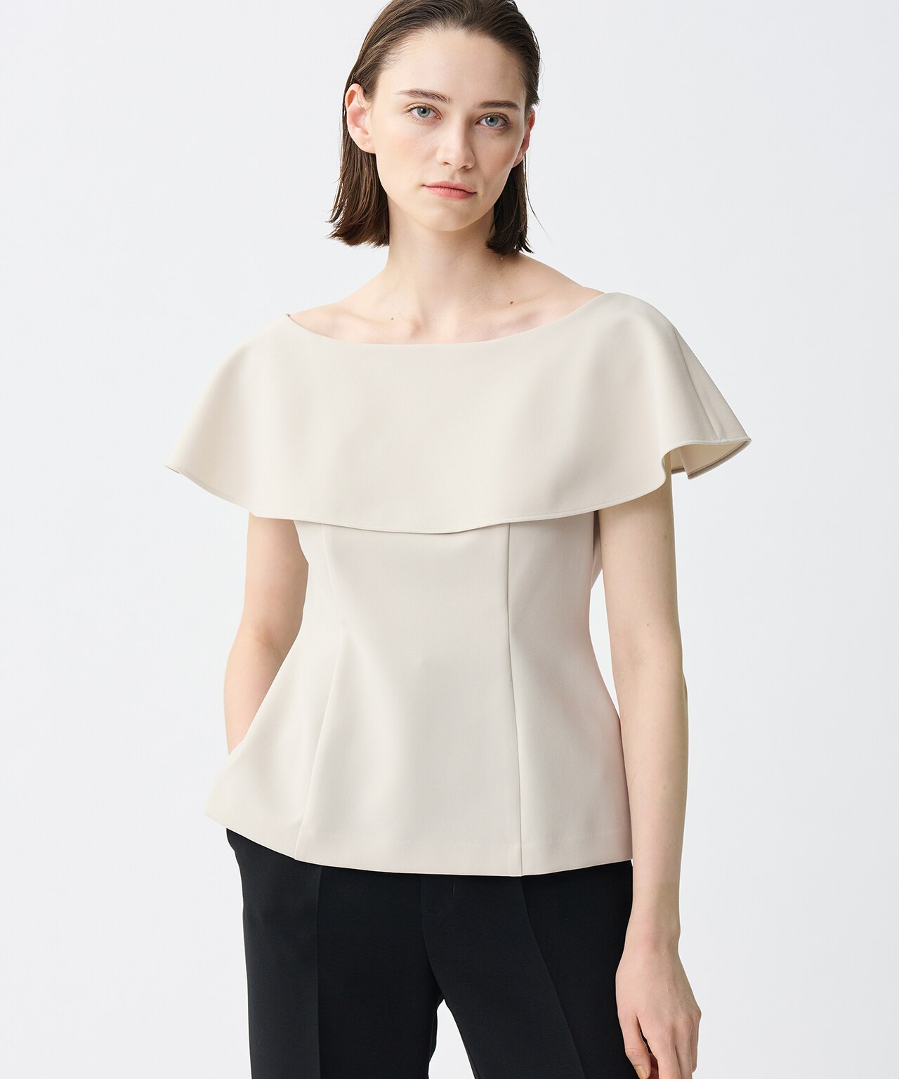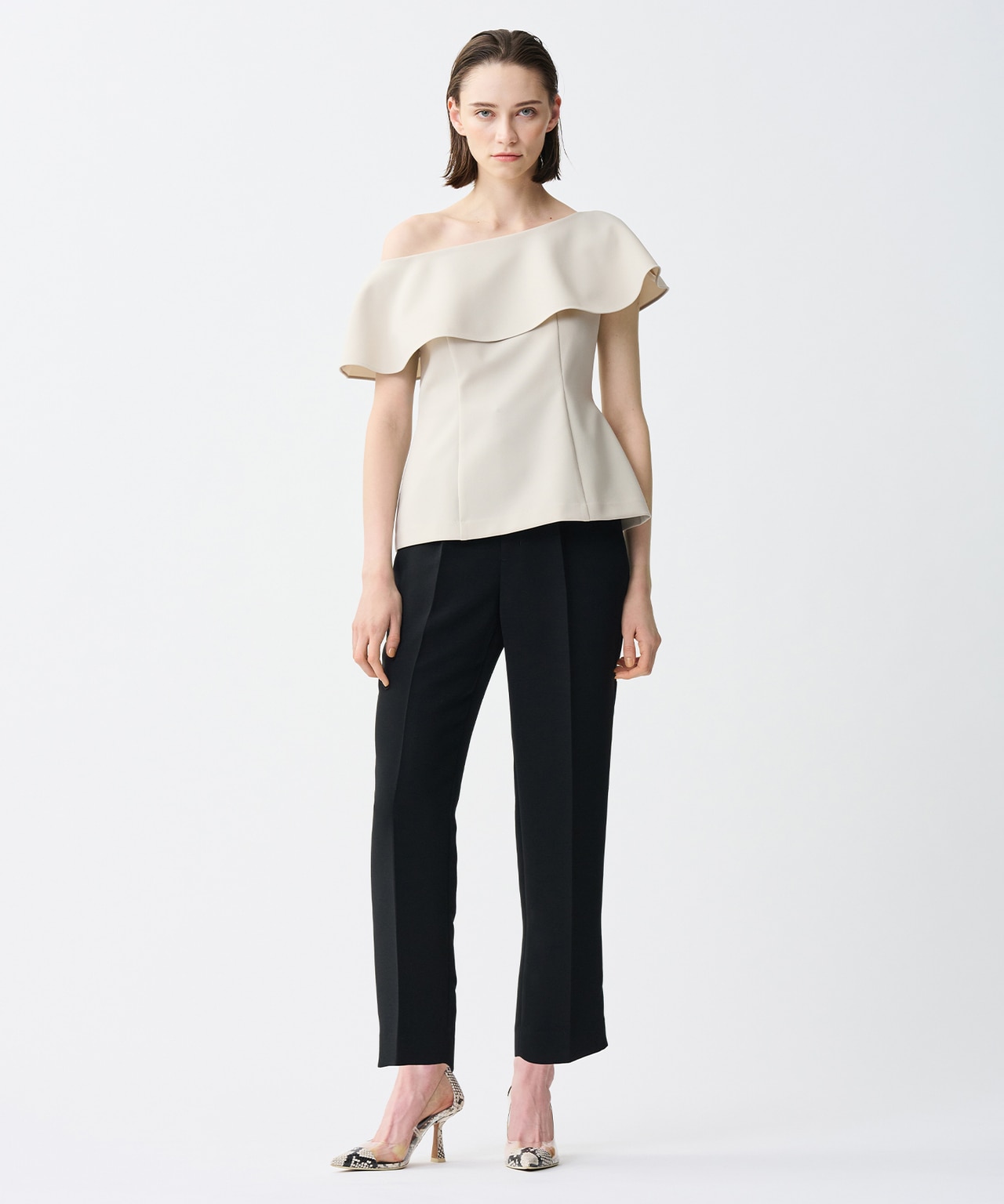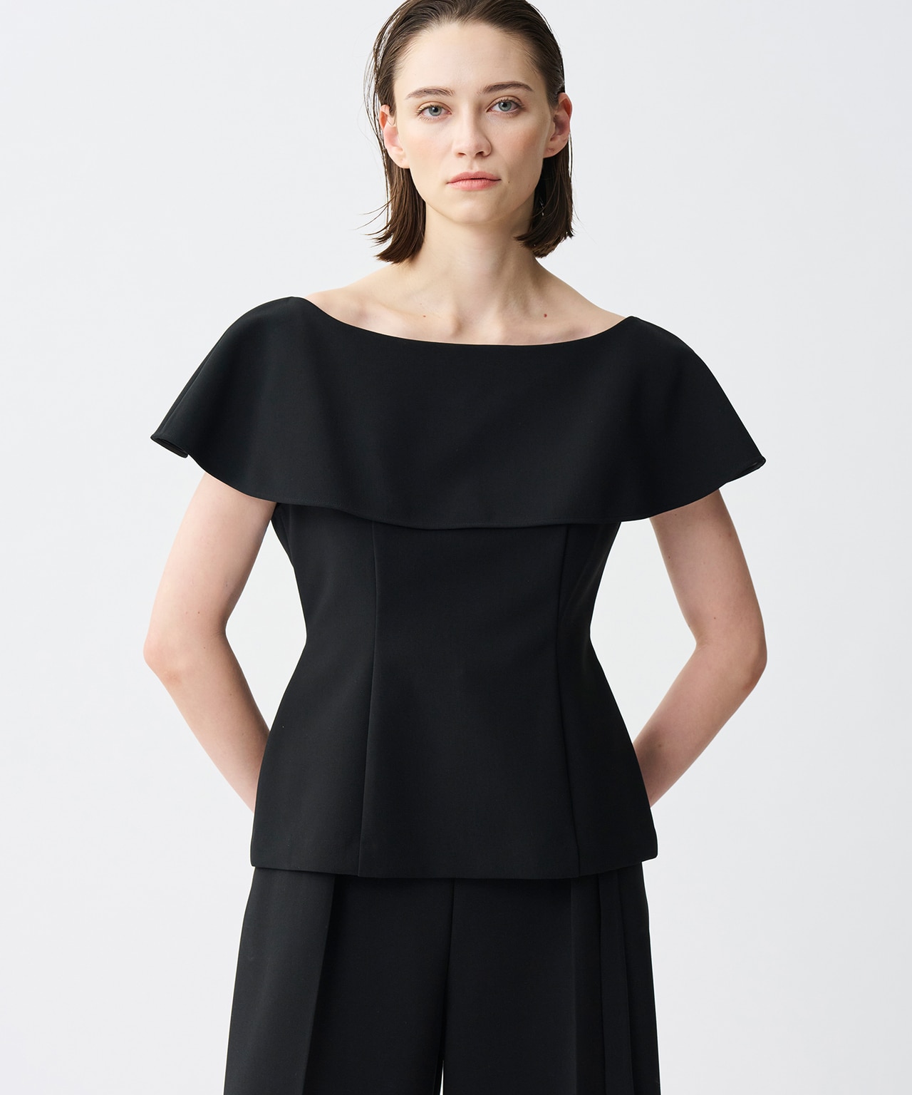 素材のハリ感を活かし、ウエストのカービーラインを美しく表現したジレ。