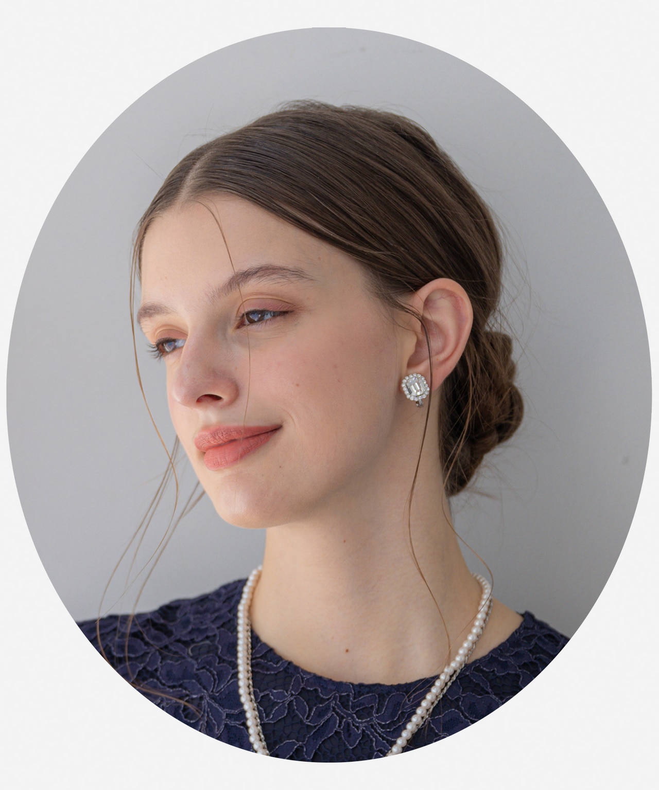 パールと華奢なチェーンをあわせた2連ネックレス。スクエアビジューを使用したイヤリングとあわせるスタイルもおすすめです。華やかなシーンにはもちろん、組み合わせ方次第でデイリーに楽しめます。