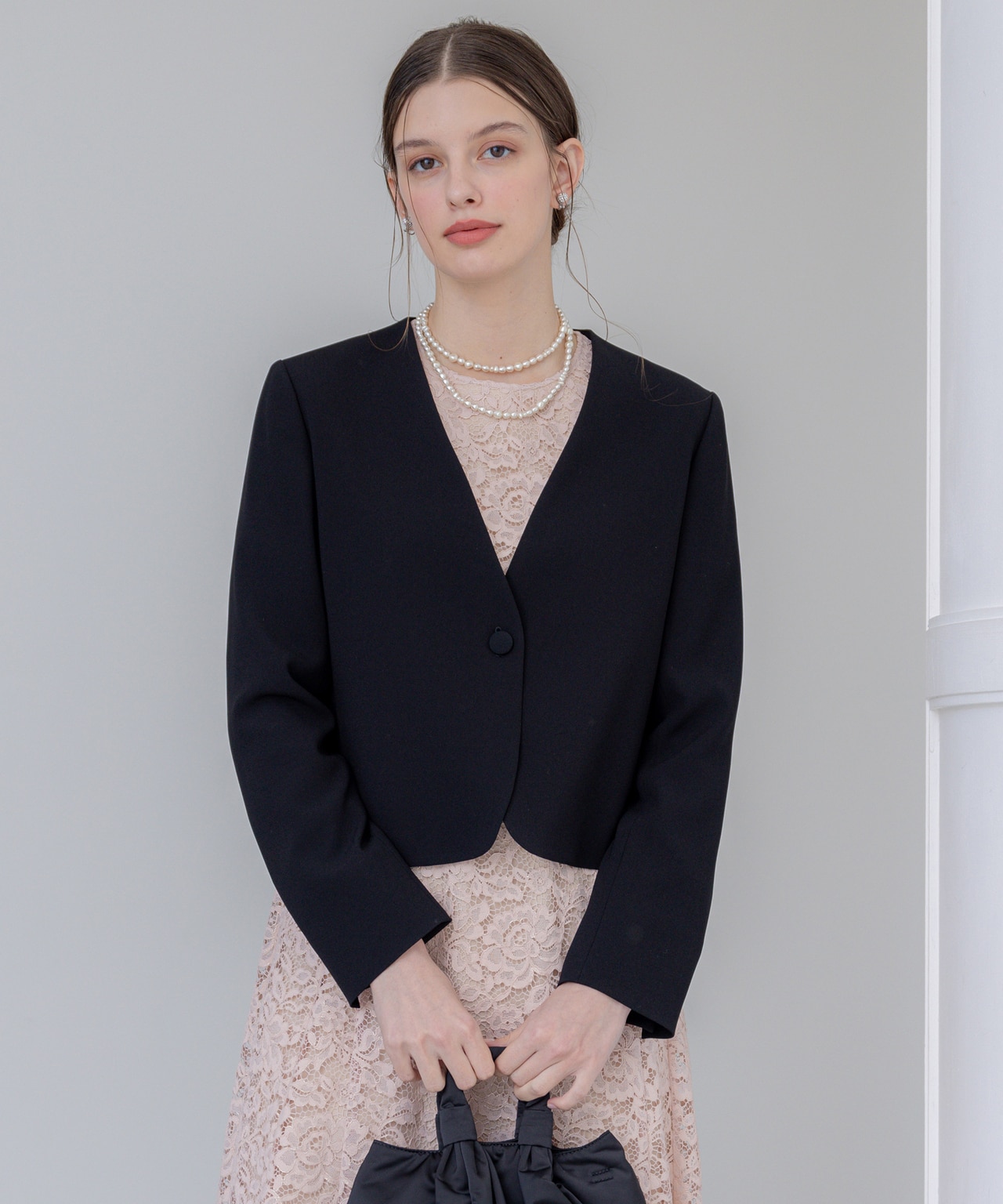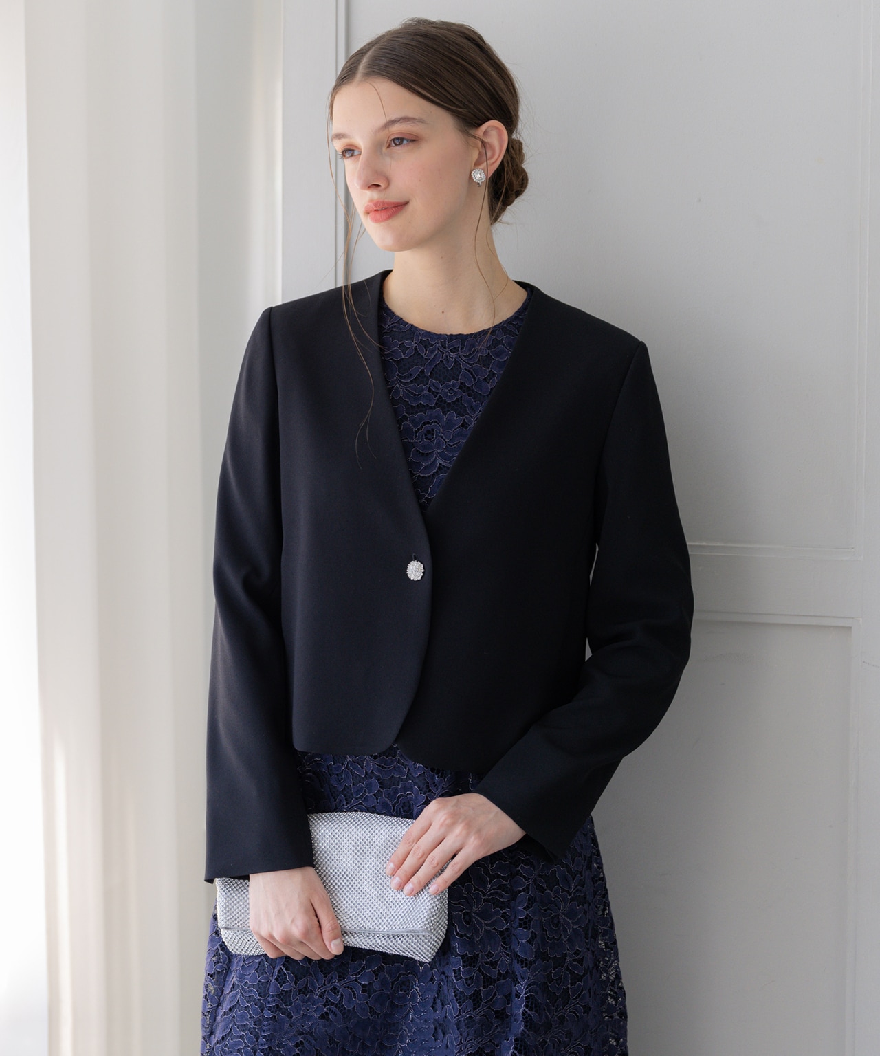 すっきりとした襟元に、ほどよい立体感が優雅で端麗なシルエットを演出します。同素材のワンピースとの組み合わせもおすすめです。