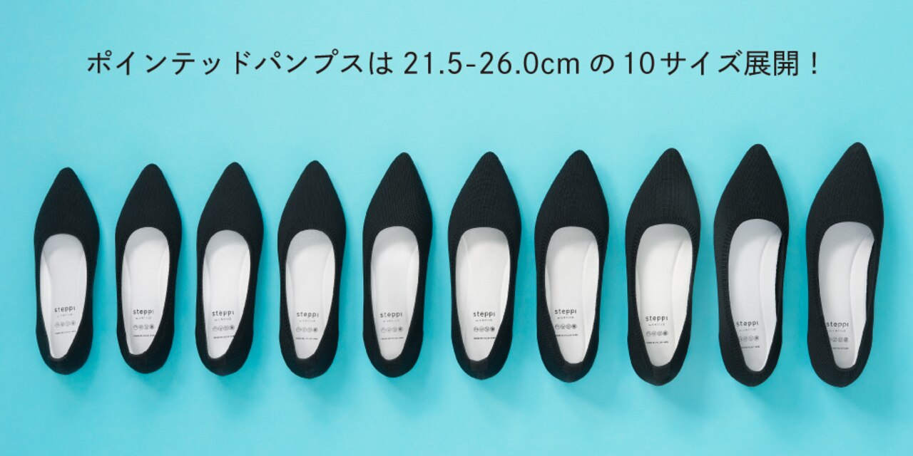 steppiの代表的な「ポインテッド型」は21.5~26㎝までの10サイズを展開。