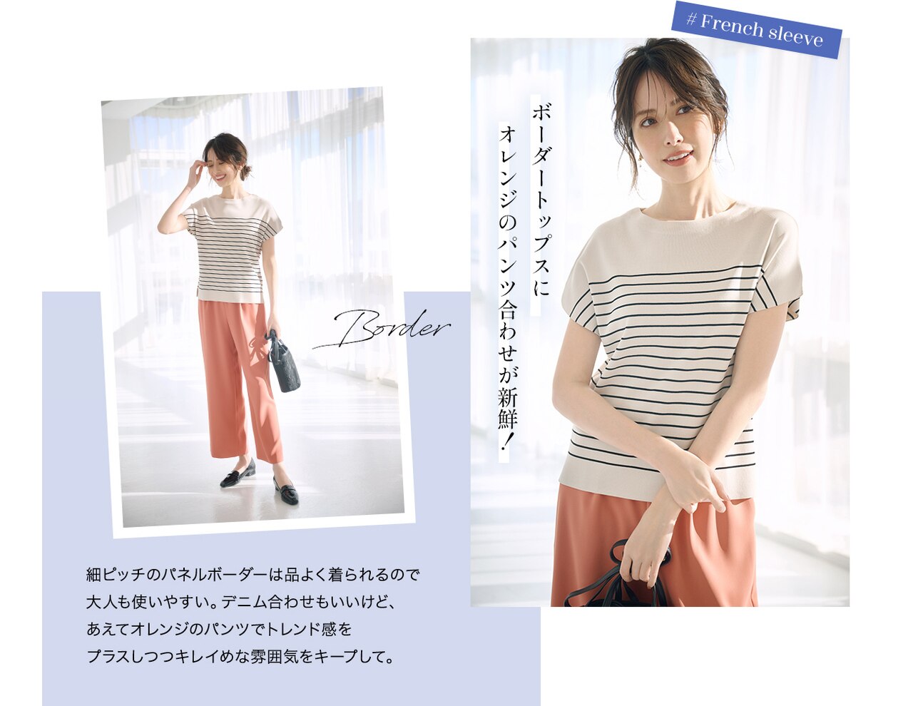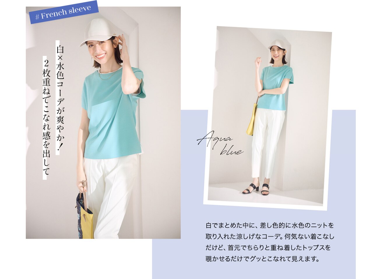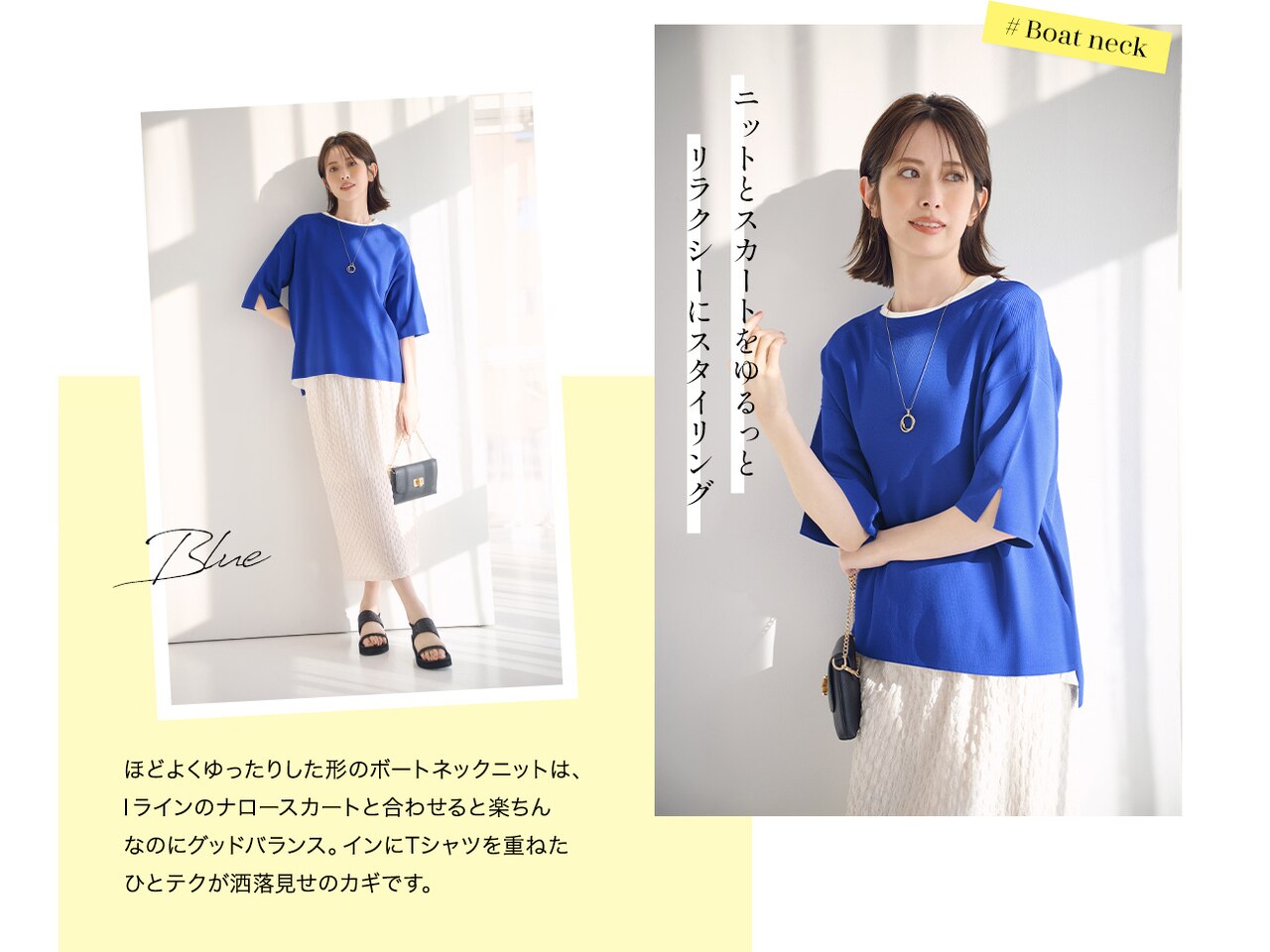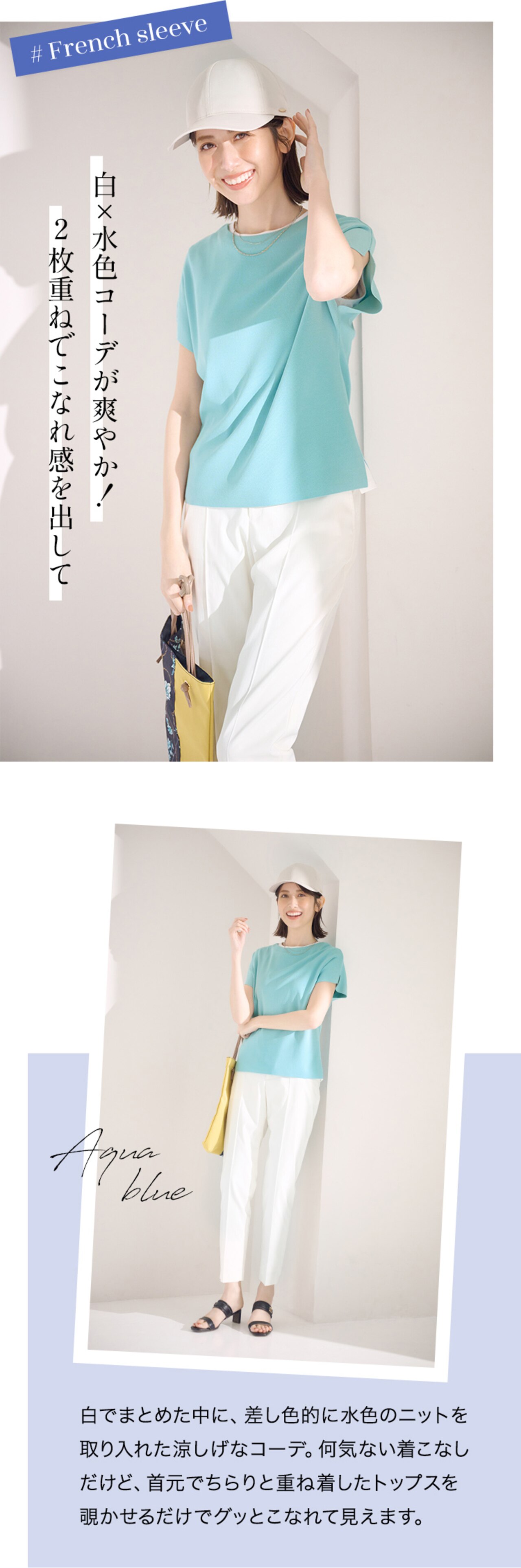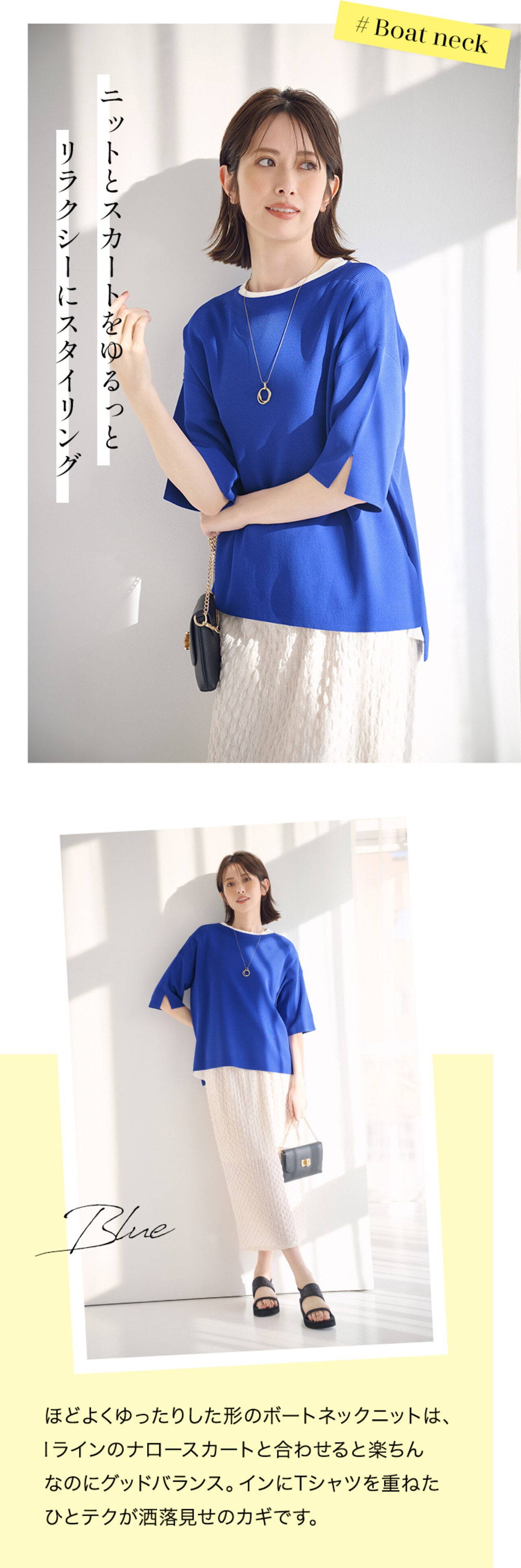 接触冷感素材を使ったサマーニットは、ひんやり気持ちのいい肌触り。