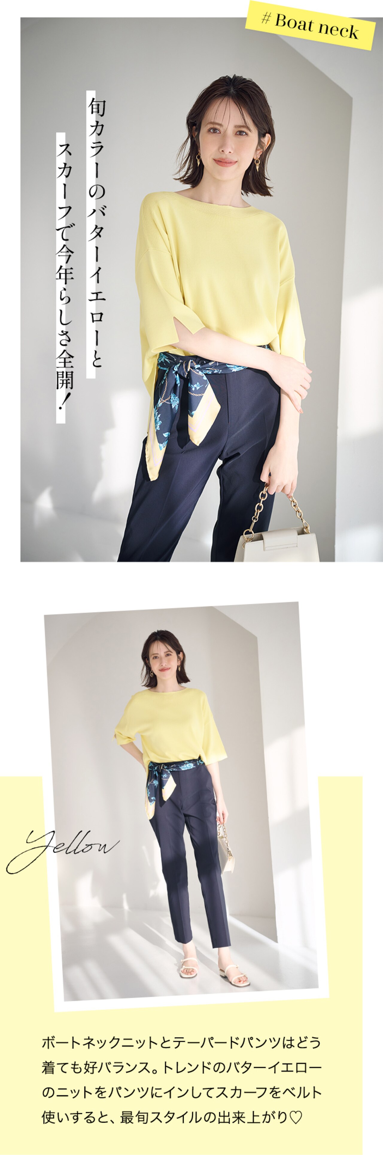 キレイ見えするハイゲージニットなので、オフィススタイルにもマッチ。